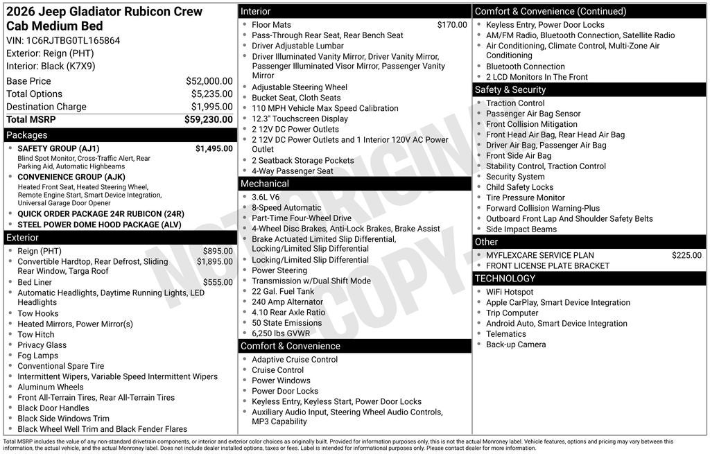 - Manual Convertible Top w/Fixed Roll-Over Protection and Top