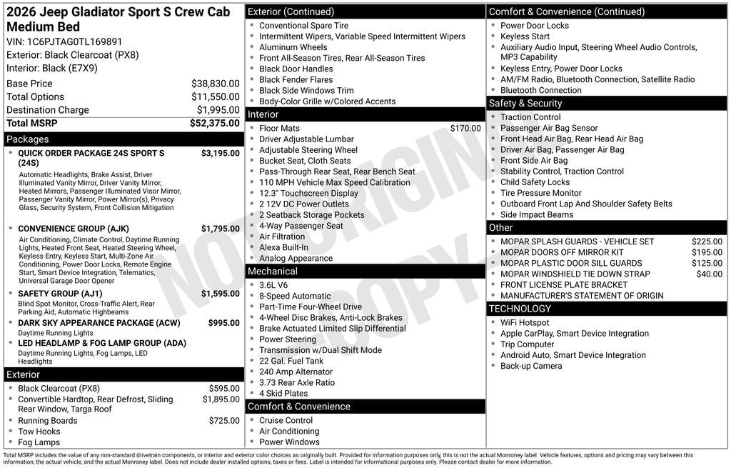 - Tailgate/Rear Door Lock Included w/Power Door Locks