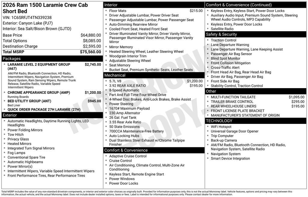 Max payload/towing estimate ratings shown. Additional options, equipment, passengers, and cargo weight may affect payload/towing weights. See dealer for details.