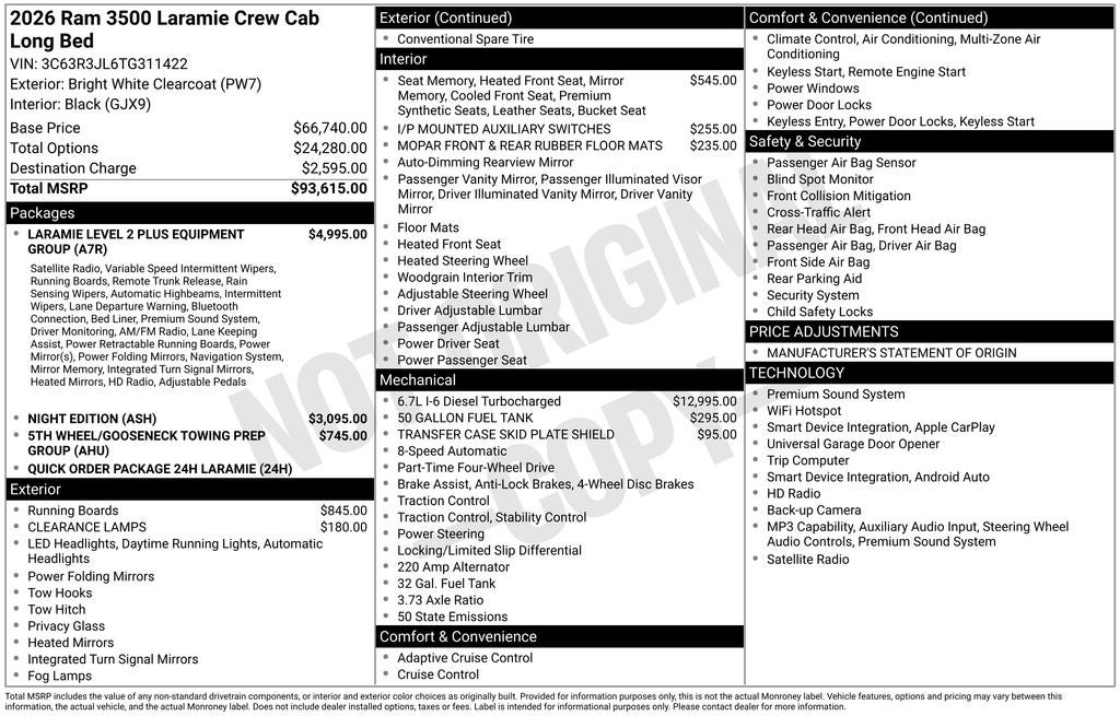 Max payload/towing estimate ratings shown. Additional options, equipment, passengers, and cargo weight may affect payload/towing weights. See dealer for details.