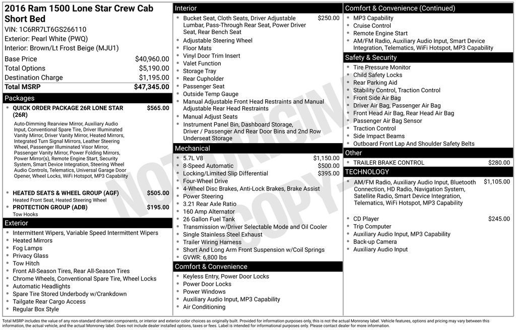 2016 Pearl White Ram 1500 Lone Star 4WD 8-Speed Automatic HEMI 5.7L V8 Multi Displacement VVT