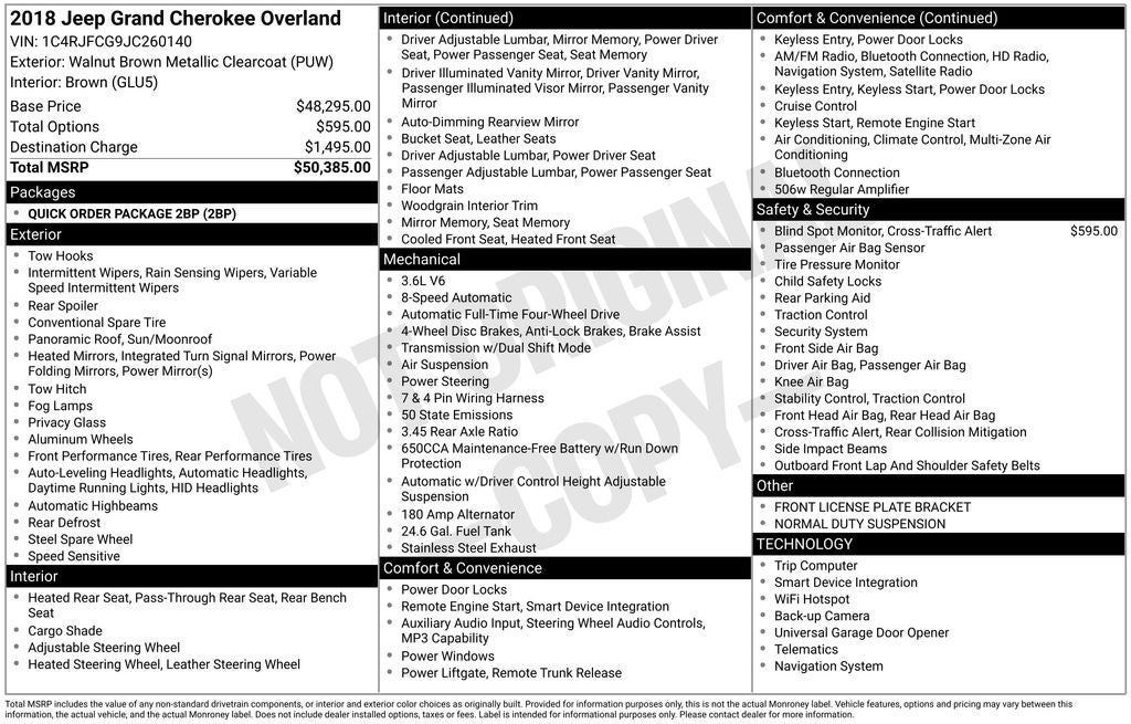 2018 Walnut Brown Metallic Clearcoat Jeep Grand Cherokee Overland 4WD 8-Speed Automatic 3.6L V6 24V VVT