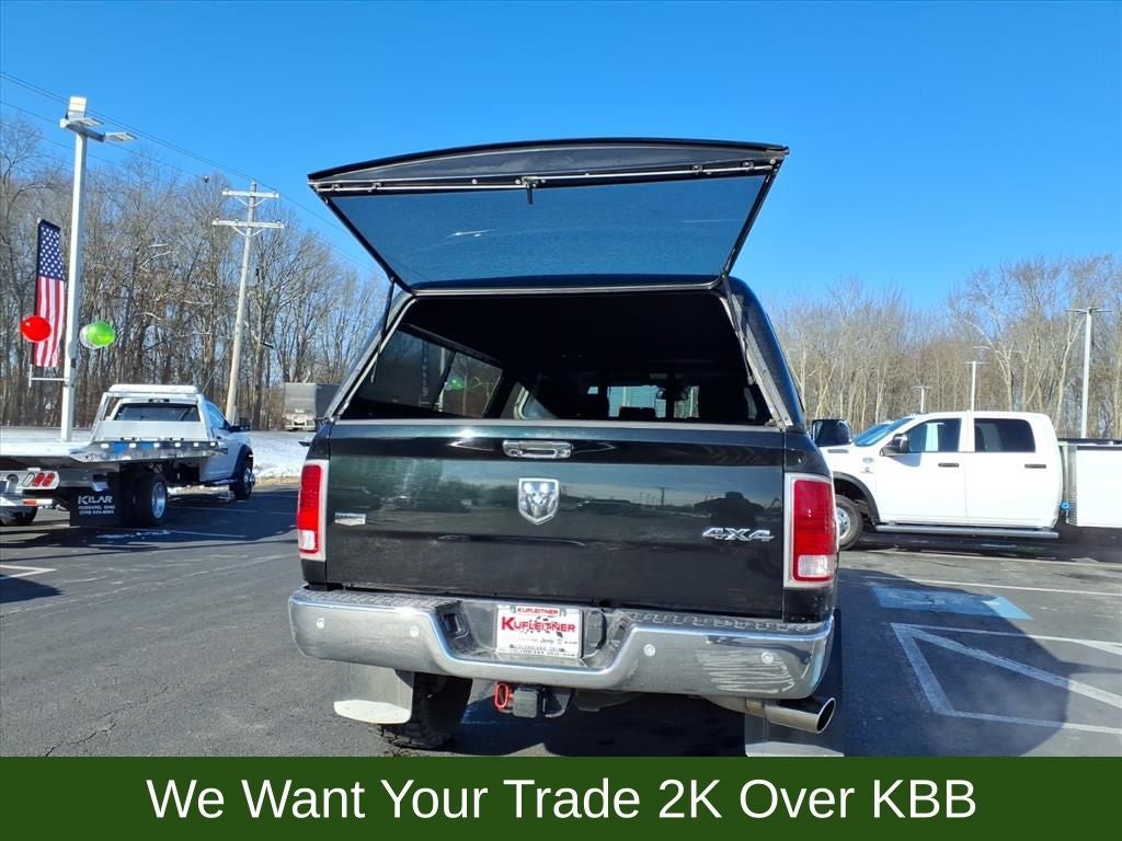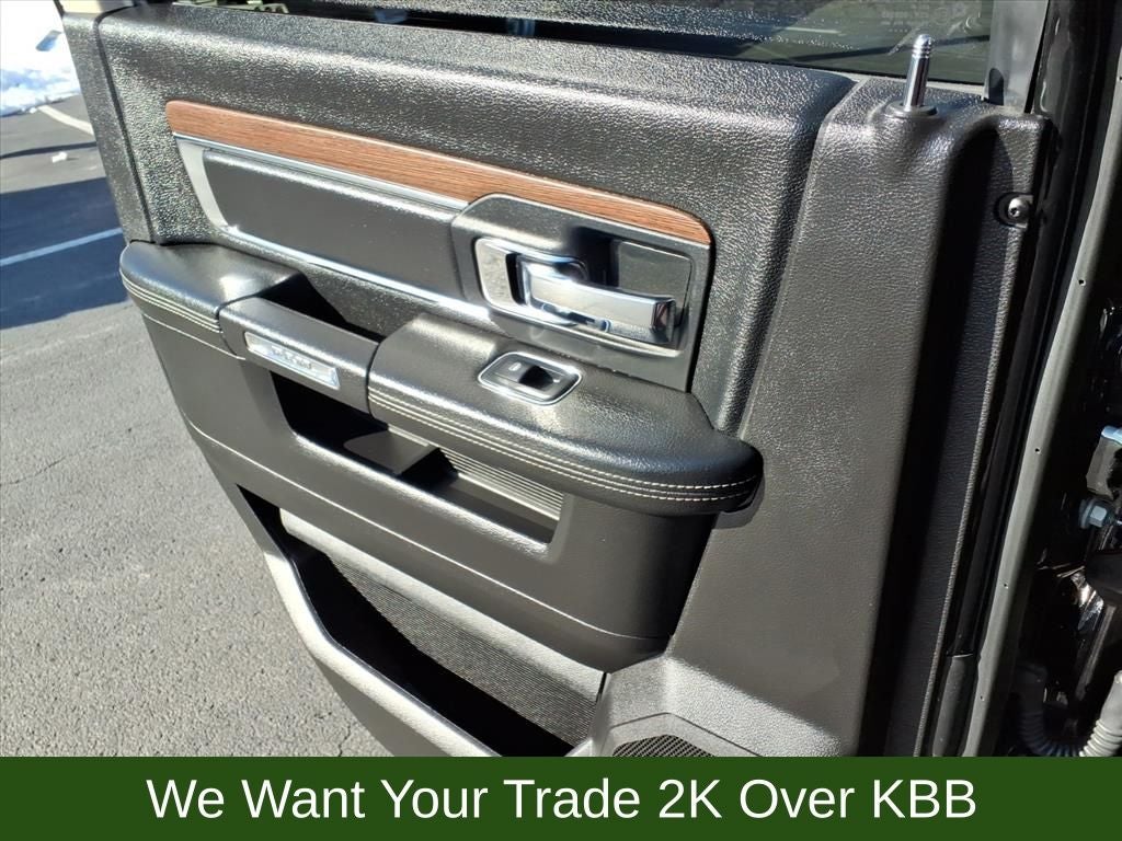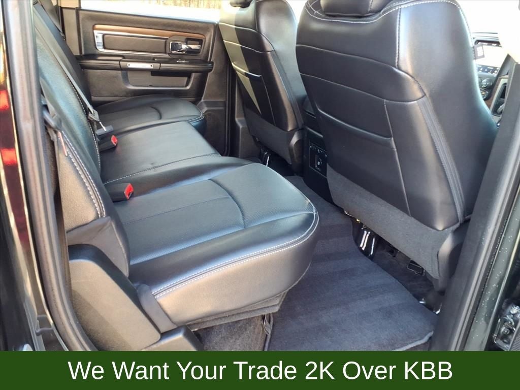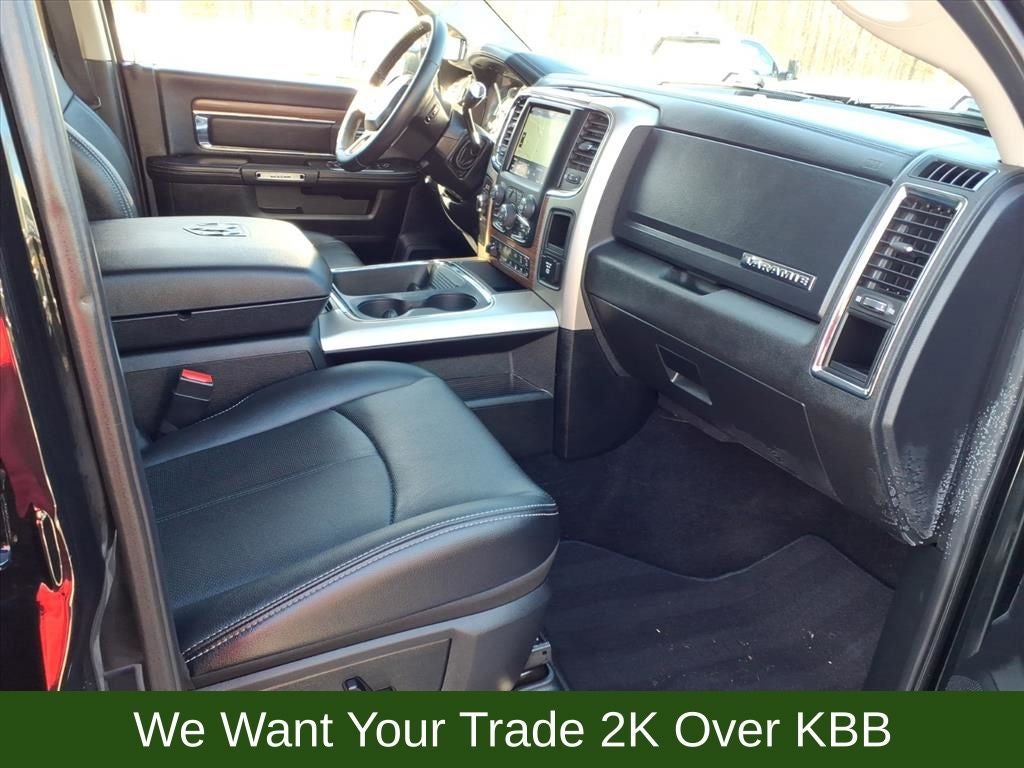 1-Year SiriusXM Guardian Trial, 10 Speakers, 115V Auxiliary Power Outlet, 4-Wheel Disc Brakes, 40/20/40 Split Bench Seat, 5-Year SiriusXM Traffic Service, 5-Year SiriusXM Travel Link Service, 8.4 Touchscreen Display, ABS brakes, Air Conditioning, Alloy wheels, AM/FM radio: SiriusXM, Anti-Spin Differential Rear Axle, Apple CarPlay/Android Auto, Audio memory, Auto High Beam Headlamp Control, Auto-dimming door mirrors, Auto-dimming Rear-View mirror, Automatic temperature control, Black Exterior Mirrors, Brake assist, Bumpers: chrome, Center Hub, Chrome Bodyside Molding, Chrome Exterior Mirrors, Chrome Tubular Side Steps, Clearance Lamps, Compass, Convenience Group, Delay-off headlights, Driver door bin, Driver vanity mirror, Dual front impact airbags, Dual front side impact airbags, Electronic Stability Control, Emergency communication system: SiriusXM Guardian, Exterior Mirrors Courtesy Lamps, Exterior Mirrors w/Heating Element, Exterior Mirrors w/Memory, Exterior Mirrors w/Supplemental Signals, Front anti-roll bar, Front Armrest w/Cupholders, Front Center Armrest w/Storage, Front dual zone A/C, Front fog lights, Front Performance Tuned Shock Absorbers, Front reading lights, Fully automatic headlights, Garage door transmitter, GPS Antenna Input, GPS Navigation, HD Radio, Heated door mirrors, Heated Front Seats, Heated front seats, Heated steering wheel, Illuminated entry, Integrated Center Stack Radio, Integrated Voice Command w/Bluetooth®, Keyless Enter-N-Go, Leather steering wheel, Leather Trim 40/20/40 Bench Seat, LED Bed Lighting, Low tire pressure warning, Media Hub (2 USB, AUX), Memory seat, Occupant sensing airbag, Off Road Package, Offroad Decal, Outside temperature display, Overhead airbag, Overhead console, Panic alarm, ParkView Rear Back-Up Camera, Passenger door bin, Passenger vanity mirror, Power Adjustable Pedals w/Memory, Power door mirrors, Power driver seat, Power Folding Chrome Trailer Tow Mirrors, Power Folding Mirrors, Power passenger seat, Power steering, Power Sunroof, Power windows, Quick Order Package 2FH Laramie, Radio data system, Radio: Uconnect 4C Nav w/8.4 Display, Radio: Uconnect 4C w/8.4 Display, Radio/Driver Seat/Mirrors/Pedals Memory, Rain Sensitive Windshield Wipers, Rear Performance Tuned Shock Absorbers, Rear seat center armrest, Rear step bumper, Rear Window Defroster, Remote keyless entry, Remote Proximity Keyless Entry, Remote Start System, Security system, Single Disc Remote CD Player, SiriusXM Satellite Radio, SiriusXM Traffic Plus, SiriusXM Travel Link, Speed control, Split folding rear seat, Spray In Bedliner, Steering wheel mounted audio controls, Tachometer, Tilt steering wheel, Tow Hooks, Traction control, Trailer Tow Mirrors, Trip computer, Turn signal indicator mirrors, Variably intermittent wipers, Vendor Painted Cargo Box Tracking, Ventilated front seats, Voltmeter, Wheels: 18 x 8.0 Polished Aluminum, Wheels: 20 x 8.0 Painted Aluminum w/Chrome Inserts.