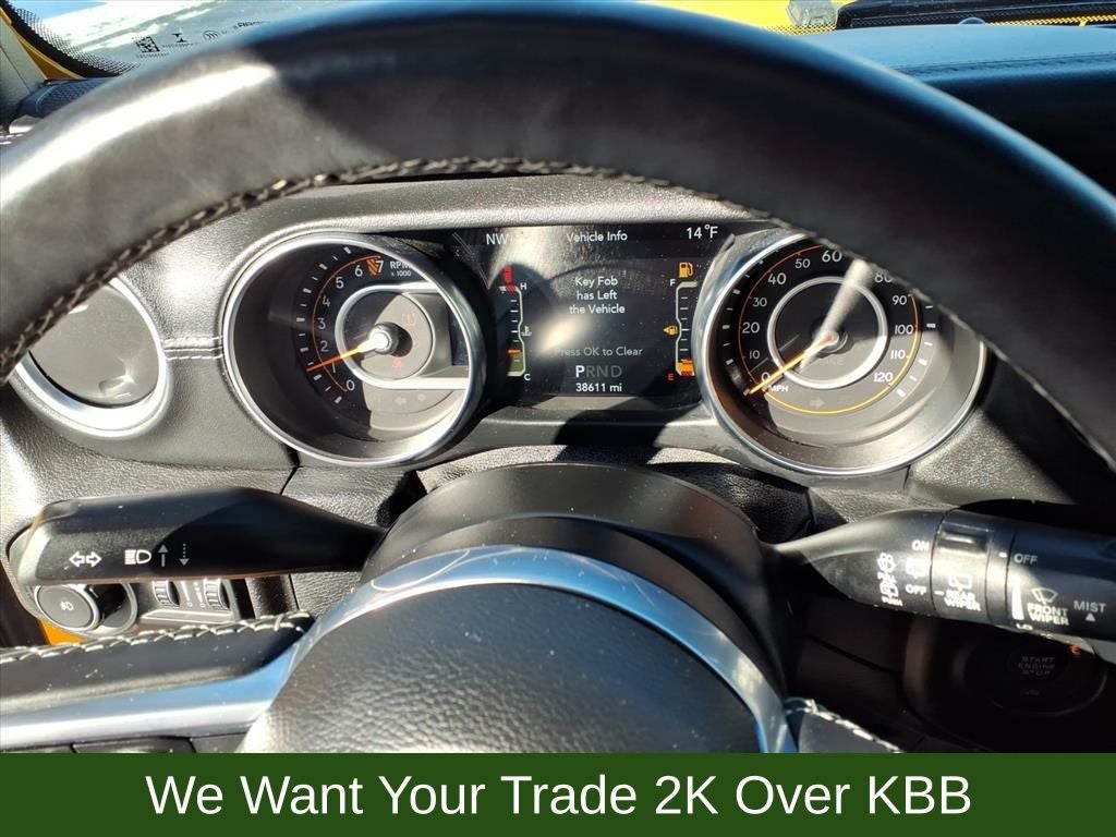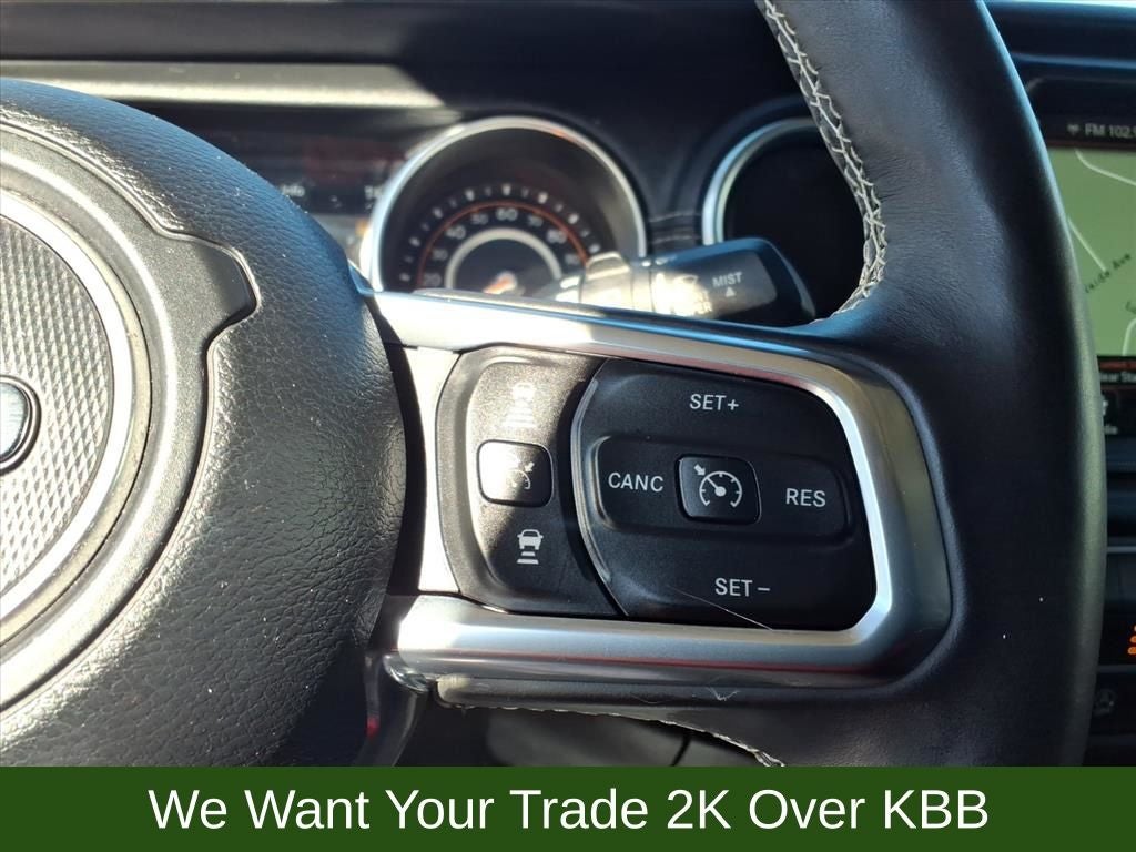 1-Year SiriusXM Guardian Trial, 3.45 Rear Axle Ratio, 4-Wheel Disc Brakes, 4G LTE Wi-Fi Hot Spot, 5-Year SiriusXM Traffic Service, 5-Year SiriusXM Travel Link Service, 8 Speakers, 8.4 Radio & Premium Audio Group, 8.4 Touchscreen Display, ABS brakes, Advanced Brake Assist, Advanced Safety Group, Air Conditioning, Alloy wheels, Alpine Premium Audio System, AM/FM radio: SiriusXM, Apple CarPlay/Android Auto, Auto-Dimming Rear-View Mirror, Automatic temperature control, Black 3-Piece Hard Top, Blind Spot & Cross Path Detection, Brake assist, Cloth Low-Back Bucket Seats, Cold Weather Group, Compass, Daytime Running Lamps LED Accents, Delay-off headlights, Driver door bin, Driver vanity mirror, Dual front impact airbags, Dual front side impact airbags, Electronic Stability Control, Emergency/Assistance Call, For Details, Visit DriveUconnect.ca, Freedom Panel Storage Bag, Front anti-roll bar, Front Bucket Seats, Front Center Armrest w/Storage, Front dual zone A/C, Front fog lights, Front LED Fog Lamps, Front reading lights, Full Speed Forward Collision Warning Plus, Fully automatic headlights, Garage door transmitter, GPS Navigation, HD Radio, Heated door mirrors, Heated Front Seats, Heated Steering Wheel, Heavy Duty Suspension w/Gas Shocks, Illuminated entry, Integrated roll-over protection, Leather steering wheel, LED Lighting Group, LED Reflector Headlamps, LED Taillamps, Low tire pressure warning, MOPAR All-Weather Floor Mats, No Soft Top, Non-Lock Fuel Cap w/o Discriminator, Occupant sensing airbag, Outside temperature display, Panic alarm, ParkSense Rear Park Assist System, ParkView Rear Back-Up Camera, Passenger door bin, Passenger vanity mirror, Power door mirrors, Power steering, Power windows, Quick Order Package 24G, Radio data system, Radio: Uconnect 4 w/7 Display, Radio: Uconnect 4C Nav w/8.4 Display, Rear anti-roll bar, Rear reading lights, Rear Window Defroster, Rear Window Wiper/Washer, Remote keyless entry, Remote Start System, Safety Group, Security system, SiriusXM Traffic Plus, SiriusXM Travel Link, Speed control, Split folding rear seat, Steering wheel mounted audio controls, Tachometer, Telescoping steering wheel, Tilt steering wheel, Traction control, Trip computer, Variably intermittent wipers, Voltmeter, Wheels: 18 x 7.5 Polished w/Gray Spokes.