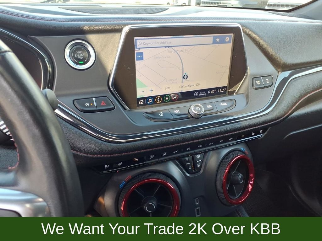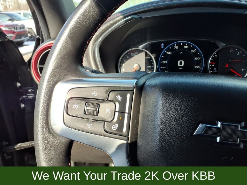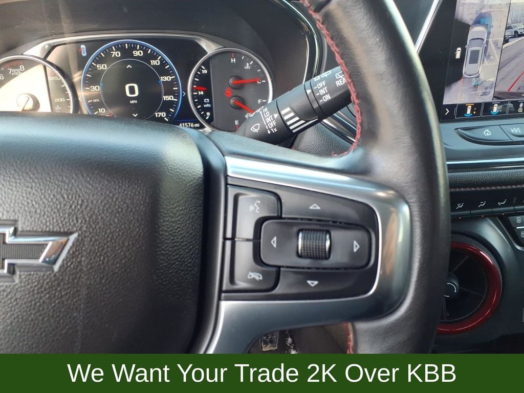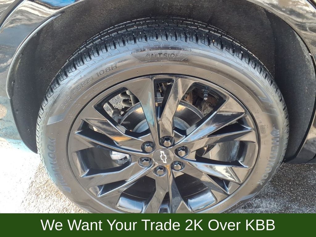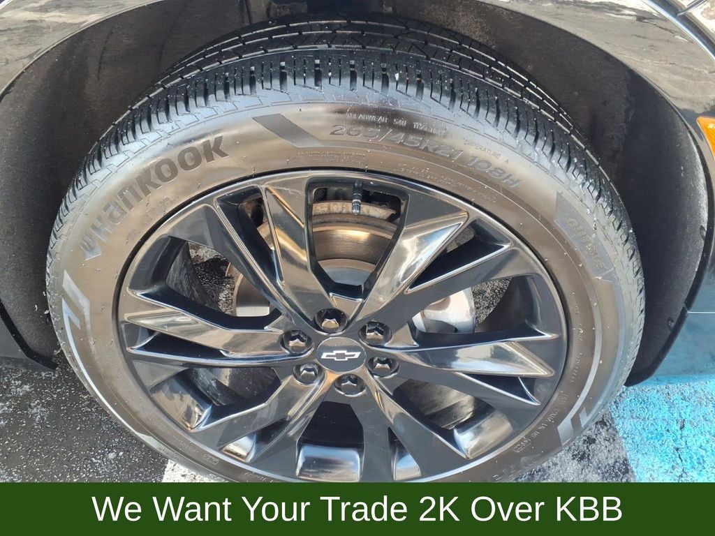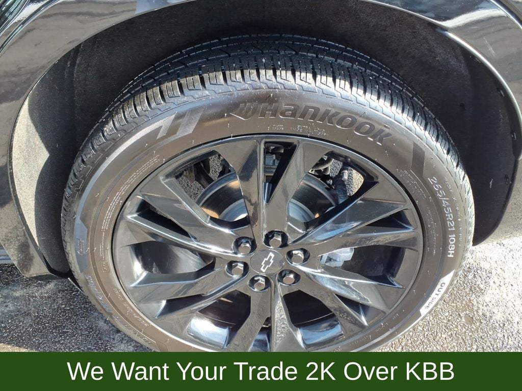 170 Amp Alternator, 1st & 2nd Row All-Weather Floor Liners (LPO), 3.49 Final Drive Axle Ratio, 4-Wheel Disc Brakes, 6 Speakers, 6-Speaker Audio System Feature, 6-Way Power Front Passenger Seat Adjuster, ABS brakes, Advanced Adaptive Cruise Control, Air Conditioning, Alloy wheels, AM/FM radio: SiriusXM, Apple CarPlay/Android Auto, Auto-dimming door mirrors, Auto-dimming Rear-View mirror, Automatic temperature control, Brake assist, Bumpers: body-color, Cargo Package (LPO), Child-Seat-Sensing Airbag, Compass, Delay-off headlights, Driver door bin, Driver vanity mirror, Dual front impact airbags, Dual front side impact airbags, Electronic Stability Control, Emergency communication system: OnStar and Chevrolet connected services capable, Enhanced Automatic Emergency Braking, Enhanced Convenience & Driver Confidence II Pkg, Exterior Parking Camera Rear, Floor Liner Package (LPO), Following Distance Indicator, Forward Collision Alert, Four wheel independent suspension, Front anti-roll bar, Front Bucket Seats, Front Center Armrest, Front dual zone A/C, Front Pedestrian Braking, Front reading lights, Fully automatic headlights, Garage door transmitter, HD Surround Vision, Heated door mirrors, Heated Driver & Front Passenger Seats, Heated front seats, Heated Rear Outboard Seating Positions, Heated steering wheel, Heavy-Duty Cooling System, High-Intensity Discharge Headlights, Hitch Guidance, Hitch Guidance w/Hitch View, Illuminated entry, Integrated Cargo Liner (LPO), IntelliBeam Headlamps, Knee airbag, Lane Keep Assist w/Lane Departure Warning, Leather Shift Knob, Low tire pressure warning, Memory Settings For Driver Seat & Exterior Mirrors, Navigation System, Occupant sensing airbag, Outside temperature display, Overhead airbag, Overhead console, Panic alarm, Passenger door bin, Passenger vanity mirror, Perforated Leather-Appointed Seat Trim, Power door mirrors, Power driver seat, Power Liftgate, Power Panoramic Tilt-Sliding Sunroof, Power passenger seat, Power steering, Power Tilt & Telescoping Steering Column, Power windows, Preferred Equipment Group 1RS, Radio data system, Radio: Chevrolet Infotainment 3 Plus System, Radio: Chevrolet Infotainment 3 Premium System, Rear anti-roll bar, Rear Camera Mirror, Rear reading lights, Rear seat center armrest, Rear window defroster, Rear window wiper, Remote keyless entry, Retractable Cargo Shade, Ride & Handling Suspension, Safety Alert Seat, Security system, SiriusXM w/360L, Speed control, Speed-sensing steering, Split folding rear seat, Spoiler, Steering wheel mounted audio controls, Tachometer, Telescoping steering wheel, Tilt steering wheel, Traction control, Trailering Equipment, Trip computer, Turn signal indicator mirrors, Variably intermittent wipers, Ventilated Driver & Front Passenger Seats, Vertical Cargo Net (LPO), Voltmeter, Wheels: 20 Dark Android Machined-Face Aluminum, Wheels: 21 Gloss Black Aluminum, Wireless Charging.