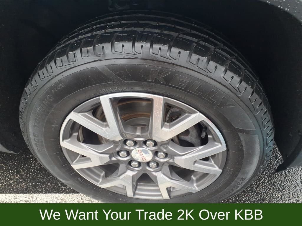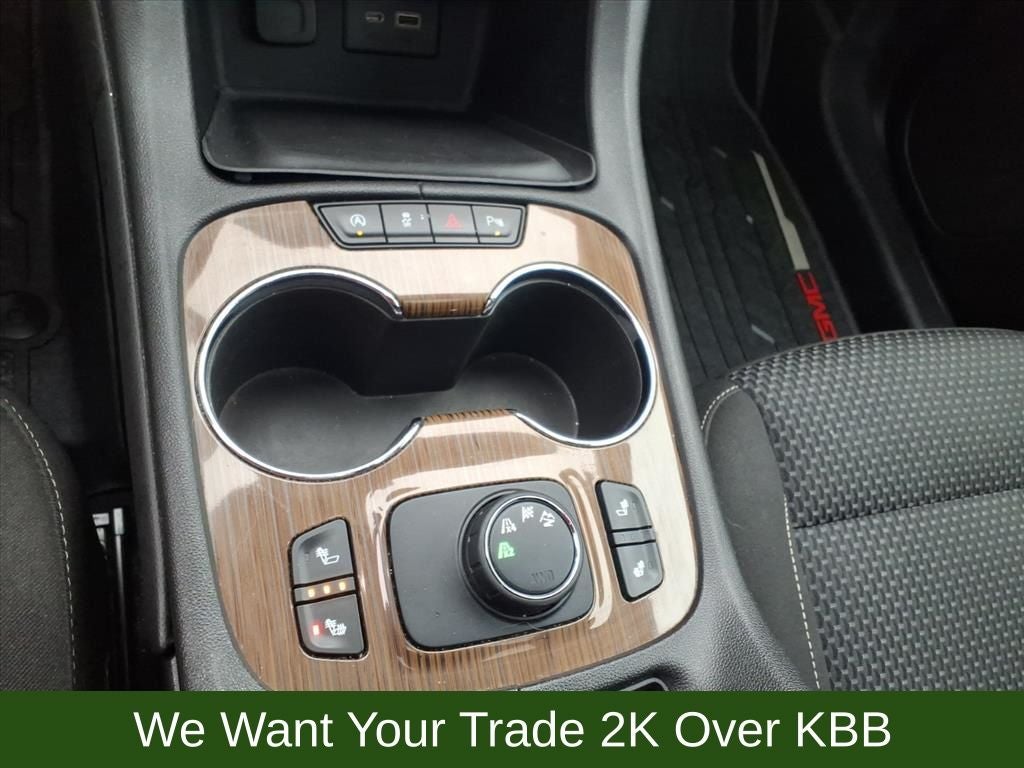 120-Volt Power Outlet, 155 Amp Alternator, 1st & 2nd Row All-Weather Floor Liner (LPO), 3rd Row All-Weather Floor Liner (LPO), 3rd row seats: split-bench, 4-Way Manual Driver Seat Adjuster, 4-Way Manual Passenger Seat Adjuster, 4-Wheel Disc Brakes, 6 Speakers, 6-Passenger (2-2-2 Seating Configuration), 6-Speaker Audio System Feature, 7-Passenger (2-3-2 Seating Configuration), 8-Way Power Driver Seat Adjuster, ABS brakes, Air Conditioning, Alloy wheels, AM/FM radio: SiriusXM, Apple CarPlay/Android Auto, Auto High-beam Headlights, Automatic temperature control, Brake assist, Brushed Aluminum Roof Rails, Bumpers: body-color, Compass, Delay-off headlights, Driver Convenience Package, Driver door bin, Driver vanity mirror, Dual front impact airbags, Dual front side impact airbags, Dual SkyScape 2-Panel Power Sunroof, Electronic Stability Control, Emergency communication system: OnStar and GMC connected services capable, Floor Liner Package (LPO), Four wheel independent suspension, Front anti-roll bar, Front Bucket Seats, Front Center Armrest, Front dual zone A/C, Front License Plate Bracket, Front reading lights, Fully automatic headlights, Hands Free Power Programmable Liftgate, Heated door mirrors, Heated Driver & Front Passenger Seats, Illuminated entry, Integrated Cargo Liner (LPO), Knee airbag, Low tire pressure warning, Occupant sensing airbag, Outside temperature display, Overhead airbag, Overhead console, Panic alarm, Passenger door bin, Passenger vanity mirror, Power door mirrors, Power Driver Lumbar Control Seat Adjuster, Power steering, Power windows, Preferred Equipment Group 3SA, Premium audio system: GMC Infotainment System, Premium Cloth Seat Trim, Radio data system, Radio: AM/FM w/8 Diagonal Multi-Touch Display, Rear air conditioning, Rear anti-roll bar, Rear reading lights, Rear seat center armrest, Rear window defroster, Rear window wiper, Remote keyless entry, Remote Start, Security system, SiriusXM Radio, Speed control, Speed-sensing steering, Split folding rear seat, Spoiler, Steering wheel mounted audio controls, Tachometer, Telescoping steering wheel, Tilt steering wheel, Traction control, Trip computer, Turn signal indicator mirrors, Universal Home Remote, Variably intermittent wipers, Voltmeter, Wheels: 18 Machined Aluminum w/Dark Accents.