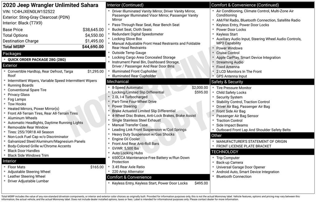 2020 Sting-Gray Clearcoat Jeep Wrangler Unlimited Sahara 4WD 8-Speed Automatic 2.0L I4 DOHC