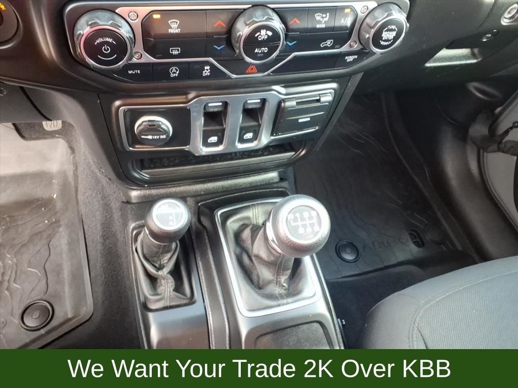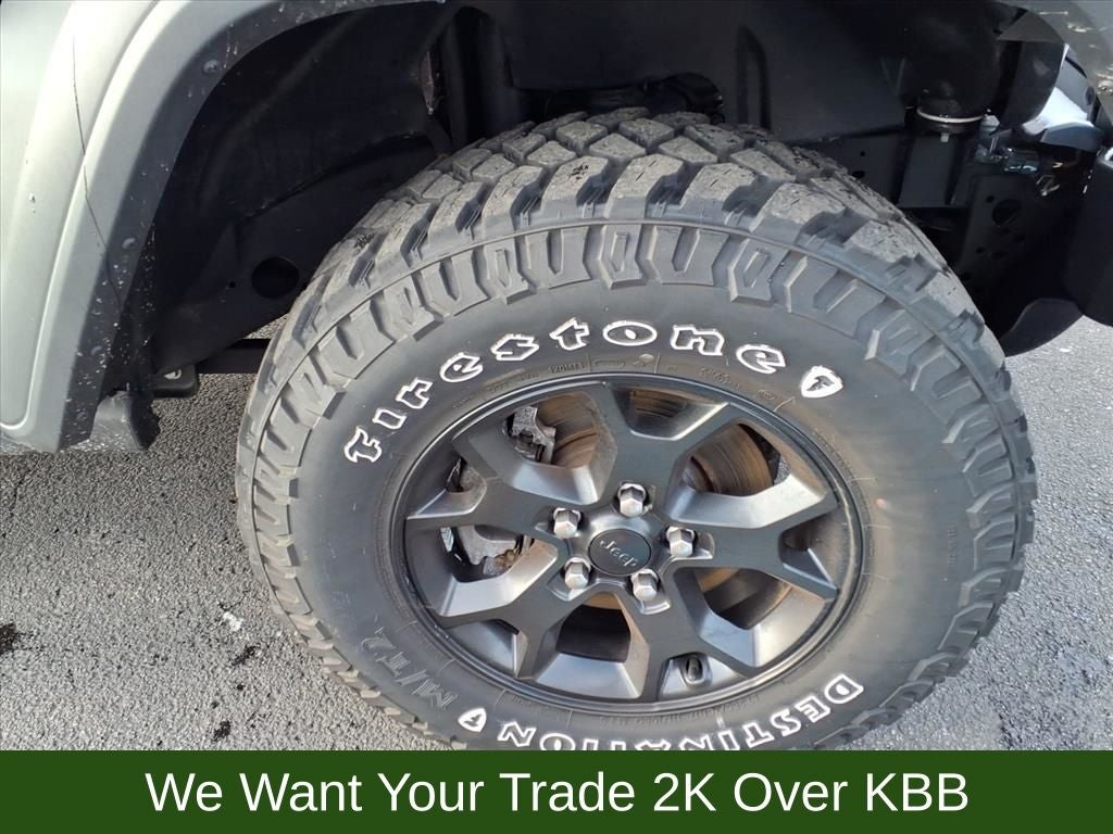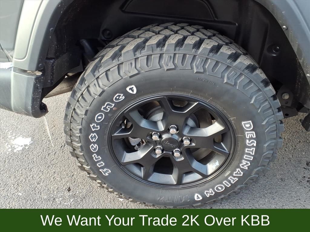 1-Year SiriusXM Radio Service, 110 mph Vehicle Max Speed Calibration, 3.45 Rear Axle Ratio, 4-Wheel Disc Brakes, 4-Wheel Drive Swing Gate Decal, 7.0 Touchscreen Display, 8 Speakers, 97 MPH Vehicle Max Speed Calibration, ABS brakes, Air Conditioning, Air Conditioning w/Auto Temperature Control, Air Filtering, AM/FM radio, Anti-Lock 4-Wheel Disc HD Brakes, Anti-Spin Differential Rear Axle, Apple CarPlay (DISC), Automatic Headlamps, Aux Battery, Black Grille, Black Trail Rated Badge, Brake assist, Cloth Low-Back Bucket Seats, Cluster 7.0 TFT Color Display, Compass, Deep Tint Sunscreen Windows, Delay-off headlights, Driver door bin, Driver vanity mirror, Dual front impact airbags, Dual front side impact airbags, Electronic Stability Control, Front 1-Touch Down Power Windows, Front anti-roll bar, Front Bucket Seats, Front Center Armrest w/Storage, Front fog lights, Front LED Fog Lamps, Front reading lights, Google Android Auto (DISC), GPS Antenna Input, Integrated Center Stack Radio, Integrated roll-over protection, Jeep Trail Rated Kit, Leather Wrapped Steering Wheel, LED Headlamp & Fog Lamp Group, LED Reflector Headlamps, Low tire pressure warning, Matte Black Jeep Badge, MOPAR All-Weather Floor Mats (DISC), Non-Lock Fuel Cap w/o Discriminator, Normal Duty Suspension, Occupant sensing airbag, Outside temperature display, ParkView Rear Back-Up Camera, Passenger door bin, Passenger vanity mirror, Power Heated Mirrors, Power steering, Premium Black Sunrider Soft Top, Quick Order Package 23W Willys, Radio data system, Radio: Uconnect 3 w/5 Display, Radio: Uconnect 4 w/7 Display, Rear anti-roll bar, Rear reading lights, Remote Keyless Entry, Security Alarm, SiriusXM Satellite Radio, Speed control, Speed Sensitive Power Locks, Steering wheel mounted audio controls, Stop-Start Dual Battery System, Sun Visors w/Illuminated Vanity Mirrors, Tachometer, Technology Group, Telescoping steering wheel, Tilt steering wheel, Traction control, Trip computer, USB Host Flip, Variably intermittent wipers, Wheels: 17 x 7.5 Black Steel Styled, Wheels: 17 x 7.5 Moab Black Aluminum, Willys, Willys Hood Decal, Wrangler Decal.