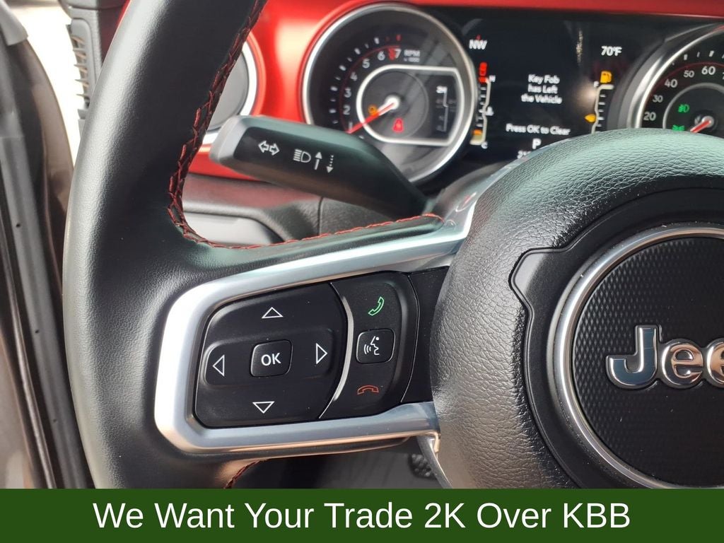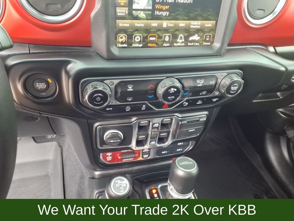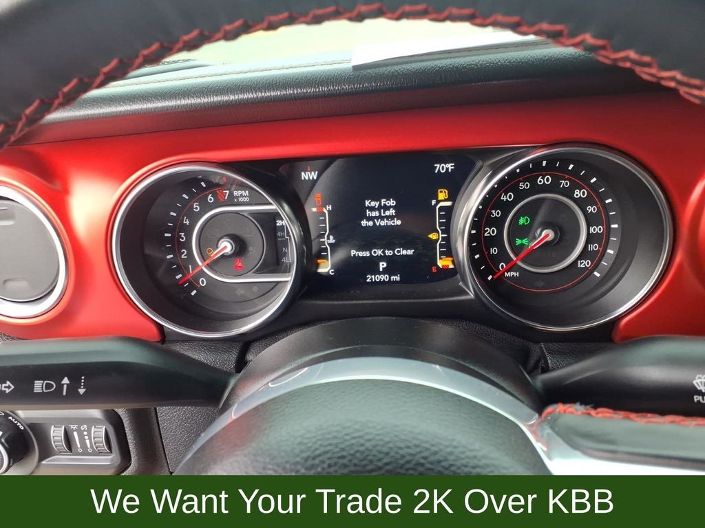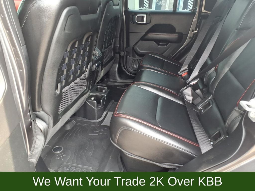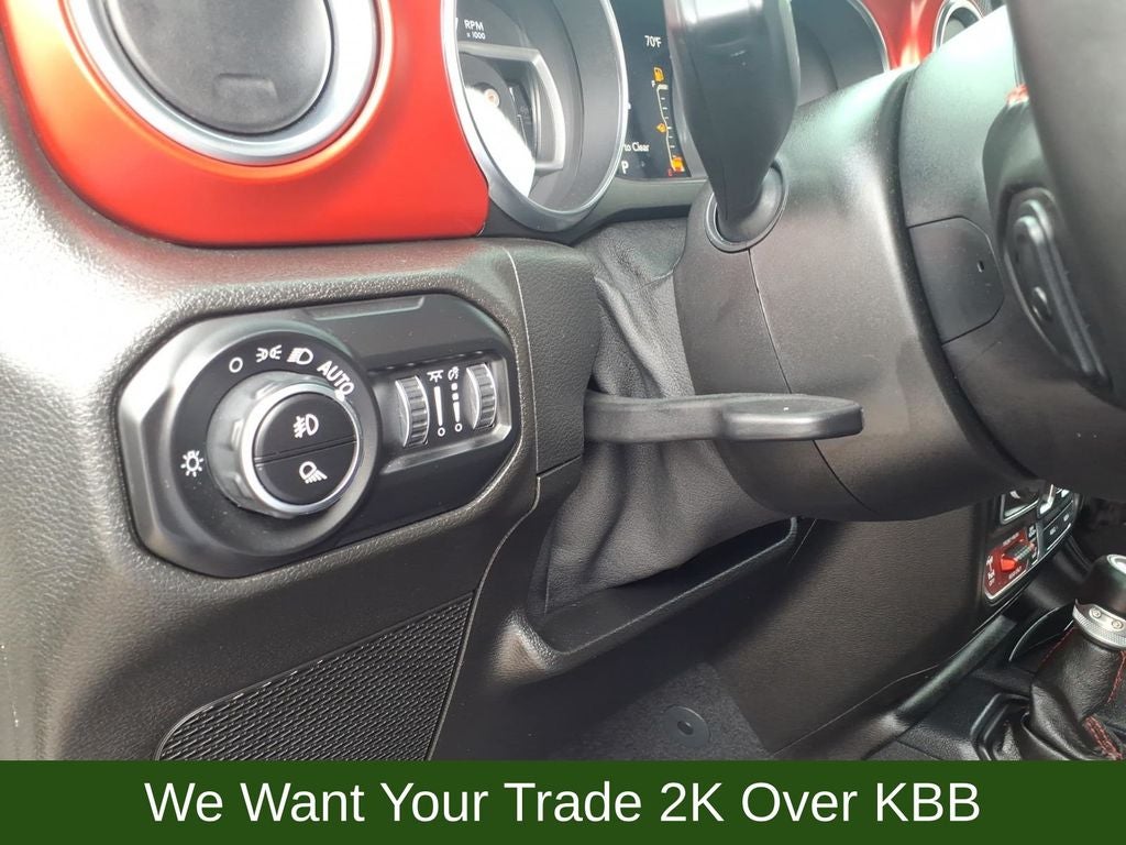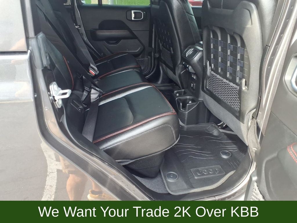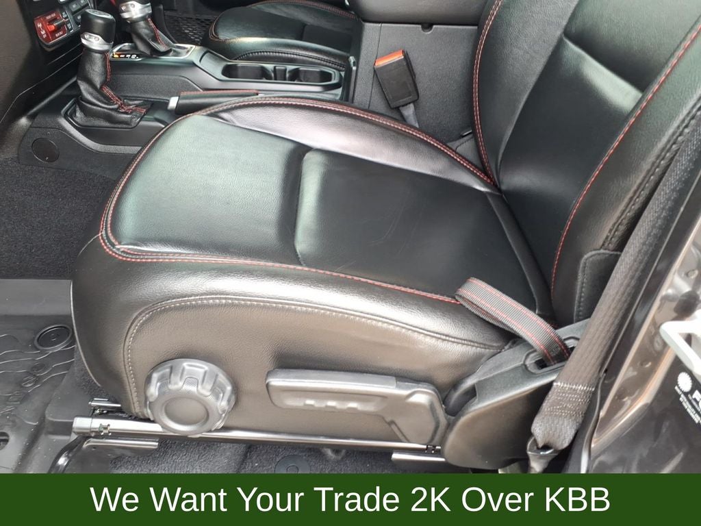 1-Year SiriusXM Guardian Trial, 240 Amp Alternator, 4-Wheel Disc Brakes, 4:1 Rock-Trac HD Full Time 4WD System, 4.10 Rear Axle Ratio, 5-Year SiriusXM Traffic Service, 5-Year SiriusXM Travel Link Service, 700 Amp Maintenance Free Battery, 8 Speakers, 8.4 Radio & Premium Audio Group, 8.4 Touchscreen Display, 97 mph Maximum Speed Calibration, ABS brakes, Advanced Brake Assist, Advanced Safety Group, Air Conditioning, Alloy wheels, Alpine Premium Audio System, AM/FM radio: SiriusXM, Apple CarPlay/Android Auto, Auto High Beam Headlamp Control, Auto-Dimming Rear-View Mirror, Automatic temperature control, Auxiliary Switch Group, Auxiliary Switches, Blind Spot & Cross Path Detection, Bluetooth® Wireless Speaker, Body Color 3-Piece Hard Top, Body Color Fender Flares (2-Piece), Brake assist, Class IV Hitch Receiver, Compass, Corning Gorilla Glass, Daytime Running Lamps LED Accents, Delay-off headlights, Driver door bin, Driver vanity mirror, Dual front impact airbags, Dual front side impact airbags, Electronic Stability Control, Emergency/Assistance Call, For Details, Visit DriveUconnect.com, Freedom Panel Storage Bag, Front anti-roll bar, Front Bucket Seats, Front Center Armrest w/Storage, Front dual zone A/C, Front fog lights, Front LED Fog Lamps, Front License Plate Bracket, Front reading lights, Full Speed Forward Collision Warning Plus, Fully automatic headlights, Garage door transmitter, GPS Navigation, GVWR: 6,250 lbs w/Max Tow Package, HD Radio, Heated door mirrors, Heavy-Duty Engine Cooling, Illuminated entry, Integrated Off-Road Camera, Integrated roll-over protection, Leather steering wheel, LED Lighting Group, LED Park Turn Lamps, LED Premium Reflector Headlamps, LED Taillamps, Low tire pressure warning, MOPAR All-Weather Floor Mats (DISC), MOPAR Cold Air Intake System, MOPAR Grab Handle Kit, MOPAR Hardtop Headliner, MOPAR Soft Tri-Fold Tonneau Cover (DISC), MOPAR Spray In Bedliner, MOPAR Sunrider Fliptop For Hardtop, MOPAR Windshield Tie Down Strap, No Soft Top, Occupant sensing airbag, Outside temperature display, Panic alarm, ParkSense Rear Park Assist System, ParkView Rear Back-Up Camera, Passenger door bin, Passenger vanity mirror, Performance Suspension, Power door mirrors, Power steering, Power windows, Premium Cloth Low-Back Bucket Seats, Quick Order Package 24R, Radio data system, Radio: Uconnect 4 w/7 Display, Radio: Uconnect 4C Nav w/8.4 Display, Rear anti-roll bar, Rear reading lights, Rear Sliding Window, Rear Window Defroster, Redical Instrument Panel Bezels, Remote keyless entry, Remote Proximity Keyless Entry, Remote Start System, Safety Group, Security system, SiriusXM Traffic Plus, SiriusXM Travel Link, Speed control, Split folding rear seat, Steel Front Bumper, Steering wheel mounted audio controls, Tachometer, Telescoping steering wheel, Tilt steering wheel, Traction control, Trailer Hitch Zoom, Trailer Tow Package, Trip computer, Variably intermittent wipers, Voltmeter, Wheels: 17 x 7.5 Granite Crystal Aluminum.