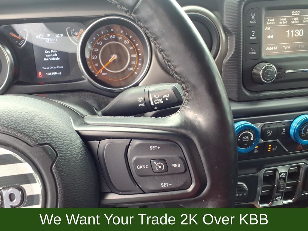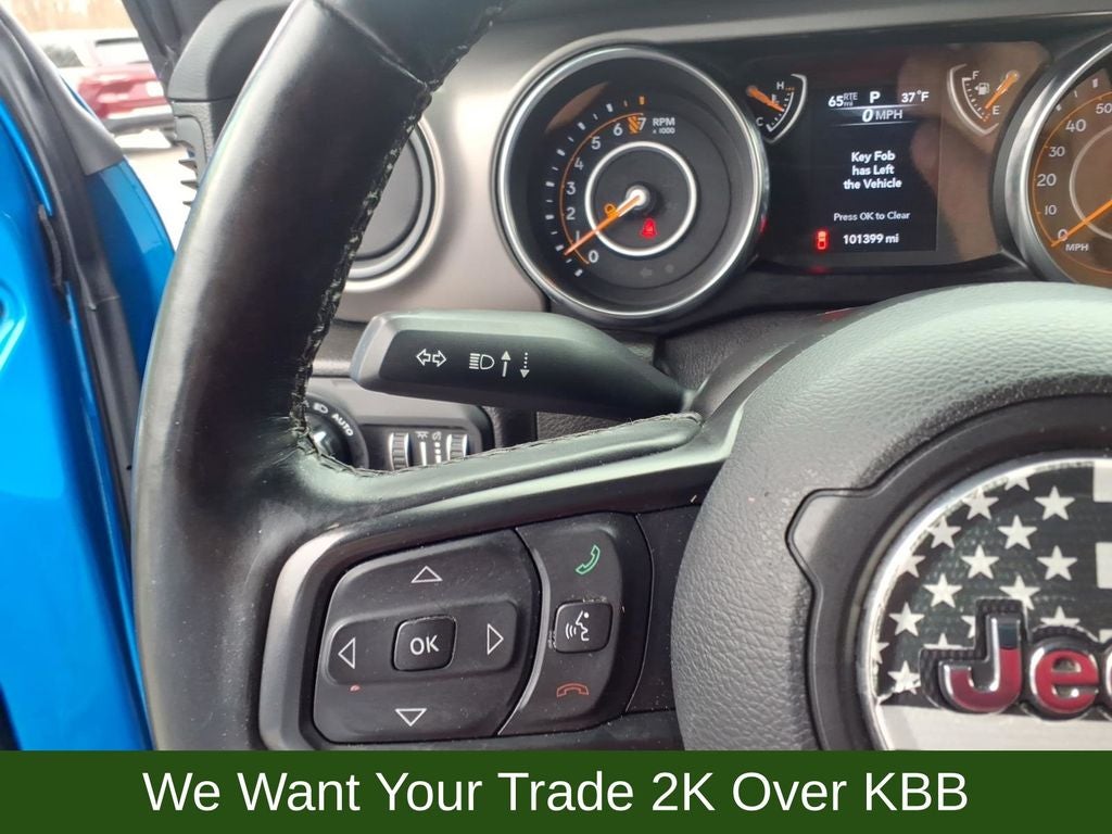 110 mph Vehicle Max Speed Calibration, 240 Amp Alternator, 3.73 Rear Axle Ratio, 4-Wheel Disc Brakes, 4-Wheel Drive Decal, 8 Speakers, 97 mph Maximum Speed Calibration, ABS brakes, Air Conditioning, AM/FM radio, Anti-Lock 4-Wheel Disc Heavy Duty Brakes, Anti-Spin Differential Rear Axle, Automatic Headlamps, Black Grille, Black Trail Rated Badge, Body Color Fender Flares (2-Piece), Brake assist, Bridgestone Brand Tires, Class IV Hitch Receiver, Cloth Low-Back Bucket Seats, Cold Weather Group, Compass, Convenience Group, Daytime Running Lamp System, Deep Tint Sunscreen Windows, Delay-off headlights, Driver door bin, Driver vanity mirror, Dual front impact airbags, Dual front side impact airbags, Electronic Stability Control, Front 1-Touch Down Power Windows, Front anti-roll bar, Front Bucket Seats, Front Center Armrest w/Storage, Front fog lights, Front Heavy Duty Red Accent Shock Absorbers, Front reading lights, GPEC 5 Engine Controller, Heavy-Duty Engine Cooling, Integrated roll-over protection, Leather Wrapped Steering Wheel, Low tire pressure warning, Mold In Color Bumper w/Gloss Black, MOPAR All-Weather Floor Mats (DISC), MOPAR Grab Handle Kit, MOPAR Spray In Bedliner, Normal Duty Suspension, Occupant sensing airbag, Outside temperature display, ParkView Rear Back-Up Camera, Passenger door bin, Passenger vanity mirror, Power Heated Mirrors, Power steering, Power Tailgate Lock, Protection Sill Rails, Quick Order Package 24W Willys, Radio data system, Radio: Uconnect 3 w/5 Display, Rear anti-roll bar, Rear Heavy Duty Red Accent Shock Absorbers, Rear reading lights, Remote Keyless Entry, Security Alarm, Speed control, Speed Sensitive Power Locks, Split folding rear seat, Steering wheel mounted audio controls, Sun Visors w/Illuminated Vanity Mirrors, Tachometer, Telescoping steering wheel, Tilt steering wheel, Traction control, Trailer Hitch Zoom, Trailer Tow Package, Trip computer, Variably intermittent wipers, Wheels: 17 x 7.5 Black Aluminum w/Gray Pad, Wheels: 17 x 7.5 Black Steel Styled, Willys, Willys Hood Decal.