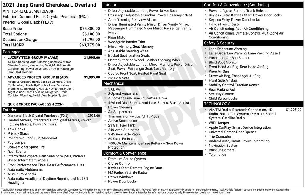 2021 Diamond Black Crystal Pearlcoat Jeep Grand Cherokee L Overland 4WD 8-Speed Automatic 3.6L V6 24V VVT