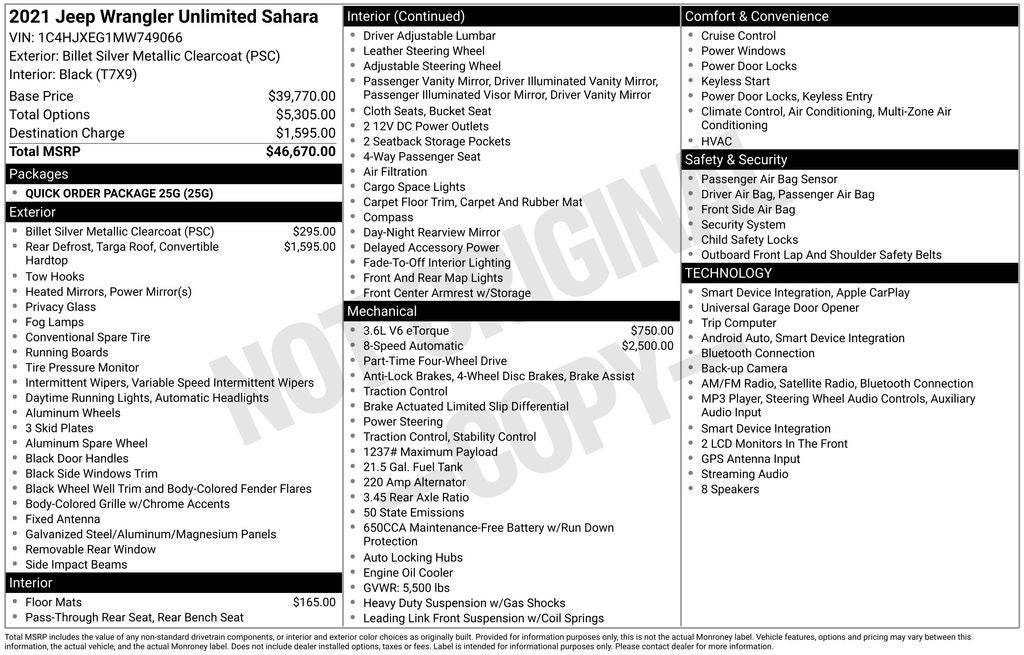 2021 Billet Silver Metallic Clearcoat Jeep Wrangler Unlimited Sahara 4WD 8-Speed Automatic 3.6L V6 24V VVT