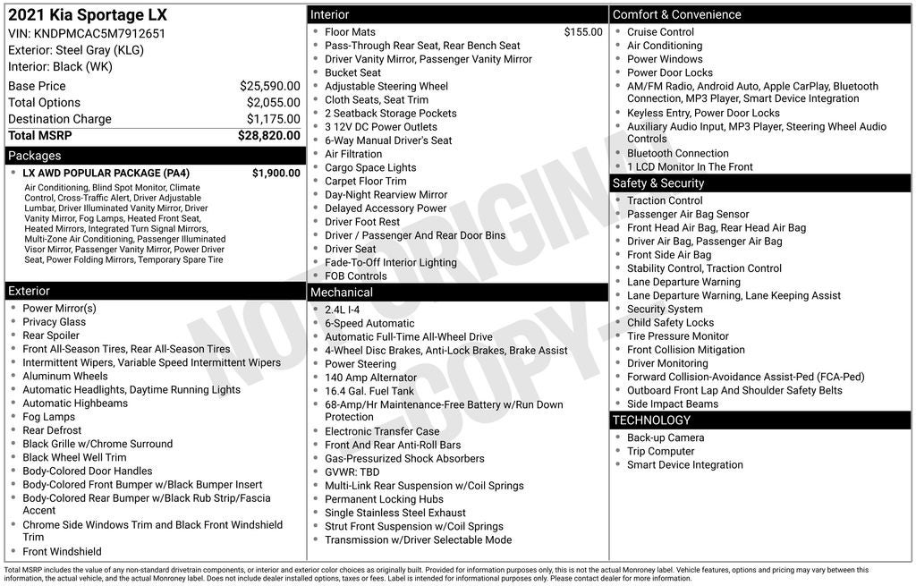 2021 Steel Gray Kia Sportage LX AWD 6-Speed Automatic Electronic with Overdrive 2.4L I4 DGI DOHC 16V