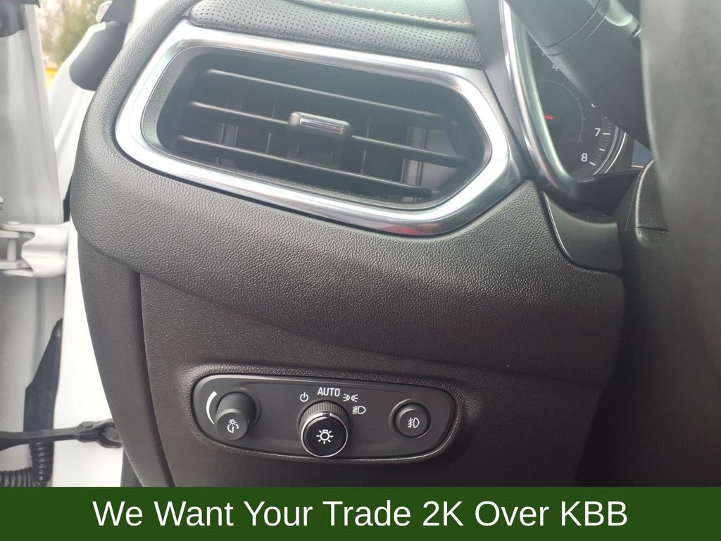 The exterior of this Equinox Premier exudes a sleek and sophisticated style, with the Iridescent Pearl Tricoat paint and 19-inch aluminum wheels adding a touch of elegance. Step inside and be surrounded by the comfort of the perforated leather-appointed seats, with the driver's seat featuring 8-way power adjustability and 2-way power lumbar control.