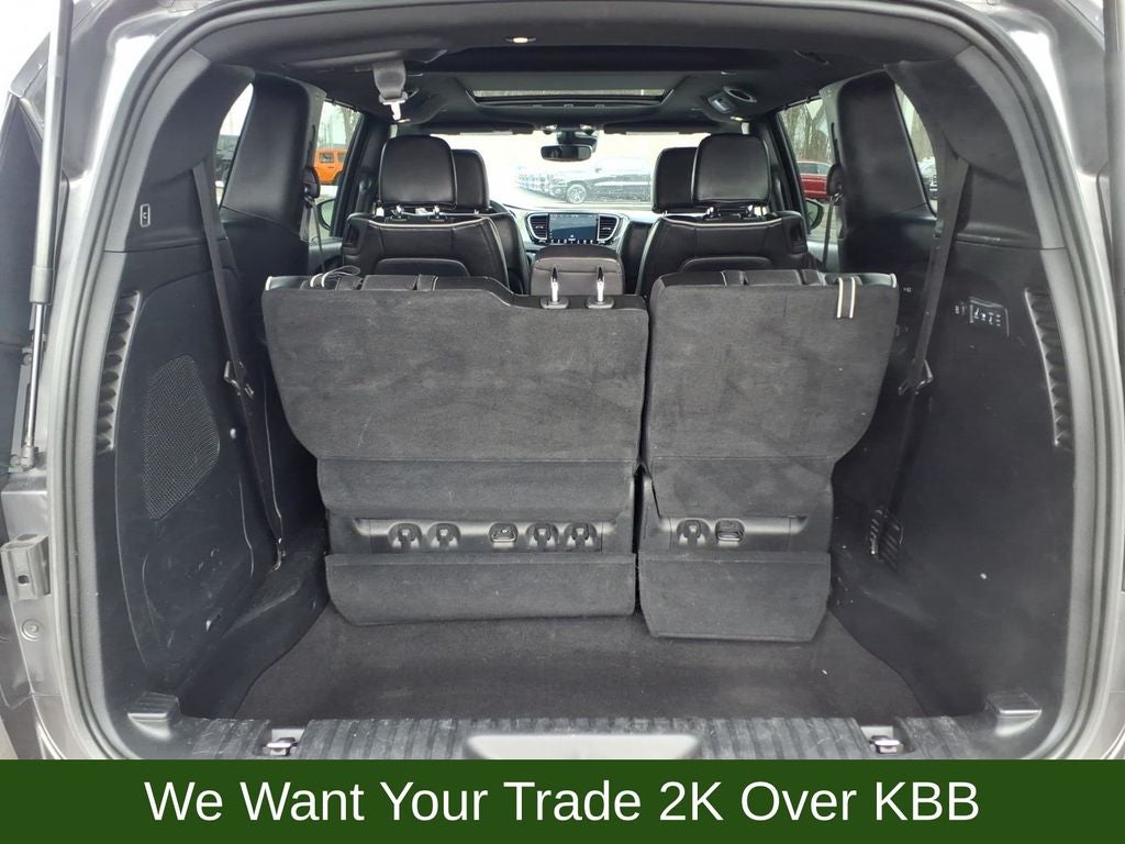 19 Speakers, 3.25 Axle Ratio, 3rd row seats: split-bench, 4-Wheel Disc Brakes, ABS brakes, Air Conditioning, Alloy wheels, AM/FM radio: SiriusXM 360L, Anodized Ink Badging, Apple CarPlay/Android Auto, Audio memory, Auto Adjust In Reverse Exterior Mirrors, Auto-dimming door mirrors, Auto-Dimming Exterior Driver Mirror, Auto-dimming Rear-View mirror, Automatic temperature control, Black Day Light Opening Moldings, Black Seats, Body Color Door Handles, Body Color Exterior Mirrors, Bodyside moldings, Brake assist, Bumpers: body-color, Chrome/Body Color Exterior Mirrors, Compass, Delay-off headlights, Driver door bin, Driver vanity mirror, Driver's Seat Mounted Armrest, Dual front impact airbags, Dual front side impact airbags, Electronic Stability Control, Emergency communication system: SiriusXM Guardian, Exterior Mirrors Courtesy Lamps, Exterior Mirrors w/Heating Element, Exterior Mirrors w/Memory, Exterior Mirros w/Supplemental Signals, Four wheel independent suspension, Front anti-roll bar, Front Bucket Seats, Front dual zone A/C, Front fog lights, Front reading lights, Fully automatic headlights, Garage door transmitter: HomeLink, harman/kardon® Speakers, Heated door mirrors, Heated front seats, Heated rear seats, Heated steering wheel, Illuminated entry, Knee airbag, Low tire pressure warning, Memory seat, Nappa Leather Bucket Seats w/S Logo, Navigation System, Occupant sensing airbag, Outside temperature display, Overhead airbag, Overhead console, Panic alarm, ParkView Rear Back-Up Camera, Passenger door bin, Passenger seat mounted armrest, Passenger vanity mirror, Piano Black Interior Accents, Pirelli Brand Tires, Power door mirrors, Power driver seat, Power Liftgate, Power Mirrors Manual Folding, Power moonroof, Power passenger seat, Power steering, Power windows, Premium Fascia Upper/Lower Grille w/Black Surround, Premium Leather Trim Bucket Seats, Premium Rear Fascia Black, Quick Order Package 27P, Radio data system, Radio: Uconnect 5 Nav w/10.1 Display, Rain sensing wipers, Rear air conditioning, Rear reading lights, Rear window defroster, Rear window wiper, Reclining 3rd row seat, Remote keyless entry, Roof rack, S Appearance Package, S Badge, Security system, Speed control, Split folding rear seat, Spoiler, Steering wheel mounted audio controls, Tachometer, Telescoping steering wheel, Tilt steering wheel, Touring Suspension, Traction control, Trip computer, Turn signal indicator mirrors, Variably intermittent wipers, Ventilated front seats, Voltmeter, Wheels: 18 x 7.5 Painted Aluminum Design 2, Wheels: 20 x 7.5 S-Model Aluminum Design 1.