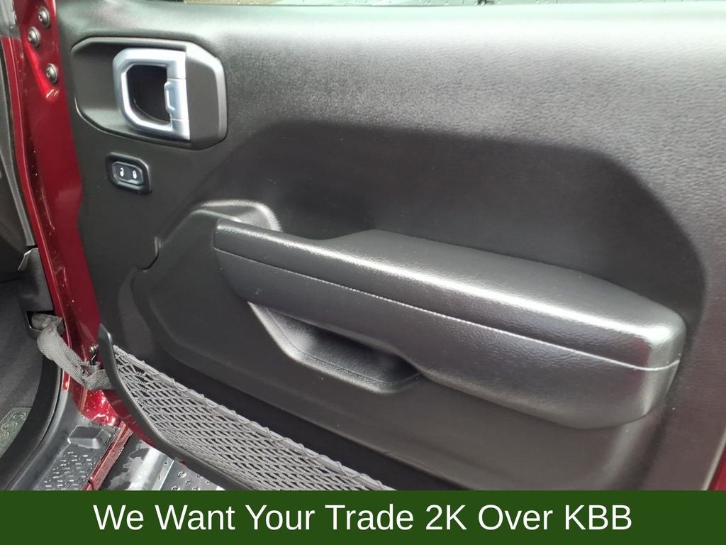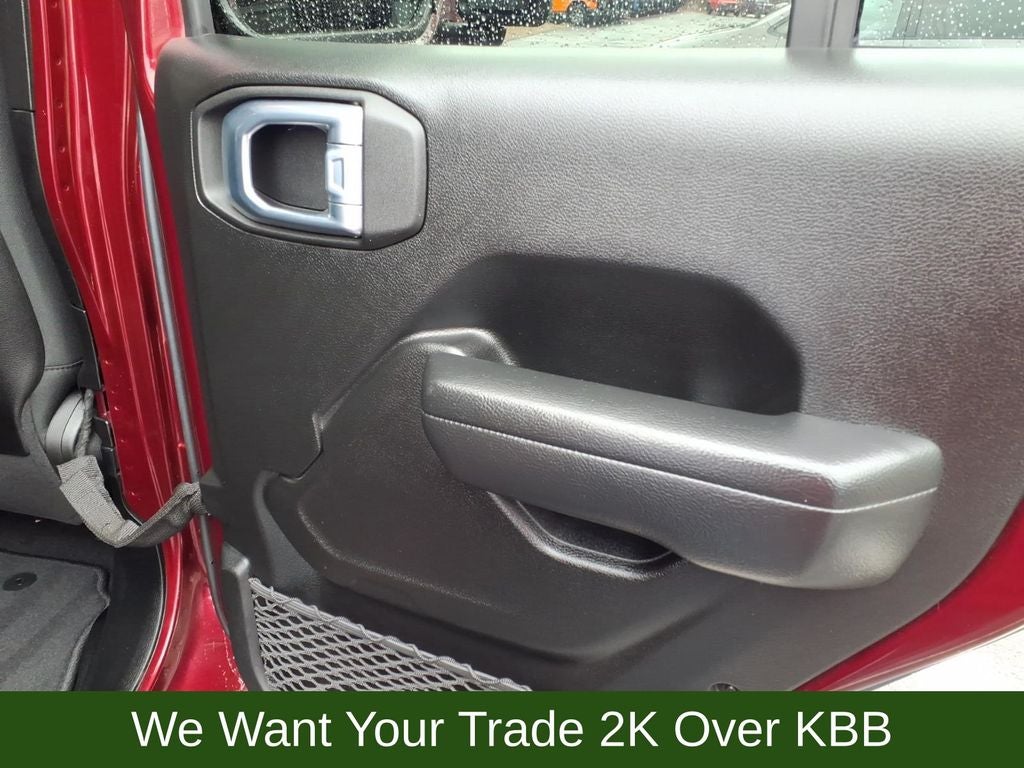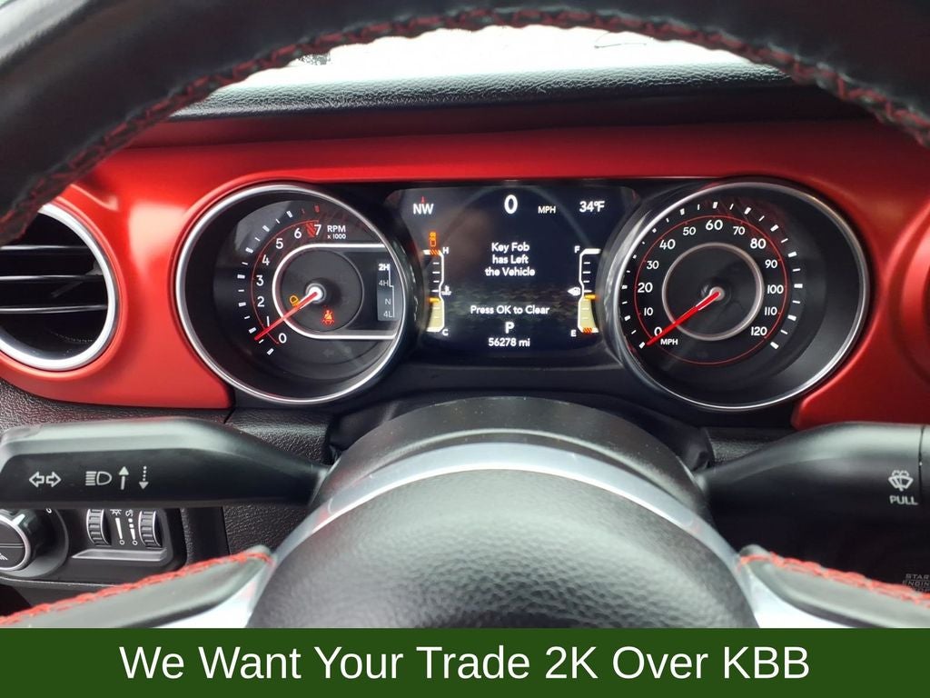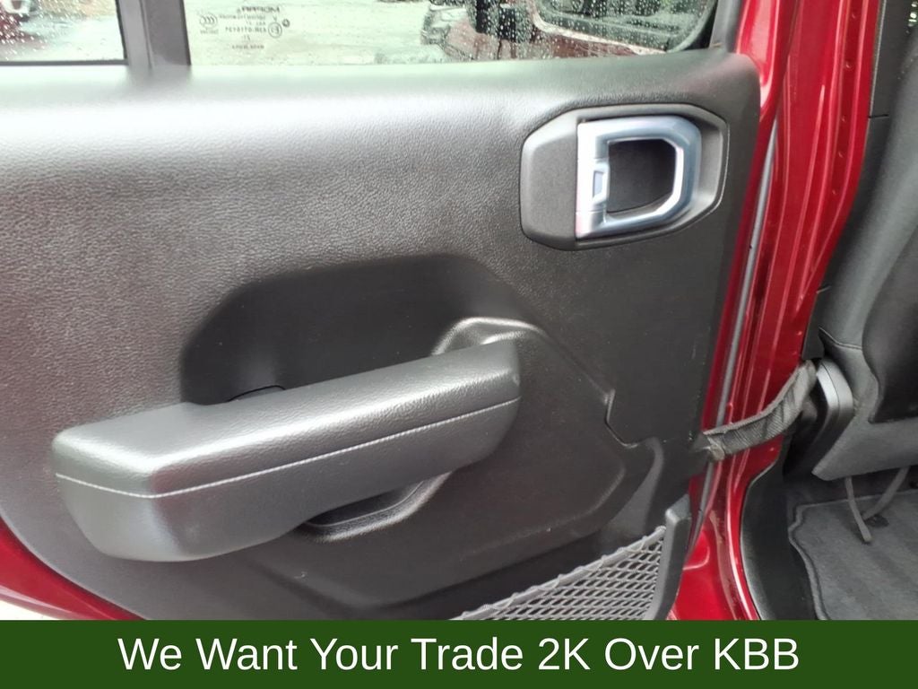 The Gladiator Rubicon's striking Red exterior is complemented by a Black 3-Piece Hard Top, adding a touch of style and versatility. Inside, the premium cloth low-back bucket seats and split-folding rear seat provide ample comfort and utility, while the Uconnect 4C Nav system with an 8.4 display keeps you connected and entertained.