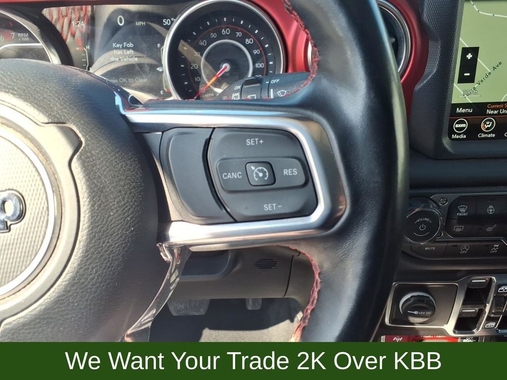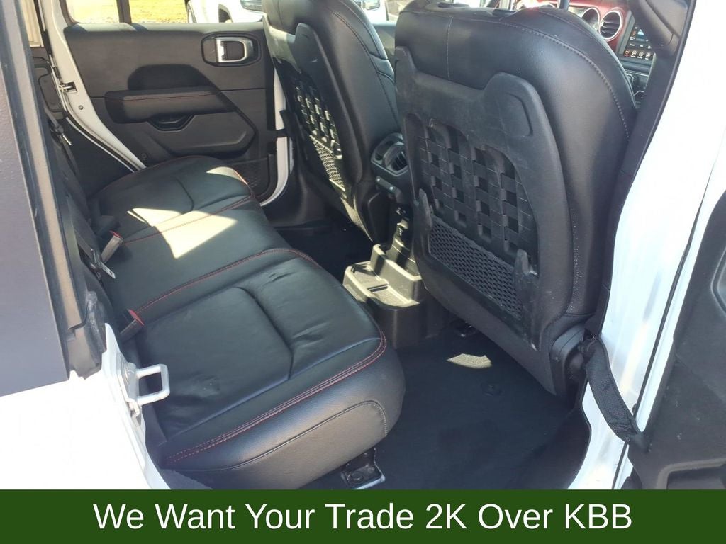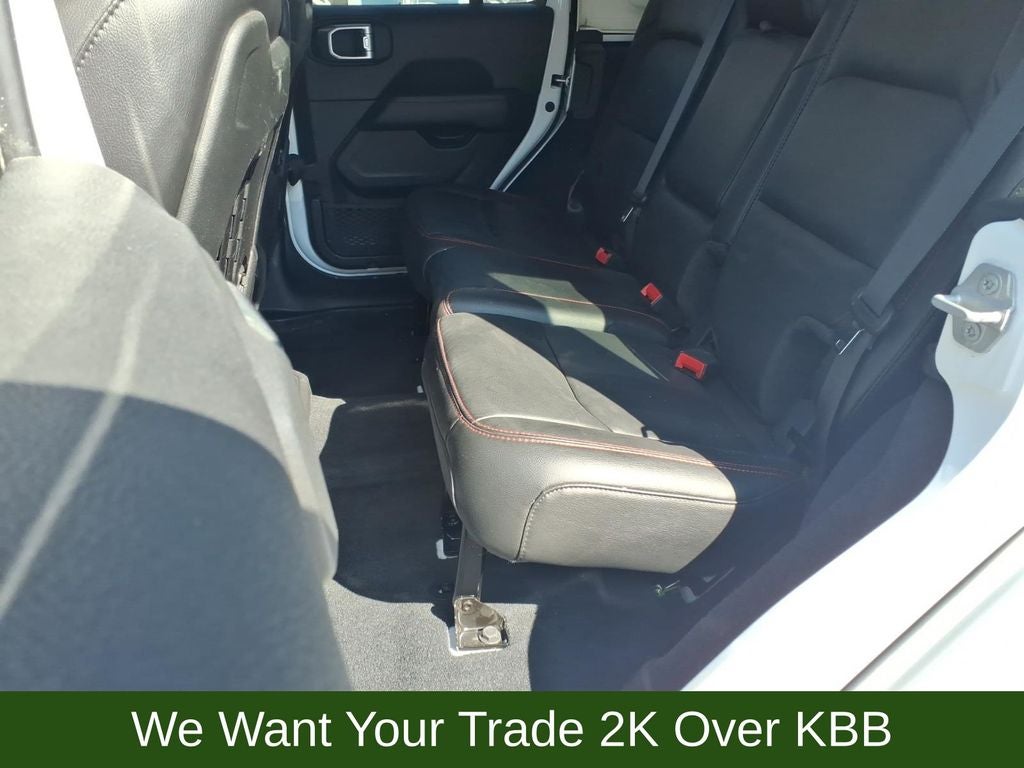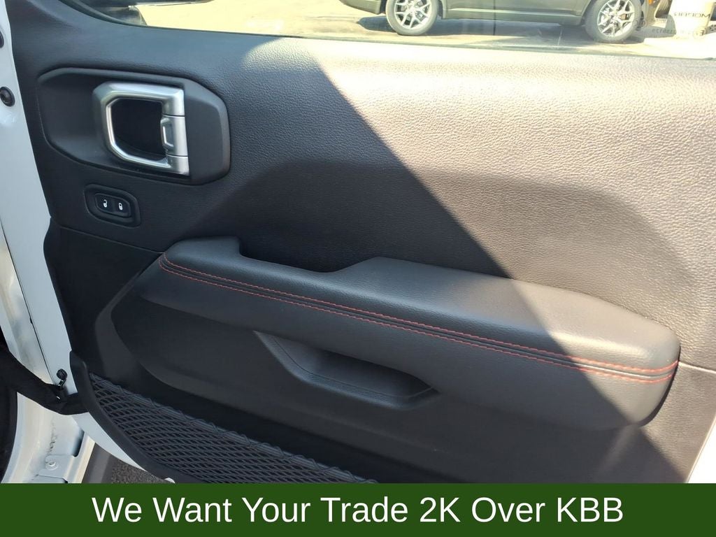 240 Amp Alternator, 4-Wheel Disc Brakes, 4.10 Rear Axle Ratio, 7 & 4 Pin Wiring Harness, 700 Amp Maintenance Free Battery, 9 Speakers, ABS brakes, Air Conditioning, Alloy wheels, AM/FM radio: SiriusXM, Apple CarPlay/Android Auto, Auto-dimming Rear-View mirror, Automatic temperature control, Aux Battery, Auxiliary Switches, Black 3-Piece Hard Top, Body Color Rubicon Highline Flare, Brake assist, Class II Receiver Hitch, Cold Weather Group, Compass, Delay-off headlights, Driver door bin, Driver vanity mirror, Dual front impact airbags, Dual front side impact airbags, Electronic Stability Control, Emergency communication system: SiriusXM Guardian, Engine Oil Cooler, Freedom Panel Storage Bag, Front anti-roll bar, Front Bucket Seats, Front Center Armrest w/Storage, Front dual zone A/C, Front fog lights, Front reading lights, Fully automatic headlights, Garage door transmitter, Heated door mirrors, Heated Front Seats, Heated Steering Wheel, Illuminated entry, Integrated roll-over protection, Leather steering wheel, Low tire pressure warning, Navigation System, No Soft Top, Non-Lock Fuel Cap w/o Discriminator, Occupant sensing airbag, Outside temperature display, Panic alarm, ParkView Rear Back-Up Camera, Passenger door bin, Passenger vanity mirror, Performance Suspension, Power door mirrors, Power steering, Power windows, Premium Cloth Low-Back Bucket Seats, Quick Order Package 22R, Radio data system, Radio: Uconnect 4C Nav w/8.4 Display, Rear anti-roll bar, Rear reading lights, Rear Window Defroster, Rear Window Wiper/Washer, Remote keyless entry, Remote Start System, Security system, Speed control, Split folding rear seat, Steering wheel mounted audio controls, Stop-Start Dual Battery System, Tachometer, Telescoping steering wheel, Tilt steering wheel, Traction control, Trailer Tow & HD Electrical Group, Trip computer, Variably intermittent wipers, Voltmeter, Wheels: 17 x 7.5 Black w/Machined Lip, Wheels: 17 x 7.5 Machined w/Black Pockets.