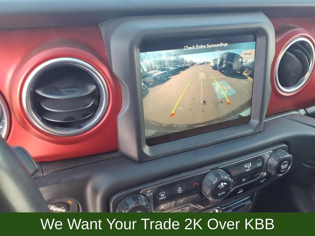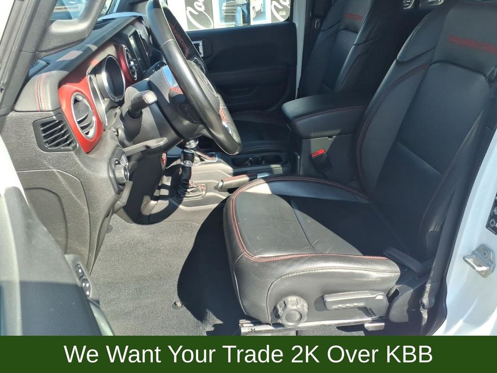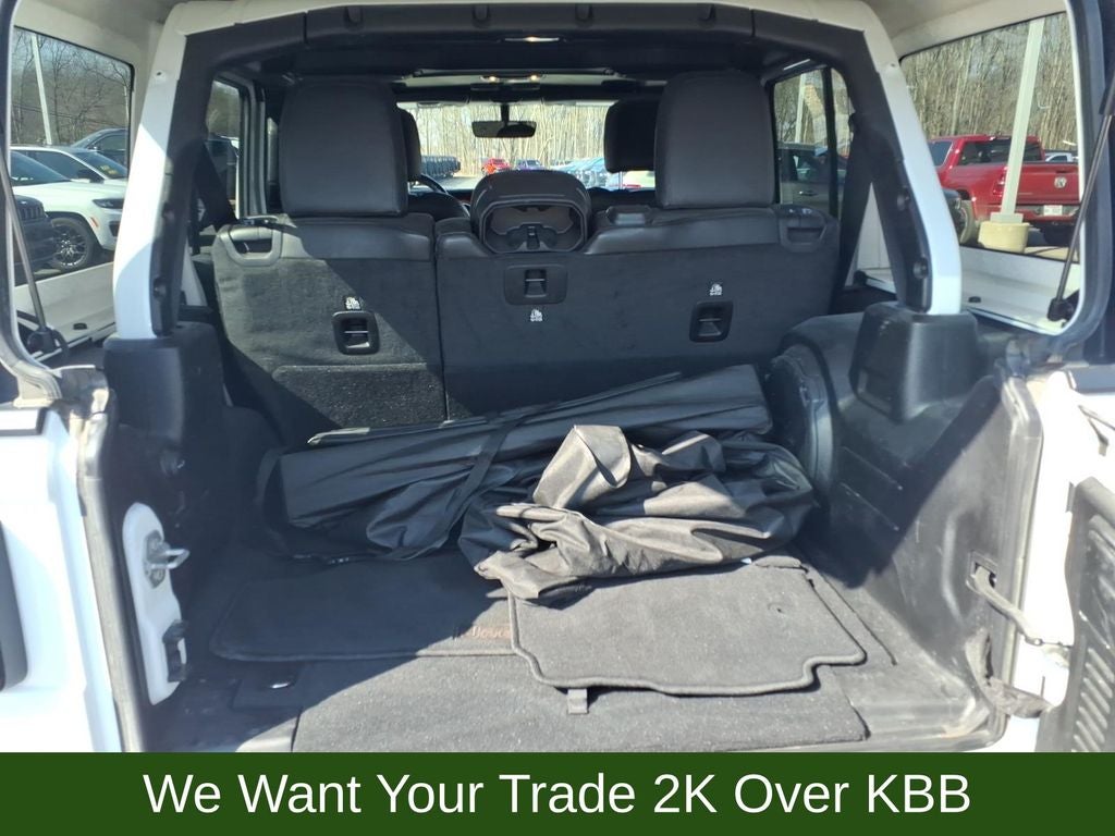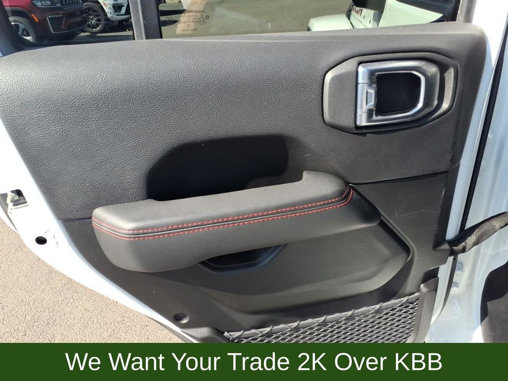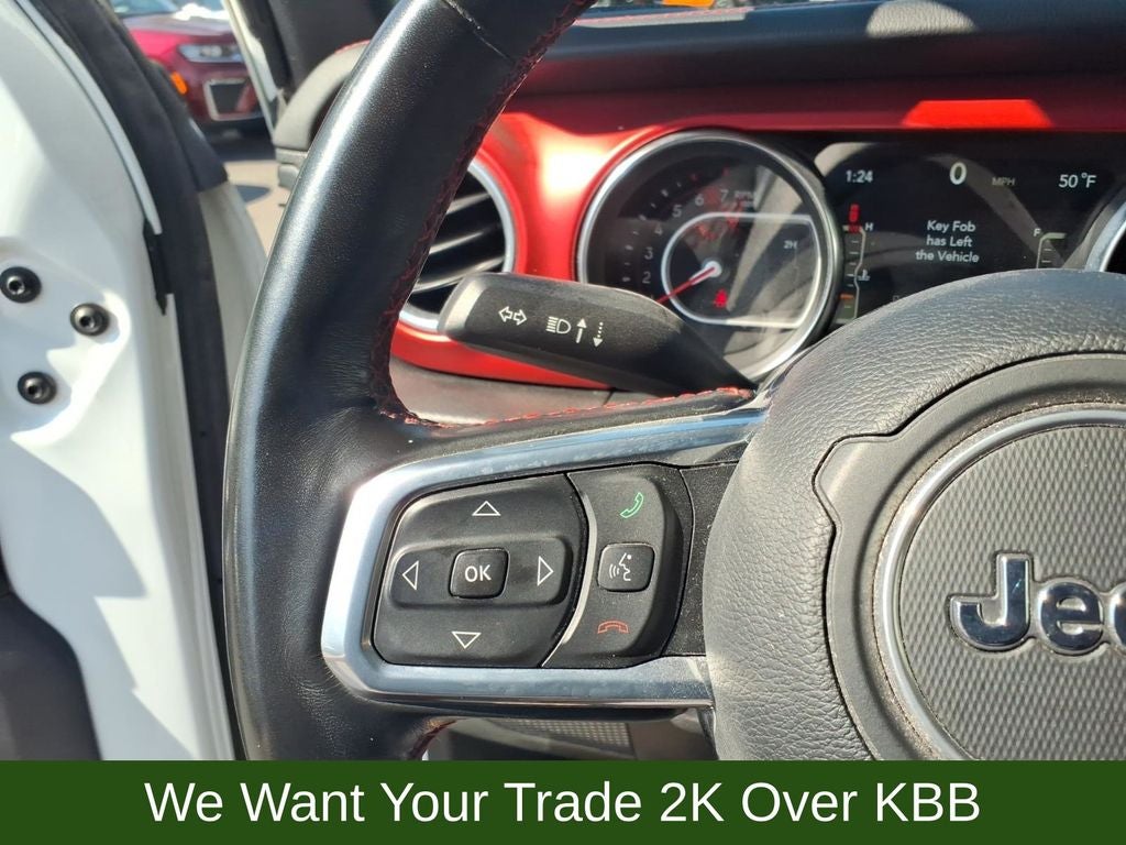 240 Amp Alternator, 4-Wheel Disc Brakes, 4.10 Rear Axle Ratio, 7 & 4 Pin Wiring Harness, 700 Amp Maintenance Free Battery, 9 Speakers, ABS brakes, Air Conditioning, Alloy wheels, AM/FM radio: SiriusXM, Apple CarPlay/Android Auto, Auto-dimming Rear-View mirror, Automatic temperature control, Aux Battery, Auxiliary Switches, Black 3-Piece Hard Top, Body Color Rubicon Highline Flare, Brake assist, Class II Receiver Hitch, Cold Weather Group, Compass, Delay-off headlights, Driver door bin, Driver vanity mirror, Dual front impact airbags, Dual front side impact airbags, Electronic Stability Control, Emergency communication system: SiriusXM Guardian, Engine Oil Cooler, Freedom Panel Storage Bag, Front anti-roll bar, Front Bucket Seats, Front Center Armrest w/Storage, Front dual zone A/C, Front fog lights, Front reading lights, Fully automatic headlights, Garage door transmitter, Heated door mirrors, Heated Front Seats, Heated Steering Wheel, Illuminated entry, Integrated roll-over protection, Leather steering wheel, Low tire pressure warning, Navigation System, No Soft Top, Non-Lock Fuel Cap w/o Discriminator, Occupant sensing airbag, Outside temperature display, Panic alarm, ParkView Rear Back-Up Camera, Passenger door bin, Passenger vanity mirror, Performance Suspension, Power door mirrors, Power steering, Power windows, Premium Cloth Low-Back Bucket Seats, Quick Order Package 22R, Radio data system, Radio: Uconnect 4C Nav w/8.4 Display, Rear anti-roll bar, Rear reading lights, Rear Window Defroster, Rear Window Wiper/Washer, Remote keyless entry, Remote Start System, Security system, Speed control, Split folding rear seat, Steering wheel mounted audio controls, Stop-Start Dual Battery System, Tachometer, Telescoping steering wheel, Tilt steering wheel, Traction control, Trailer Tow & HD Electrical Group, Trip computer, Variably intermittent wipers, Voltmeter, Wheels: 17 x 7.5 Black w/Machined Lip, Wheels: 17 x 7.5 Machined w/Black Pockets.