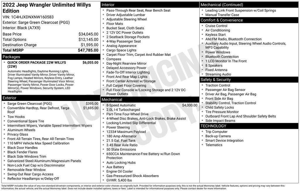 2022 Sarge Green Clearcoat Jeep Wrangler Unlimited Willys 4WD 8-Speed Automatic 2.0L I4 DOHC