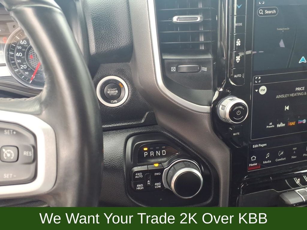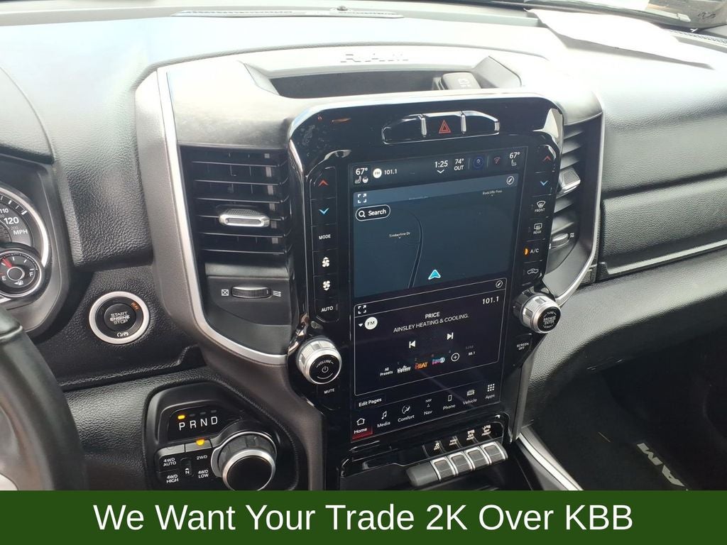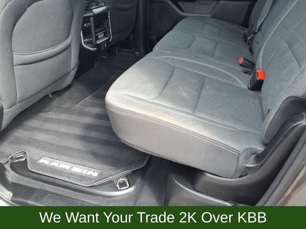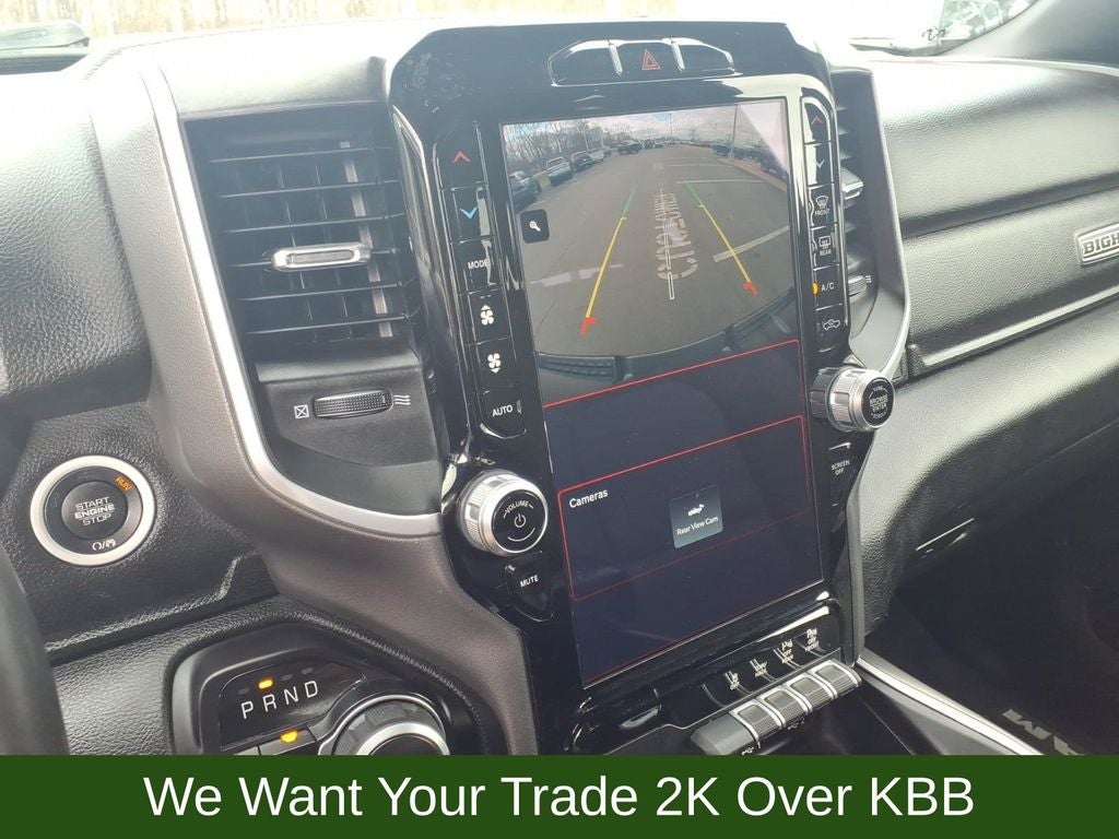 115V Auxiliary Power Outlet, 115V Auxiliary Rear Power Outlet, 12 Touchscreen Display, 2nd Row In Floor Storage Bins, 3 Rear Seat Head Restraints, 33 Gallon Fuel Tank, 4 Way Front Headrests, 4-Wheel Disc Brakes, 400W Inverter, 48V Belt Starter Generator, 4G LTE Wi-Fi Hot Spot, 6 Speakers, 8.4 Touchscreen Display, 9 Amplified Speakers w/Subwoofer, ABS brakes, Air Conditioning, Air Conditioning ATC w/Dual Zone Control, All R1 High Radios, All Radio Equipped Vehicles, Alloy wheels, AM/FM radio, Anti-Spin Differential Rear Axle, Apple CarPlay, Auto-Dimming Exterior Driver Mirror, Auto-Dimming Rear-View Mirror, Big Horn Badge, Big Horn Level B Equipment Group (DISC), Black Exterior Mirrors, Black Exterior Truck Badging, Black Headlamp Bezels, Black Interior Accents, Black Premium Power Mirrors (GUL), Bluetooth® Handsfree Phone & Audio, Body Color Front Bumper, Body Color Rear Bumper w/Step Pads, Brake assist, Bucket Seats, Bumpers: chrome, Class IV Receiver Hitch, Cloth Bench Seat, Cluster 7.0 TFT Color Display, Compass, Connected Travel & Traffic Services, Connectivity - US/Canada, Convex Wide-Angle Mirror Insert, Delay-off headlights, Delete LED Lamp - Floor Console Bin, Deluxe Cloth Bucket Seats, Disassociated Touchscreen Display, Driver door bin, Dual Exhaust w/Black Tips, Dual front impact airbags, Dual front side impact airbags, Electronic Stability Control, Emergency communication system: SiriusXM Guardian, Exterior Mirrors Courtesy Lamps, Exterior Mirrors w/Supplemental Signals, Foam Bottle Insert (Door Trim Panel), For Details, Visit DriveUconnect.com, For More Info, Call 800-643-2112, Front anti-roll bar, Front Center Armrest w/Storage, Front fog lights, Front License Plate Bracket, Front reading lights, Front Seat Back Map Pockets, Front wheel independent suspension, Full Length Floor Console, Fully automatic headlights, Global Telematics Box Module (TBM), Glove Box Lamp, Google Android Auto, GPS Antenna Input, GPS Navigation, HD Radio, Heated door mirrors, Heated Front Seats, Heated Steering Wheel, Heavy-Duty Engine Cooling, Illuminated entry, Integrated Center Stack Radio, Integrated Voice Command w/Bluetooth®, Leather steering wheel, LED Footwell Lighting, Low tire pressure warning, Manual Adjust 4-Way Front Passenger Seat, Media Hub w/2 Charge Only USBs, Night Edition (DISC), Occupant sensing airbag, Outside temperature display, Overhead airbag, Overhead console, Panic alarm, ParkSense Front/Rear Park Assist w/Stop, ParkView Rear Back-Up Camera, Passenger door bin, Passenger vanity mirror, Power 2-Way Driver Lumbar Adjust, Power 8-Way Driver Seat, Power Adjustable Pedals, Power door mirrors, Power steering, Power windows, Quick Order Package 25Z Big Horn, Radio data system, Radio: Uconnect 3 w/5 Display, Radio: Uconnect 5 Nav w/12.0 Display, Radio: Uconnect 5 W w/8.4 Display, Rear 60/40 Folding Seat, Rear anti-roll bar, Rear Center Armrest, Rear Dome w/On/Off Switch Lamp, Rear Power Sliding Window, Rear seat center armrest, Rear step bumper, Rear Underseat Compartment Storage (DISC), Rear Window Defroster, Remote keyless entry, Remote Start System, Security Alarm, SiriusXM Radio Service, SiriusXM Satellite Radio, SiriusXM w/360L, Speed control, Split folding rear seat, Steering wheel mounted audio controls, Sun Visors w/Illuminated Vanity Mirrors, Tachometer, Telescoping steering wheel, Tilt steering wheel, Traction control, Trip computer, Universal Garage Door Opener, USB Host Flip, Variably intermittent wipers, Voltmeter, Wheels: 18 x 8 Cast-Aluminum Painted, Wheels: 20 x 9.0 Premium Paint/Polished (DISC).