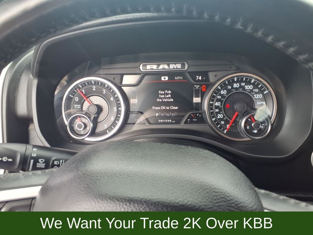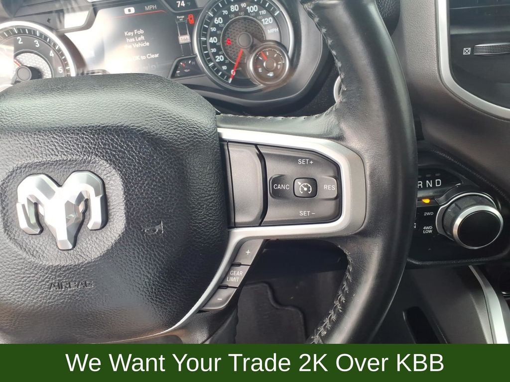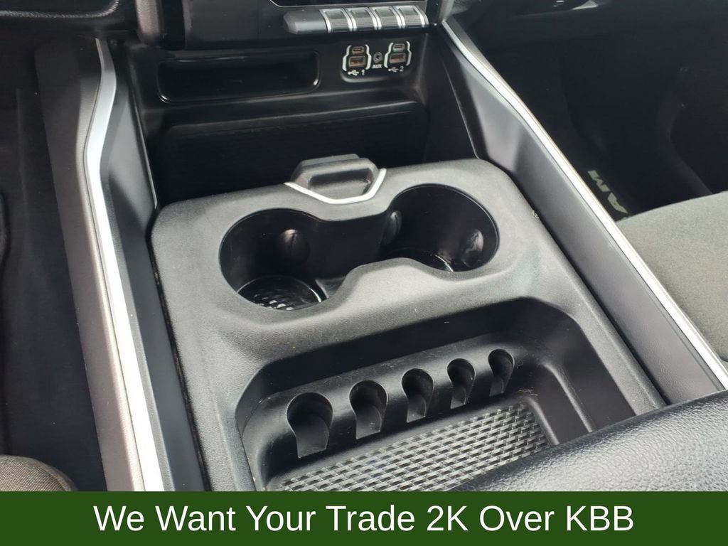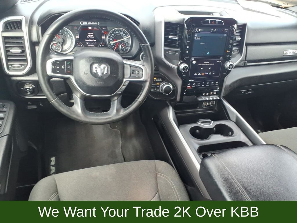 115V Auxiliary Power Outlet, 115V Auxiliary Rear Power Outlet, 12 Touchscreen Display, 2nd Row In Floor Storage Bins, 3 Rear Seat Head Restraints, 33 Gallon Fuel Tank, 4 Way Front Headrests, 4-Wheel Disc Brakes, 400W Inverter, 48V Belt Starter Generator, 4G LTE Wi-Fi Hot Spot, 6 Speakers, 8.4 Touchscreen Display, 9 Amplified Speakers w/Subwoofer, ABS brakes, Air Conditioning, Air Conditioning ATC w/Dual Zone Control, All R1 High Radios, All Radio Equipped Vehicles, Alloy wheels, AM/FM radio, Anti-Spin Differential Rear Axle, Apple CarPlay, Auto-Dimming Exterior Driver Mirror, Auto-Dimming Rear-View Mirror, Big Horn Badge, Big Horn Level B Equipment Group (DISC), Black Exterior Mirrors, Black Exterior Truck Badging, Black Headlamp Bezels, Black Interior Accents, Black Premium Power Mirrors (GUL), Bluetooth® Handsfree Phone & Audio, Body Color Front Bumper, Body Color Rear Bumper w/Step Pads, Brake assist, Bucket Seats, Bumpers: chrome, Class IV Receiver Hitch, Cloth Bench Seat, Cluster 7.0 TFT Color Display, Compass, Connected Travel & Traffic Services, Connectivity - US/Canada, Convex Wide-Angle Mirror Insert, Delay-off headlights, Delete LED Lamp - Floor Console Bin, Deluxe Cloth Bucket Seats, Disassociated Touchscreen Display, Driver door bin, Dual Exhaust w/Black Tips, Dual front impact airbags, Dual front side impact airbags, Electronic Stability Control, Emergency communication system: SiriusXM Guardian, Exterior Mirrors Courtesy Lamps, Exterior Mirrors w/Supplemental Signals, Foam Bottle Insert (Door Trim Panel), For Details, Visit DriveUconnect.com, For More Info, Call 800-643-2112, Front anti-roll bar, Front Center Armrest w/Storage, Front fog lights, Front License Plate Bracket, Front reading lights, Front Seat Back Map Pockets, Front wheel independent suspension, Full Length Floor Console, Fully automatic headlights, Global Telematics Box Module (TBM), Glove Box Lamp, Google Android Auto, GPS Antenna Input, GPS Navigation, HD Radio, Heated door mirrors, Heated Front Seats, Heated Steering Wheel, Heavy-Duty Engine Cooling, Illuminated entry, Integrated Center Stack Radio, Integrated Voice Command w/Bluetooth®, Leather steering wheel, LED Footwell Lighting, Low tire pressure warning, Manual Adjust 4-Way Front Passenger Seat, Media Hub w/2 Charge Only USBs, Night Edition (DISC), Occupant sensing airbag, Outside temperature display, Overhead airbag, Overhead console, Panic alarm, ParkSense Front/Rear Park Assist w/Stop, ParkView Rear Back-Up Camera, Passenger door bin, Passenger vanity mirror, Power 2-Way Driver Lumbar Adjust, Power 8-Way Driver Seat, Power Adjustable Pedals, Power door mirrors, Power steering, Power windows, Quick Order Package 25Z Big Horn, Radio data system, Radio: Uconnect 3 w/5 Display, Radio: Uconnect 5 Nav w/12.0 Display, Radio: Uconnect 5 W w/8.4 Display, Rear 60/40 Folding Seat, Rear anti-roll bar, Rear Center Armrest, Rear Dome w/On/Off Switch Lamp, Rear Power Sliding Window, Rear seat center armrest, Rear step bumper, Rear Underseat Compartment Storage (DISC), Rear Window Defroster, Remote keyless entry, Remote Start System, Security Alarm, SiriusXM Radio Service, SiriusXM Satellite Radio, SiriusXM w/360L, Speed control, Split folding rear seat, Steering wheel mounted audio controls, Sun Visors w/Illuminated Vanity Mirrors, Tachometer, Telescoping steering wheel, Tilt steering wheel, Traction control, Trip computer, Universal Garage Door Opener, USB Host Flip, Variably intermittent wipers, Voltmeter, Wheels: 18 x 8 Cast-Aluminum Painted, Wheels: 20 x 9.0 Premium Paint/Polished (DISC).