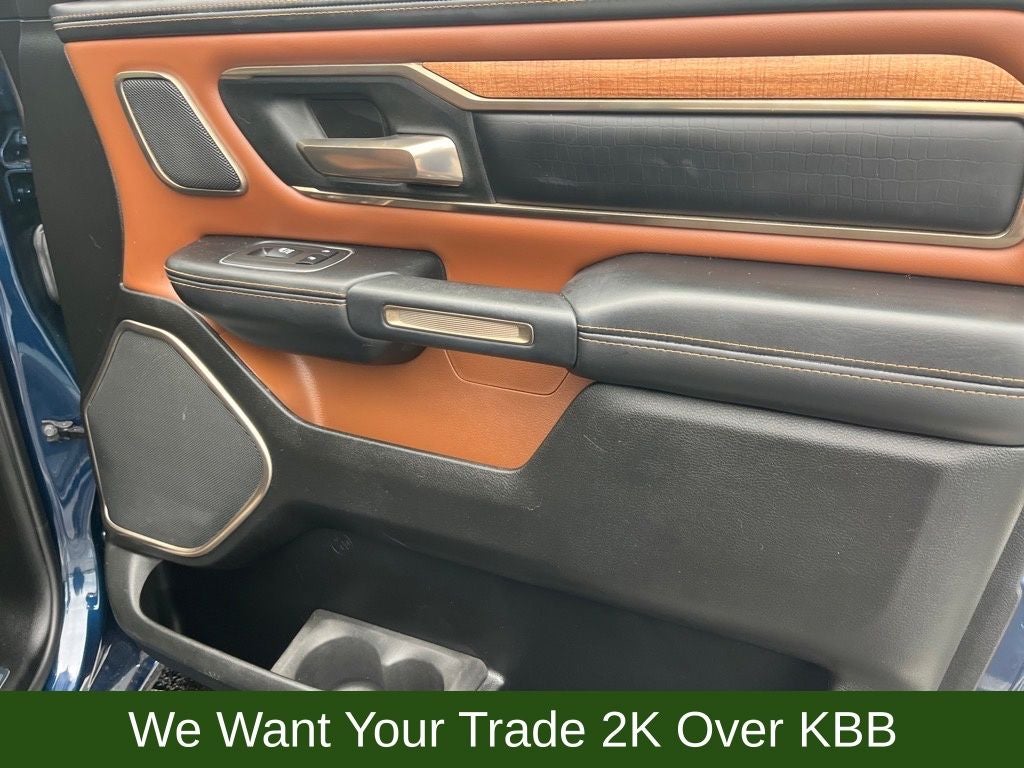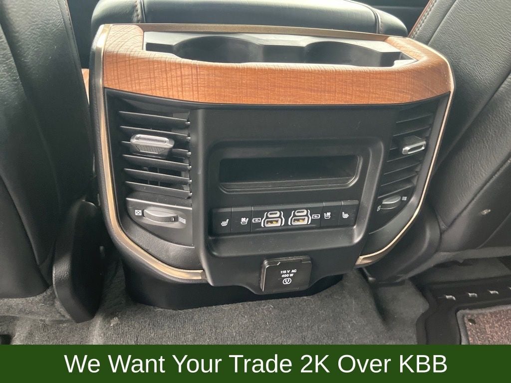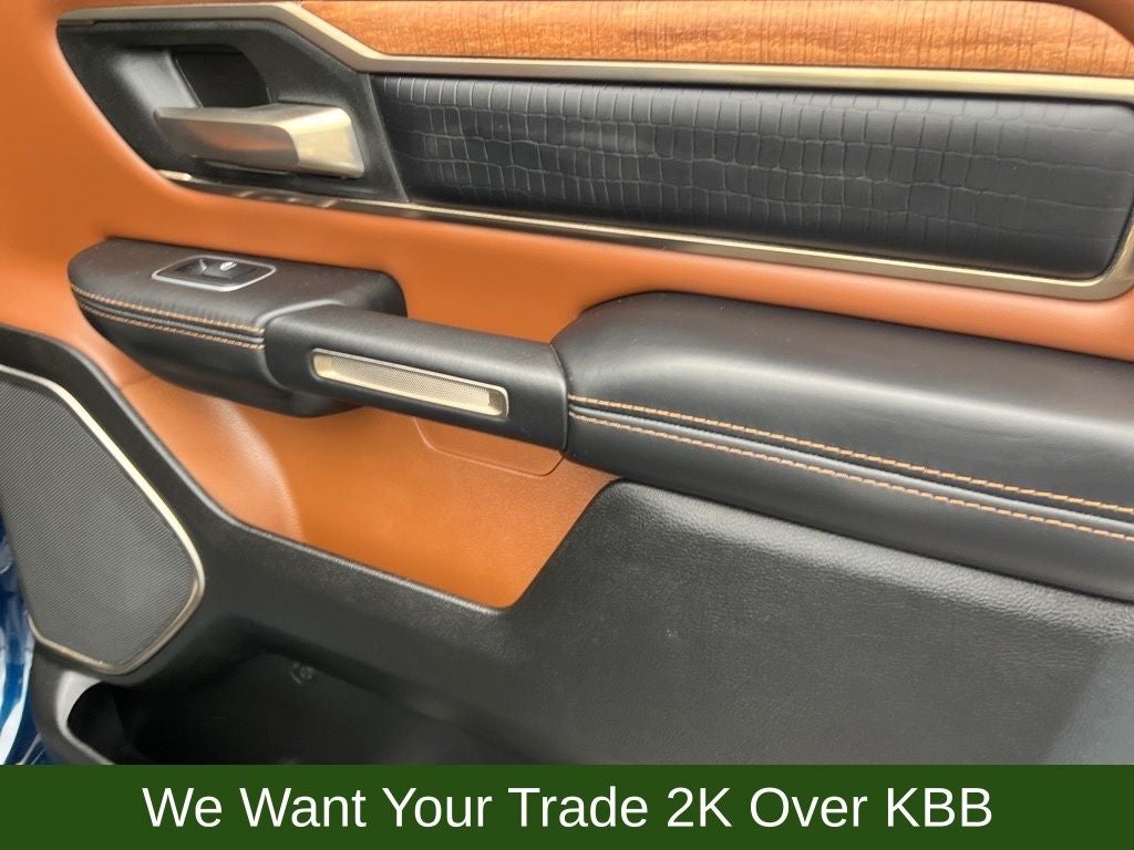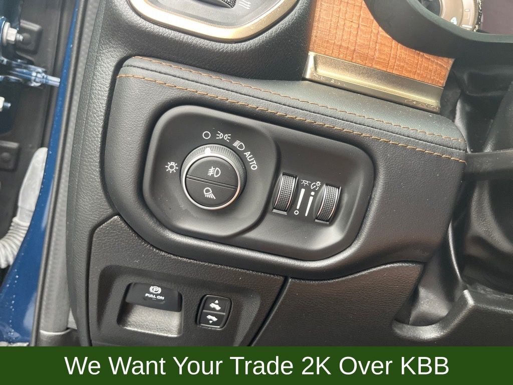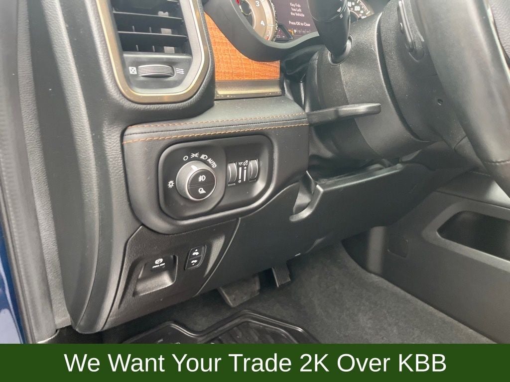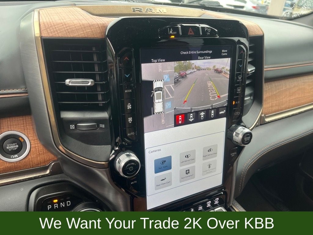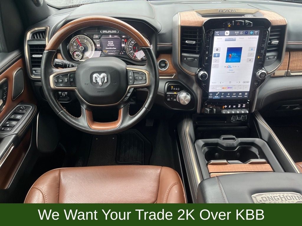#1 Seat Foam Cushion, 10 Speakers, 12 Touchscreen Display, 3 Rear Seat Head Restraints, 3.21 Rear Axle Ratio, 33 Gallon Fuel Tank, 4 Way Front Headrests, 4-Corner Air Suspension, 4-Wheel Disc Brakes, 48V Belt Starter Generator, 4G LTE Wi-Fi Hot Spot, ABS brakes, Adaptive Cruise Control w/Stop & Go, Adjustable pedals, Air Conditioning, All R1 High Radios, All Radio Equipped Vehicles, Alloy wheels, AM/FM radio: SiriusXM, Apple CarPlay, Apple CarPlay/Android Auto, Audio memory, Auto High-beam Headlights, Auto-dimming door mirrors, Auto-Dimming Exterior Passenger Mirror, Auto-dimming Rear-View mirror, Automatic temperature control, Blind Spot & Cross Path Detection, Brake assist, Bucket Seats, Bumpers: chrome, Chrome Exterior Mirrors, Cold Weather Group, Compass, Connected Travel & Traffic Services, Connectivity - US/Canada, Delay-off headlights, Digital Rearview Mirror, Disassociated Touchscreen Display, Driver door bin, Driver Seat Memory, Driver vanity mirror, Dual front impact airbags, Dual front side impact airbags, Dual Rear Exhaust w/Bright Tips, EcoDiesel Badge, Electronic Stability Control, Engine Block Heater, Exterior Mirrors Courtesy Lamps, Exterior Mirrors w/Heating Element, Exterior Mirrors w/Memory, Exterior Mirrors w/Supplemental Signals, For Details, Visit DriveUconnect.com, For More Info, Call 800-643-2112, Front anti-roll bar, Front Bucket Seats, Front Center Armrest w/Storage, Front dual zone A/C, Front fog lights, Front License Plate Bracket, Front reading lights, Front Seat Back Map Pockets, Front wheel independent suspension, Full Length Premium Floor Console, Fully automatic headlights, Garage door transmitter, Genuine wood console insert, Genuine wood dashboard insert, Genuine wood door panel insert, Global Telematics Box Module (TBM), Google Android Auto, GPS Antenna Input, GPS Navigation, HD Radio, Heads-Up Display, Heated door mirrors, Heated Front Seats, Heated front seats, Heated rear seats, Heated Second Row Seats, Heated Steering Wheel, Heated steering wheel, Heavy-Duty Engine Cooling, Illuminated entry, Integrated Center Stack Radio, Integrated Voice Command w/Bluetooth®, Lane Keep Assist, Leather steering wheel, Leather Trimmed Bucket Seats, LED CHMSL Lamp, Longhorn Level 1 Equipment Group, Low tire pressure warning, Memory seat, MOPAR Winter Front Grille Cover, Navigation System, Occupant sensing airbag, Outside temperature display, Overhead airbag, Overhead console, Panic alarm, Parallel & Perp Park Assist w/Stop, ParkView Rear Back-Up Camera, Passenger door bin, Passenger vanity mirror, Pedal memory, Pedestrian Emergency Braking, Power 4-Way Driver Lumbar Adjust, Power 4-Way Passenger Lumbar Adjust, Power 8-Way Driver & Passenger Seats, Power door mirrors, Power driver seat, Power passenger seat, Power Running Boards, Power steering, Power windows, Power-Folding Mirrors, Quick Order Package 28K Longhorn, Radio data system, Radio: Uconnect 5 Nav w/12.0 Display, Radio: Uconnect 5 Nav w/8.4 Display, Rain sensing wipers, Rear 60/40 Folding Split Recline Seat, Rear anti-roll bar, Rear seat center armrest, Rear step bumper, Rear window defroster, Remote keyless entry, Security system, SiriusXM Radio Service, SiriusXM w/360L, Speed control, Split folding rear seat, Steering wheel mounted audio controls, Tachometer, Tailgate Ajar Warning Lamp, Telescoping steering wheel, Tilt steering wheel, Traction control, Trailer Brake Control, Trailer Light Check, Trailer Reverse Steering Control, Trailer Tire Pressure Monitoring System, Trailer Tow Group, Tri-Fold Tonneau Cover, Trip computer, Turn signal indicator mirrors, USB Host Flip, Variably intermittent wipers, Ventilated Front Seats, Ventilated front seats, Ventilated Rear Seats, Voltmeter, Wheels: 20 x 9 Aluminum Painted/Polished, Wheels: 22 x 9 Polish/Painted w/Inserts, Wireless Charging Pad.