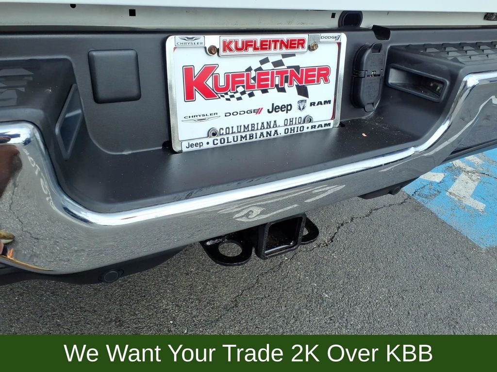 115V Auxiliary Front Power Outlet, 17 x 7.5 Steel Styled Wheels, 2 Red Vinyl Flags, 2 Way Rear Headrest Seat, 220 Amp Alternator, 3 Reflecting Triangles, 3.73 Axle Ratio, 4 Way Front Headrests, 4-Wheel Disc Brakes, 40/20/40 Split Bench Seat, 400W Inverter, 4G LTE Wi-Fi Hot Spot, 6 Speakers, 8.4 Touchscreen Display, ABS brakes, Active Noise Control System, Air Conditioning, All R1 Low Radios, All Radio Equipped Vehicles, AM/FM radio, Anti-Spin Differential Rear Axle, Apple CarPlay, Black Exterior Mirrors, Bluetooth® Handsfree Phone & Audio, Brake assist, Bright Front Bumper, Bright Rear Bumper, Center Hub, Chrome Appearance Group, Chrome Grille Surround, Clearance Lamps, Cluster 3.5 TFT Color Display, Cold Weather Group, Compass, Connectivity - US/Canada, Dash Pass Thru Wire Circuits, Delay-off headlights, DOT Certified Roadside Safety Kit, DOT Fire Extinguisher, Driver door bin, Dual front impact airbags, Dual front side impact airbags, Electronic Stability Control, Electronically Controlled Throttle, Emergency communication system: SiriusXM Guardian, Engine Block Heater, Exterior 115V AC Outlet, Exterior Mirrors Courtesy Lamps, Exterior Mirrors w/Heating Element, Exterior Mirrors w/Supplemental Signals, For Details, Visit DriveUconnect.com, Front anti-roll bar, Front Center Armrest w/Storage, Front License Plate Bracket, Front reading lights, Fully automatic headlights, Global Telematics Box Module (TBM), Google Android Auto, GPS Antenna Input, Heated door mirrors, Heavy Duty Vinyl 40/20/40 Split Bench Seat, I/P Mounted Auxiliary Switches, Illuminated entry, Integrated Center Stack Radio, Integrated Voice Command w/Bluetooth®, Low tire pressure warning, Manual Adjust 4-Way Driver Seat, Manufacturer's Statement of Origin, Matte Black Mesh Grille w/Chrome, Mirror Running Lights, MOPAR Front & Rear Rubber Floor Mats, MOPAR Winter Front Grille Cover, Occupant sensing airbag, Outside temperature display, Overhead airbag, Overhead console, ParkSense Rear Park Assist System, ParkView Rear Back-Up Camera, Passenger door bin, Passenger vanity mirror, Power Adjust & Heated Black Tow Mirrors, Power door mirrors, Power steering, Power windows, Protection Group, Quick Order Package 2HA Tradesman, Radio data system, Radio: Uconnect 3 w/5 Display, Radio: Uconnect 5 W w/8.4 Display, Rear anti-roll bar, Rear Backup Alarm, Rear Folding Seat, Rear step bumper, Selectable Tire Fill Alert, SiriusXM Radio Service, SiriusXM Satellite Radio, Snow Chief Group, Spare Fuses, Speed control, Storage Tray, Tachometer, Tilt steering wheel, Tip Start, Tow Hooks, Traction control, Trailer Brake Control, Trailer Light Check, Trailer Tow Mirrors, Variably intermittent wipers, Voltmeter, Wheels: 18 x 8.0 Steel Chrome Clad.