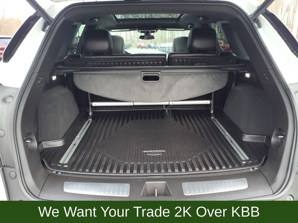 14 Speakers, 155 Amp Alternator, 2-Way Power Driver Lumbar Control Seat Adjuster, 2-Way Power Passenger Lumbar Control Seat Adjuster, 4-Wheel Disc Brakes, 4-Wheel Independent Suspension, ABS brakes, Air Conditioning, All-Weather Integrated Cargo Liner (LPO), Alloy wheels, AM/FM radio: SiriusXM, Audio memory, Auto High-beam Headlights, Auto-dimming door mirrors, Auto-dimming Rear-View mirror, Automatic Dual-Zone Climate Control, Automatic Emergency Braking, Automatic Stop/Start w/Disable, Automatic temperature control, Bodyside moldings, Bose Performance Series 14-Speaker System, Brake assist, Bumpers: body-color, Compass, Delay-off headlights, Driver door bin, Driver vanity mirror, Dual Driver Info Center Display Gauge Cluster, Dual front impact airbags, Dual front side impact airbags, Electronic Stability Control, Emergency communication system: OnStar and Cadillac connected services capable, Floor Liner Package (LPO), Four wheel independent suspension, Front & Rear All-Weather Floor Liners (LPO), Front & Rear Park Assist, Front anti-roll bar, Front Bucket Seats, Front Center Armrest, Front dual zone A/C, Front reading lights, Fully automatic headlights, Garage door transmitter, Genuine wood dashboard insert, Genuine wood door panel insert, HD Rear Vision Camera, Heated door mirrors, Heated Driver & Front Passenger Seats, Heated front seats, Heated steering wheel, Illuminated entry, Inside Rear-View Auto-Dimming Mirror, Knee airbag, Leather Seating Surfaces w/Mini Perforated Inserts, Leather steering wheel, Low tire pressure warning, Memory seat, Navigation System, Occupant sensing airbag, Outside temperature display, Overhead airbag, Overhead console, Panic alarm, Passenger door bin, Passenger vanity mirror, Power door mirrors, Power driver seat, Power Liftgate, Power moonroof: UltraView, Power passenger seat, Power steering, Power windows, Premium Luxury Package 1SD, Puddle Lamps w/Cadillac Crest (LPO), Radio data system, Radio: Cadillac User Experience w/Embedded Nav, Rain sensing wipers, Rear anti-roll bar, Rear reading lights, Rear seat center armrest, Rear window defroster, Rear window wiper, Remote keyless entry, Security system, SiriusXM w/360L, Speed control, Speed-sensing steering, Split folding rear seat, Spoiler, Steering wheel memory, Steering wheel mounted audio controls, Tachometer, Teen Driver, Telescoping steering wheel, Tilt steering wheel, Traction control, Trip computer, Turn signal indicator mirrors, Variably intermittent wipers, Voltmeter, Wheels: 18 6-Split Spoke Alloy, Wireless Apple CarPlay/Wireless Android Auto.