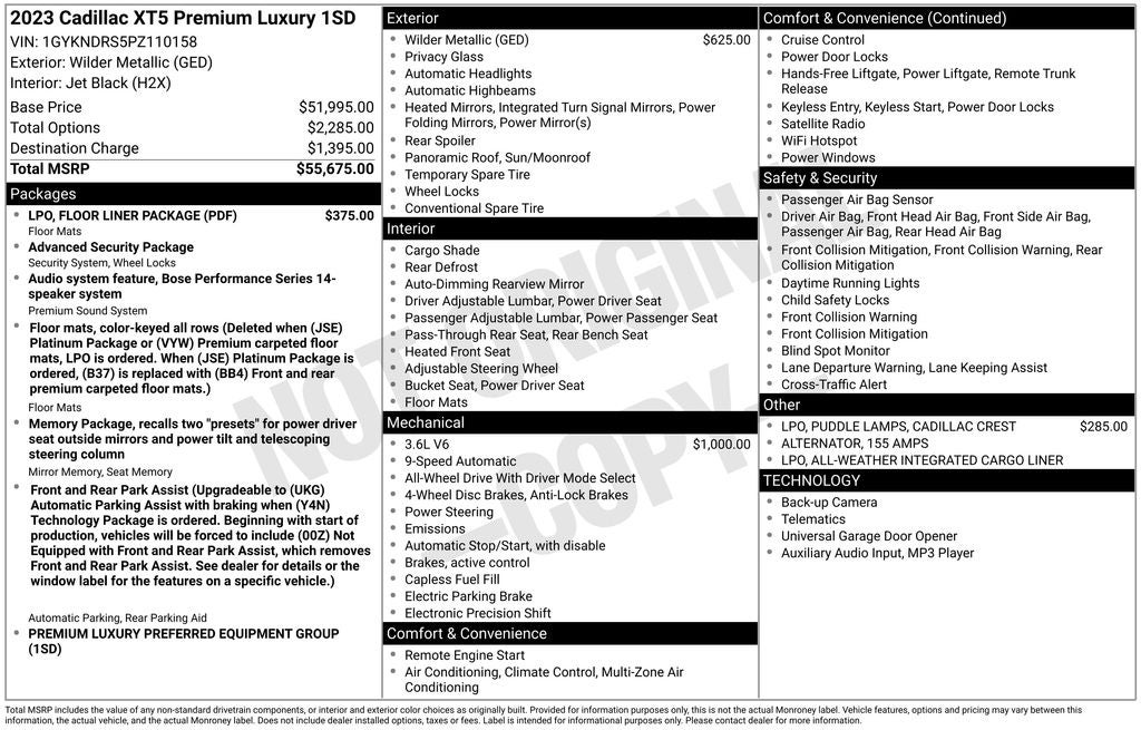 2023 Wilder Metallic Cadillac XT5 Premium Luxury AWD 9-Speed Automatic 3.6L V6 DI VVT