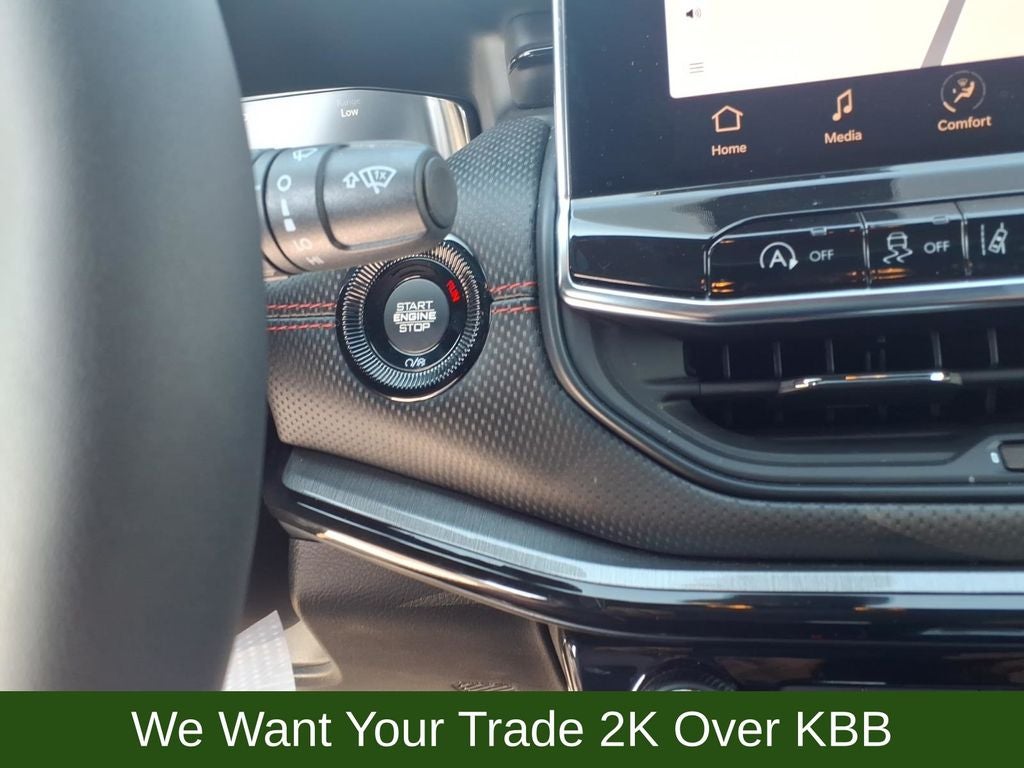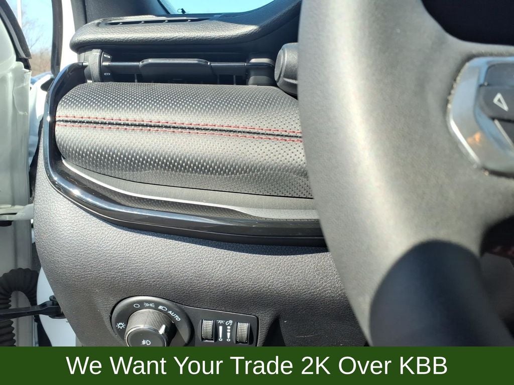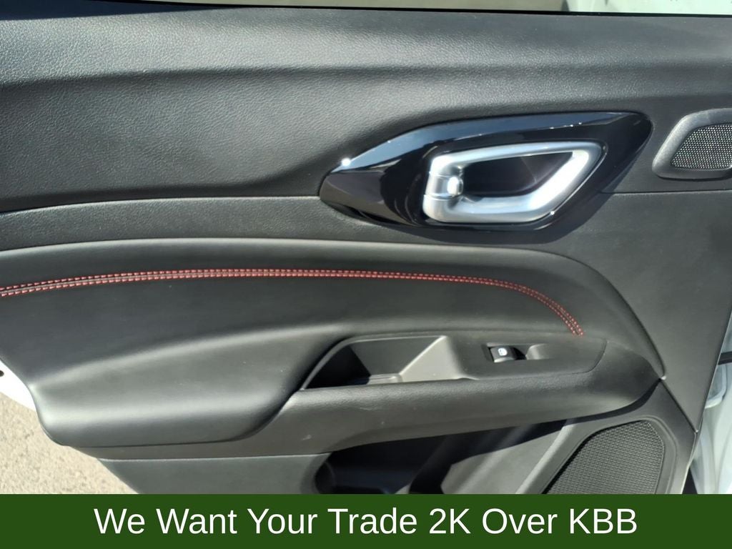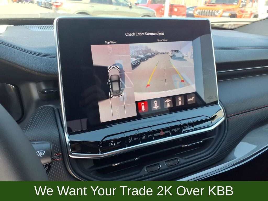 10.1 Touchscreen Display, 2nd Row USB Type A/C Charge Only, 360 Surround View Camera System, 4 Pin Wiring Harness, 4-Wheel Disc Brakes, 4.398 Final Drive Ratio, 4G LTE Wi-Fi Hot Spot, 6 Speakers, ABS brakes, Air Conditioning, Alexa Built-In, Alloy wheels, AM/FM radio: SiriusXM, Auto High-beam Headlights, Auto-dimming Rear-View mirror, Automatic temperature control, Brake assist, Bumpers: body-color, Class III Receiver Hitch, Cluster 10.25 TFT Color Display, Compass, Connected Travel & Traffic Services, Delay-off headlights, Disassociated Touchscreen Display, Driver Assist Group I, Driver door bin, Driver Seat Memory, Driver vanity mirror, Dual front impact airbags, Dual front side impact airbags, Electronic Stability Control, Foot Activated Open 'N Go Liftgate, For Details, Visit DriveUconnect.com, Four wheel independent suspension, Front anti-roll bar, Front Bucket Seats, Front Center Armrest w/Storage, Front dual zone A/C, Front fog lights, Front License Plate Bracket, Front reading lights, Fully automatic headlights, Global Telematics Box Module (TBM), GPS Navigation, HD Radio, Heated door mirrors, Heated Front Seats, Heated Steering Wheel, Highway Assist System, Illuminated entry, Integrated Voice Command w/Bluetooth®, Knee airbag, Leather Shift Knob, LED Low/Highbeam Projector Headlamps, Low tire pressure warning, Occupant sensing airbag, Outside temperature display, Overhead airbag, Overhead console, P&P Park & Unpark Assist System, Panic alarm, ParkSense Fr/Rr Park Assist System, ParkView Rear Back-Up Camera, Passenger door bin, Passenger vanity mirror, Power 2-Way Driver Lumbar Adjust, Power 2-Way Passenger Lumbar Adjust, Power 8-Way Adjust Front Passenger Seat, Power Adjust 8-Way Driver Seat, Power door mirrors, Power Front/Fixed Rear Full Sunroof, Power Liftgate, Power steering, Power windows, Premium Alpine Speaker System, Premium Cloth/Leather Trim Bucket Seats, Premium Leather Trimmed Bucket Seats, Premium LED Fog Lamps, Premium Taillamps, Quick Order Package 29E, Radio: Uconnect 5 Nav w/10.1 Display, Radio: Uconnect 5 w/10.1 Display, Rain sensing wipers, Rear anti-roll bar, Rear seat center armrest, Rear window defroster, Rear window wiper, Remote keyless entry, Remote Start System, Reversible Carpet/Vinyl Cargo Mat, Security system, SiriusXM Guardian - Included Trial (B), SiriusXM Radio Service, SiriusXM w/360L, Speed control, Split folding rear seat, Spoiler, Steering wheel mounted audio controls, Sun and Sound Group, Tachometer, Telescoping steering wheel, Tilt steering wheel, Traction control, Traffic Sign Recognition, Trailer Tow Group, Trailhawk Elite Group, Trip computer, Turn signal indicator mirrors, Universal Garage Door Opener, Variably intermittent wipers, Ventilated Front Seats, Wheels: 17 x 6.5 Painted Black Aluminum, Windshield Wiper De-Icer, Wireless Charging Pad.