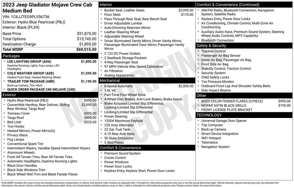 2023 Hydro Blue Pearlcoat Jeep Gladiator Mojave 4WD 8-Speed Automatic 3.6L V6 24V VVT