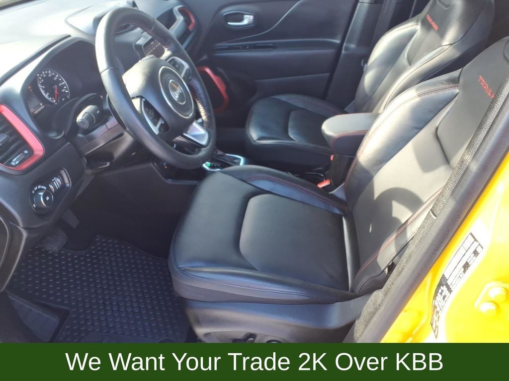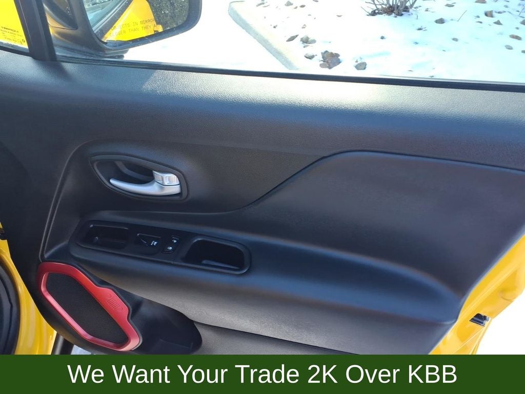 Elevate your driving experience with the premium features that set the Renegade Trailhawk apart. Enjoy the convenience of a Navigation System, the comfort of Heated Front Seats and a Heated Steering Wheel, and the advanced technology of Apple CarPlay/Android Auto. The Trailhawk Elite Group further enhances your journey with a Power Adjust 8-Way Driver Seat, Power 2-Way Driver Lumbar Adjust, and Leather Wrapped Steering Wheel.