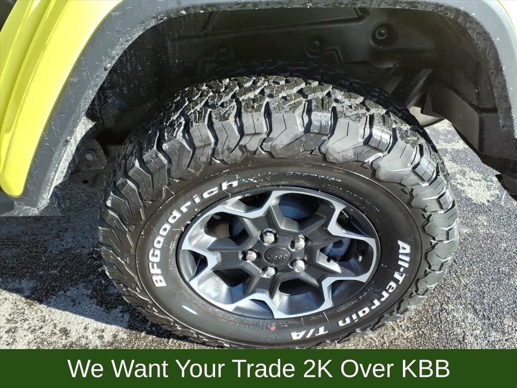 4-Wheel Disc Brakes, 4.10 Rear Axle Ratio, 9 Speakers, ABS brakes, Adaptive Cruise Control w/Stop, Advanced Brake Assist, Advanced Safety Group, Air Conditioning, Alloy wheels, AM/FM radio: SiriusXM, Apple CarPlay/Android Auto, Auto High Beam Headlamp Control, Auto-dimming Rear-View mirror, Automatic temperature control, Blind Spot & Cross Path Detection, Body Color 3-Piece Hard Top, Brake assist, Cold Weather Group, Compass, Delay-off headlights, Driver door bin, Driver vanity mirror, Dual front impact airbags, Dual front side impact airbags, Electronic Stability Control, Emergency communication system: SiriusXM Guardian, Freedom Panel Storage Bag, Front anti-roll bar, Front Bucket Seats, Front Center Armrest w/Storage, Front dual zone A/C, Front fog lights, Front License Plate Bracket, Front reading lights, Full Speed Forward Collision Warning Plus, Fully automatic headlights, Garage door transmitter, Heated door mirrors, Heated Front Seats, Heated Steering Wheel, Illuminated entry, Integrated roll-over protection, Low tire pressure warning, MOPAR Doors Off Mirror Kit, MOPAR Hardtop Headliner, Navigation System, Occupant sensing airbag, Outside temperature display, Panic alarm, ParkSense Rear Park Assist System, ParkView Rear Back-Up Camera, Passenger door bin, Passenger vanity mirror, Performance Suspension, Power door mirrors, Power steering, Power windows, Premium Cloth Low-Back Bucket Seats, Quick Order Package 29V Rubicon, Radio data system, Radio: Uconnect 4C Nav w/8.4 Display, Rear anti-roll bar, Rear reading lights, Rear Window Defroster, Rear Window Wiper/Washer, Remote keyless entry, Remote Start System, Safety Group, Security system, Speed control, Split folding rear seat, Steel Bumper Group, Steel Front Bumper, Steel Rear Bumper, Steering wheel mounted audio controls, Tachometer, Telescoping steering wheel, Tilt steering wheel, Traction control, Trip computer, Variably intermittent wipers, Voltmeter, Wheels: 17 x 7.5 Machined w/Black Pockets.