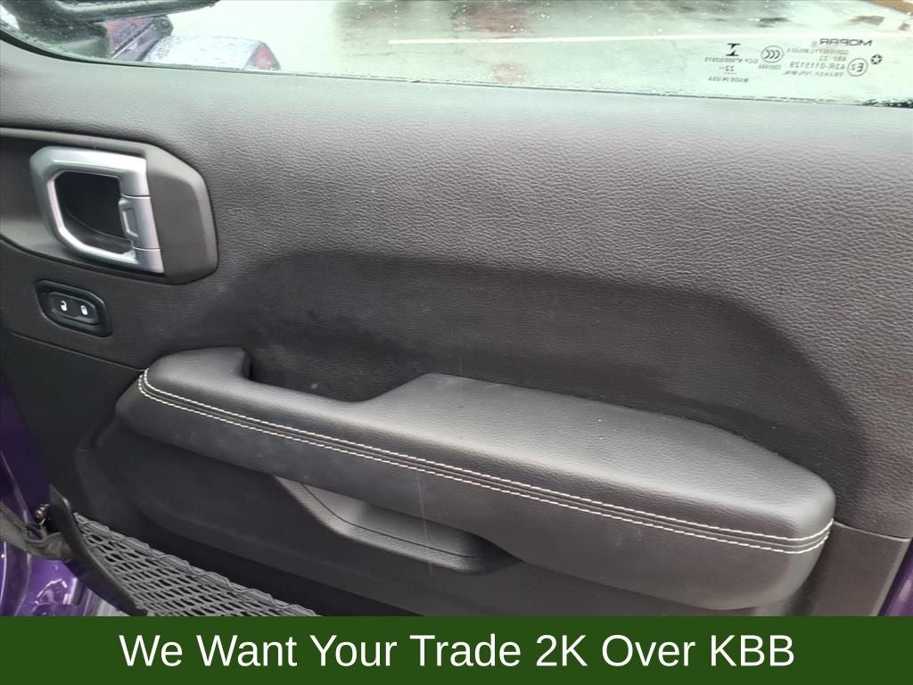 3.73 Rear Axle Ratio, 4-Wheel Disc Brakes, 700 Amp Maintenance Free Battery, 9 Speakers, ABS brakes, Air Conditioning, Alloy wheels, AM/FM radio: SiriusXM, Apple CarPlay/Android Auto, Auto-dimming Rear-View mirror, Automatic temperature control, Auxiliary Switches, Black 3-Piece Hard Top, Brake assist, Cold Weather Group, Compass, Delay-off headlights, Driver door bin, Driver vanity mirror, Dual front impact airbags, Dual front side impact airbags, Electronic Stability Control, Emergency communication system: SiriusXM Guardian, Freedom Panel Storage Bag, Front anti-roll bar, Front Bucket Seats, Front Center Armrest w/Storage, Front dual zone A/C, Front fog lights, Front License Plate Bracket, Front reading lights, Fully automatic headlights, Garage door transmitter, Heated door mirrors, Heated Front Seats, Heated Steering Wheel, Illuminated entry, Integrated roll-over protection, Leather Shift Knob, Low tire pressure warning, MOPAR All-Weather Floor Mats, MOPAR Cargo Tub Liner, MOPAR Plastic Door Sill Guards, Navigation System, Occupant sensing airbag, Outside temperature display, Panic alarm, ParkView Rear Back-Up Camera, Passenger door bin, Passenger vanity mirror, Power door mirrors, Power steering, Power windows, Premium McKinley Trimmed Seats, Quick Order Package 29P Sahara, Radio data system, Radio: Uconnect 4C Nav w/8.4 Display, Rear anti-roll bar, Rear reading lights, Rear seat center armrest, Rear Window Defroster, Rear Window Wiper/Washer, Remote keyless entry, Security system, Side Steps, Speed control, Split folding rear seat, Sport Suspension, Steering wheel mounted audio controls, Tachometer, Telescoping steering wheel, Tilt steering wheel, Traction control, Trailer Tow & Aux Switch Group, Trip computer, Variably intermittent wipers, Voltmeter, Wheels: 20 x 8 Fully Painted Aluminum.