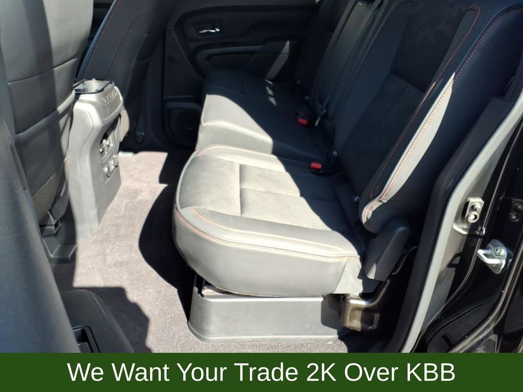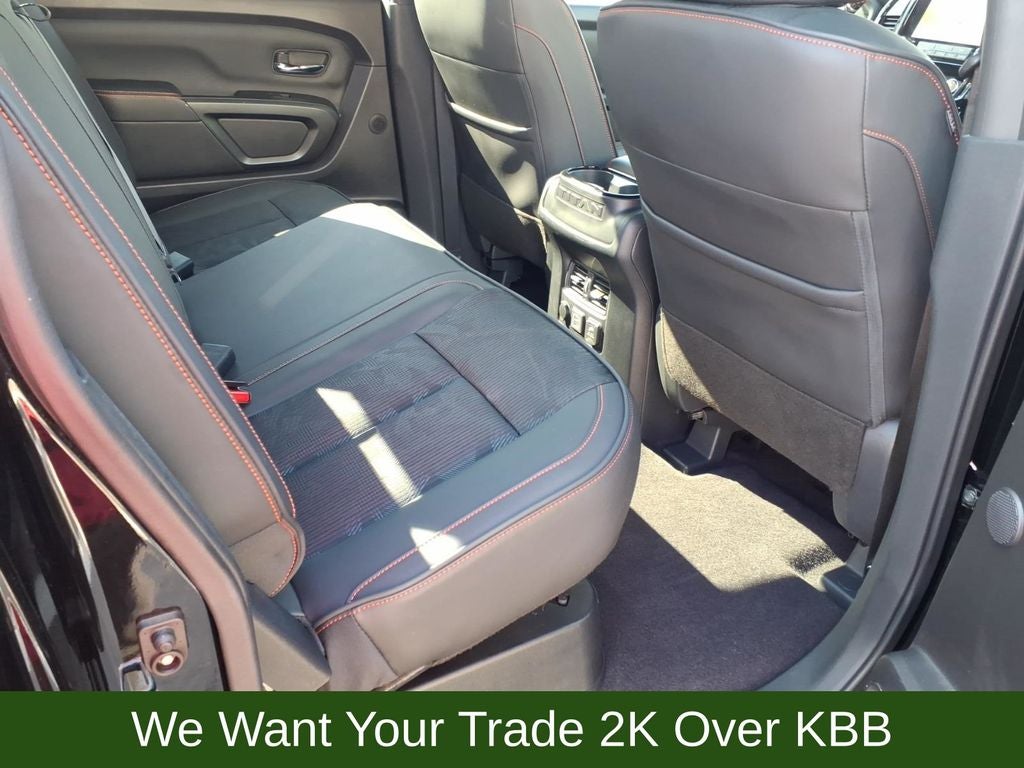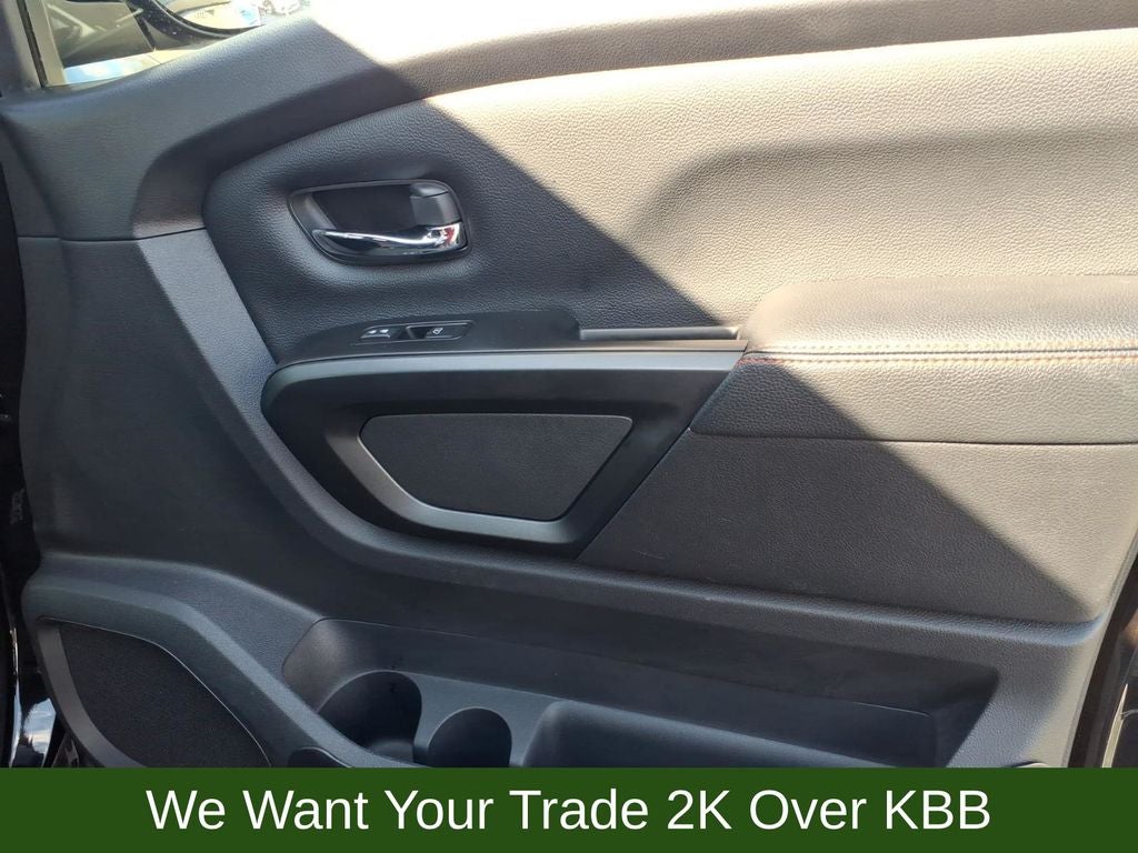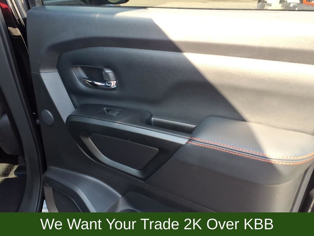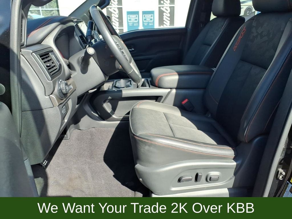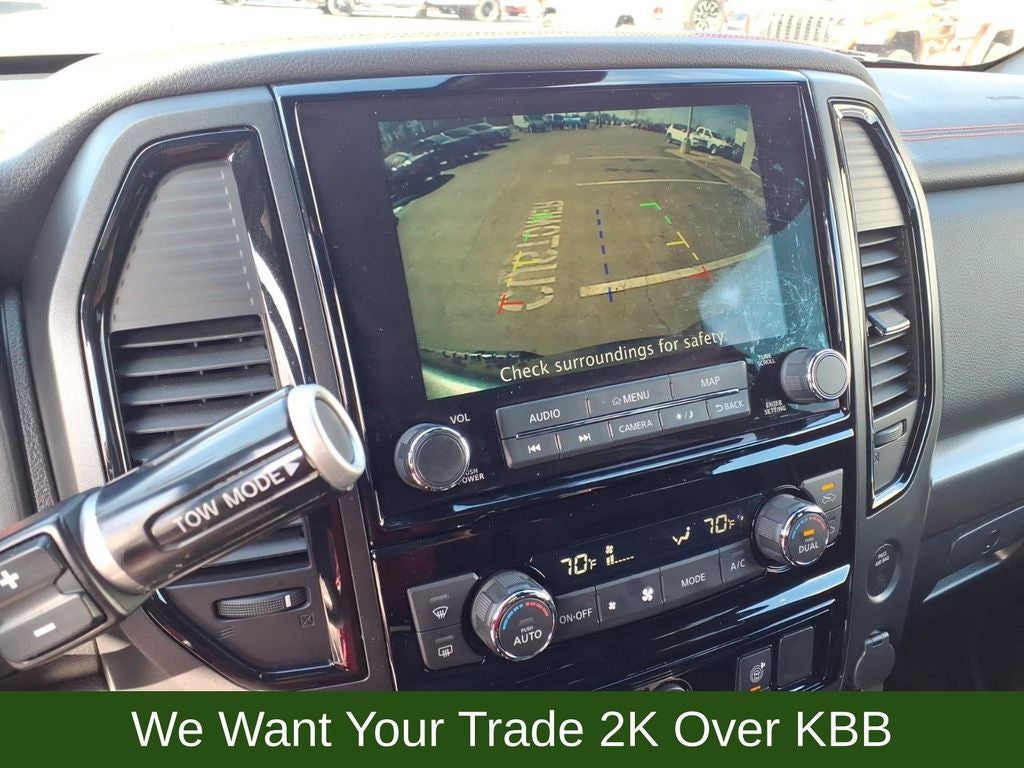 3.69 Axle Ratio, 4-Wheel Disc Brakes, 6 Speakers, ABS brakes, Air Conditioning, Alloy wheels, AM/FM radio: SiriusXM, Auto High-beam Headlights, Auto-dimming Rear-View mirror, Auto-leveling suspension, Automatic temperature control, Bed Assist Grip, Blind Spot Warning, Brake assist, Cloth Seat Trim w/Vinyl Bolsters, Compass, Delay-off headlights, Driver door bin, Driver vanity mirror, Dual front impact airbags, Dual front side impact airbags, Electronic Stability Control, Emergency communication system: NissanConnect Services, Fender Premium Audio System w/12 Speakers, Front anti-roll bar, Front Bucket Seats, Front Captain's Seats, Front Center Armrest, Front dual zone A/C, Front fog lights, Front reading lights, Front wheel independent suspension, Fully automatic headlights, Garage door transmitter: HomeLink, Heated door mirrors, Illuminated entry, Knee airbag, Leather steering wheel, Low tire pressure warning, Navigation system: NissanConnect Navigation, Occupant sensing airbag, Outside temperature display, Overhead airbag, Overhead console, Panic alarm, Passenger door bin, Passenger vanity mirror, Power door mirrors, Power driver seat, Power steering, Power windows, PRO-4X Badged Floor Mats, PRO-4X Illuminated Kick Plate, PRO-4X Mud Flaps, PRO-4X Rugged Step Boards, PRO-4X Utility Package, Radio data system, Radio: NissanConnect w/Navigation, Rain sensing wipers, Rear anti-roll bar, Rear Bumper Step w/Electronic Tailgate Lock, Rear Parking Sensors, Rear reading lights, Rear seat center armrest, Rear step bumper, Rear Underseat Storage, Rear window defroster, Remote keyless entry, Security system, Speed control, Speed-sensing steering, Speed-Sensitive Wipers, Split folding rear seat, Steering wheel mounted audio controls, Tachometer, Telescoping steering wheel, Tilt steering wheel, Traction control, Trip computer, Variably intermittent wipers, Voltmeter, Wheels: 18 x 8 Painted Dark Finish Alloy.