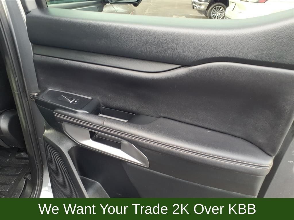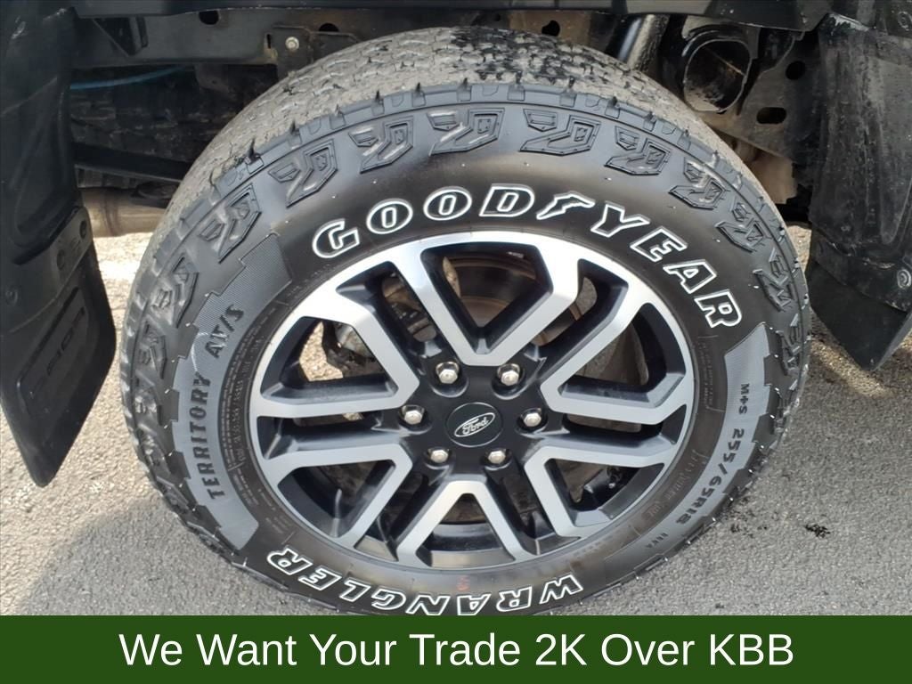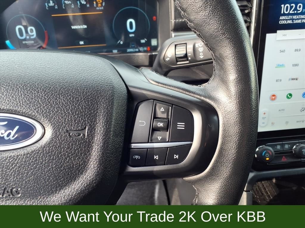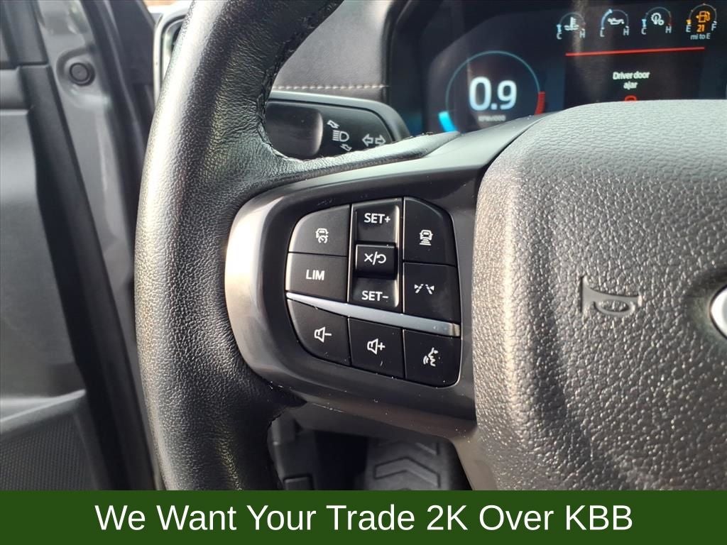 10 Speakers, 4-Wheel Disc Brakes, ABS brakes, Advanced Towing Package, Air Conditioning, Alloy wheels, AM/FM radio: SiriusXM, Auto High-beam Headlights, Auto-dimming Rear-View mirror, Automatic temperature control, Black Running Boards, Brake assist, Class IV Trailer Hitch Receiver, Compass, Delay-off headlights, Driver door bin, Driver vanity mirror, Dual front impact airbags, Dual front side impact airbags, Electronic Stability Control, Emergency communication system: SYNC 4 911 Assist, Equipment Group 500A Standard, Exterior Parking Camera Rear, Front anti-roll bar, Front Bucket Seats, Front Center Armrest, Front dual zone A/C, Front fog lights, Front reading lights, Front wheel independent suspension, Fully automatic headlights, FX4 Off-Road Box Decal, FX4 Off-Road Package, FX4 Selectable Drive Modes, Garage door transmitter, Gray Painted Center Bar & Grille Surround, Gray Painted Front Fascia & Rear Bumper, Gray Painted Wheel Lip Molding, Heated door mirrors, Heated front seats, Heated steering wheel, Illuminated entry, Integrated Box Side Step, Leather Shift Knob, Leather steering wheel, Leather-Trimmed Front Heated Bucket Seats, Low tire pressure warning, Memory seat, Navigation system: Connected Navigation, Occupant sensing airbag, Off-Road Screen in Center Stack, Off-Road Tuned Shocks, Outside temperature display, Overhead airbag, Overhead console, Panic alarm, Passenger door bin, Passenger vanity mirror, Power door mirrors, Power driver seat, Power passenger seat, Power steering, Power windows, Pro Trailer Backup Assist, Radio: B&O Sound System by Bang & Olufsen, Rain sensing wipers, Rear reading lights, Rear seat center armrest, Rear step bumper, Rear window defroster, Remote keyless entry, Reverse Park Aid w/Trailer Guidance, Security system, SiriusXM Satellite Radio, Speed control, Speed-sensing steering, Sport Appearance Package, Sport Box Decal, Steering wheel mounted audio controls, SYNC 4A w/Connected Built-In Navigation, Telescoping steering wheel, Tilt steering wheel, Traction control, Trailer Brake Controller, Trailer Tow Package, Trip computer, Turn signal indicator mirrors, Variably intermittent wipers, Voltmeter, Wheels: 18 Machined Aluminum w/Dark Pockets.