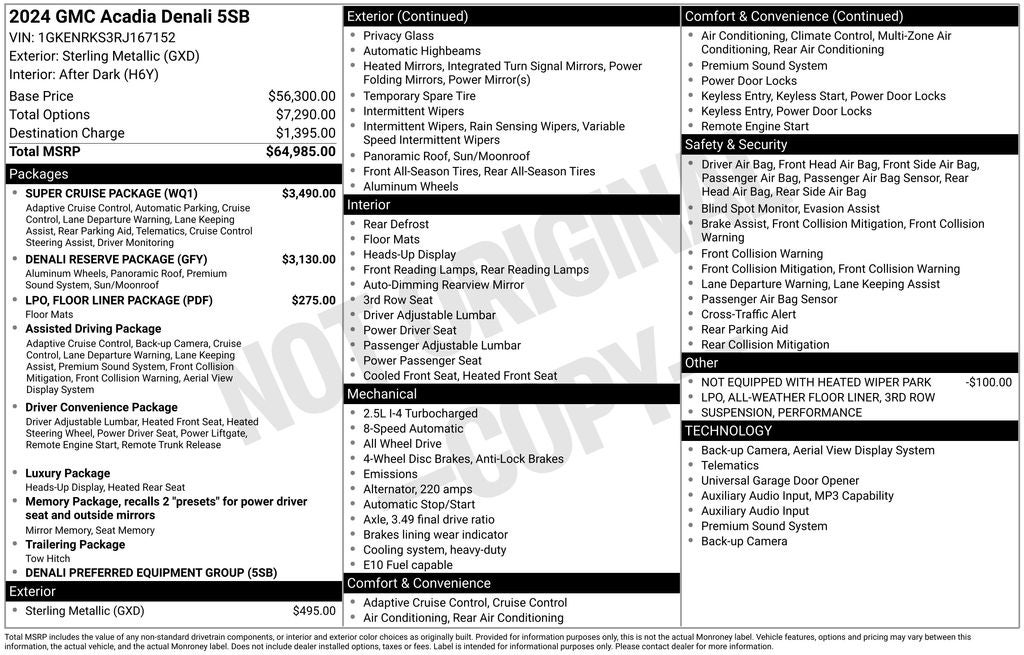 2024 Sterling Metallic GMC Acadia Denali AWD 8-Speed Automatic 2.5L DOHC
