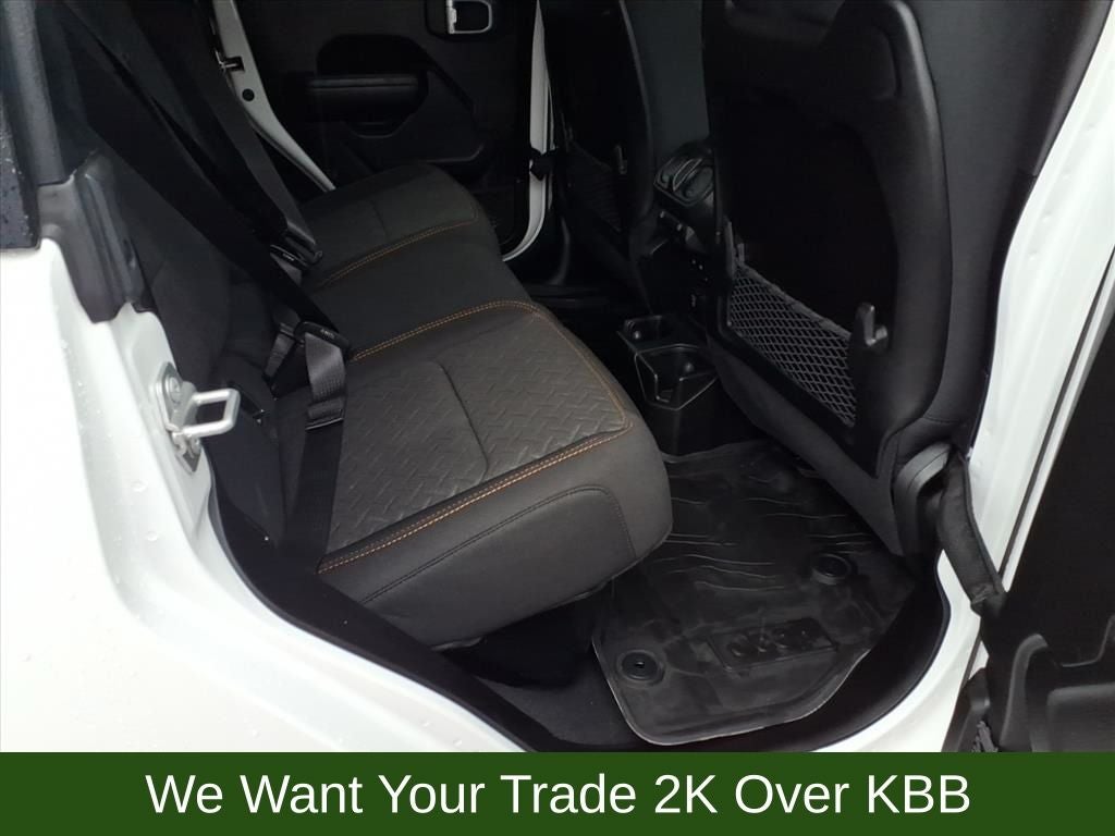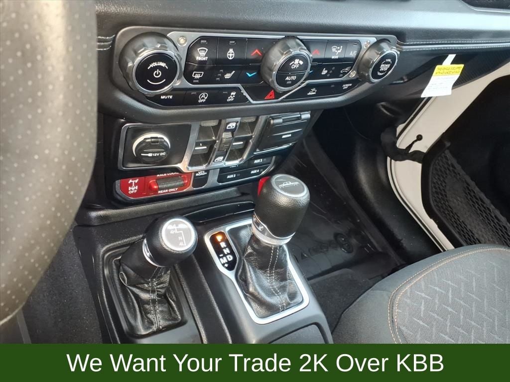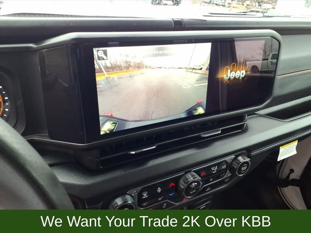 12.3 Touchscreen Display, 4-Wheel Disc Brakes, 4.10 Rear Axle Ratio, 4G LTE Wi-Fi Hot Spot, 8 Speakers, 97 MPH Vehicle Max Speed Calibration, ABS brakes, Air Conditioning, Alexa Built-In, Alloy wheels, AM/FM radio: SiriusXM with 360L, Apple CarPlay, Apple CarPlay/Android Auto, Automatic temperature control, Black 3-Piece Hard Top, Brake assist, Compass, Connectivity - US/Canada, Convenience Group, Delay-off headlights, Driver door bin, Driver vanity mirror, Dual front impact airbags, Dual front side impact airbags, Electronic Stability Control, Emergency communication system: Jeep Connect, Emergency/Assistance Call, Freedom Panel Storage Bag, Front anti-roll bar, Front Bucket Seats, Front Center Armrest w/Storage, Front dual zone A/C, Front fog lights, Front License Plate Bracket, Front reading lights, Fully automatic headlights, Google Android Auto, Heated door mirrors, Heated Front Seats, Heated Steering Wheel, Heavy Duty Suspension w/Gas Shocks, Illuminated entry, Integrated Center Stack Radio, Integrated roll-over protection, Leather steering wheel, Low tire pressure warning, MOPAR All-Weather Slush Mats, Occupant sensing airbag, Outside temperature display, Overhead airbag, Panic alarm, Passenger door bin, Passenger vanity mirror, Power door mirrors, Power steering, Power windows, Premium Cloth Seats w/Sport Bolsters, Quick Order Package 24D Mojave, Radio data system, Radio: Uconnect 5 w/12.3 Display, Rear anti-roll bar, Rear reading lights, Rear Sliding Window, Rear Window Defroster, Remote keyless entry, Remote Start System, Security system, SiriusXM Radio Service, SiriusXM w/360L, Speed control, Split folding rear seat, Steering wheel mounted audio controls, Tachometer, Telescoping steering wheel, Tilt steering wheel, Traction control, Trip computer, Universal Garage Door Opener, USB Host Flip, Variably intermittent wipers, Voltmeter, Wheels: 17 x 7.5 Dark Gray Painted.
