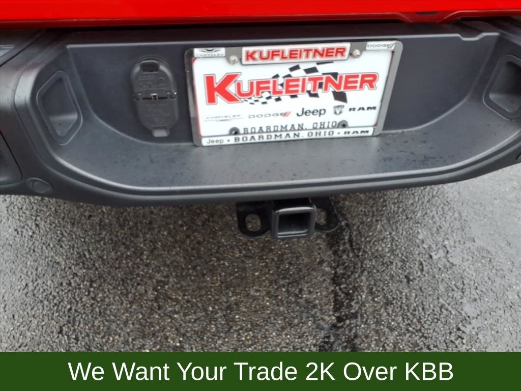 12.3 Touchscreen Display, 4-Wheel Disc Brakes, 4.10 Rear Axle Ratio, 4G LTE Wi-Fi Hot Spot, 8 Speakers, 97 MPH Vehicle Max Speed Calibration, ABS brakes, Air Conditioning, Alexa Built-In, Alloy wheels, AM/FM radio: SiriusXM with 360L, Apple CarPlay, Apple CarPlay/Android Auto, Automatic temperature control, Black 3-Piece Hard Top, Brake assist, Cargo Group w/Trail Rail System, Cigar Lighter, Compass, Connectivity - US/Canada, Delay-off headlights, Driver door bin, Driver vanity mirror, Dual front impact airbags, Dual front side impact airbags, Dual Top Group, Electronic Stability Control, Emergency communication system: Jeep Connect, Exterior 115V AC Outlet, Freedom Panel Storage Bag, Front anti-roll bar, Front Bucket Seats, Front Center Armrest w/Storage, Front dual zone A/C, Front fog lights, Front License Plate Bracket, Front reading lights, Fully automatic headlights, Google Android Auto, Heated door mirrors, Heavy Duty Suspension w/Gas Shocks, Illuminated entry, Integrated Center Stack Radio, Integrated roll-over protection, Jeep Trail Rated Kit, Leather steering wheel, Lockable Rear Underseat Storage, Low tire pressure warning, Manufacturer's Statement of Origin (DISC), MOPAR All-Weather Slush Mats, Mopar Bright Door Sills, MOPAR Spray In Bedliner, MOPAR Windshield Tie Down Strap, Occupant sensing airbag, Outside temperature display, Overhead airbag, Panic alarm, Passenger door bin, Passenger vanity mirror, Power door mirrors, Power steering, Power windows, Premium Black Sunrider Soft Top, Premium Cloth Seats w/Sport Bolsters, Quick Order Package 24A Mojave X, Radio data system, Radio: Uconnect 5 w/12.3 Display, Rear anti-roll bar, Rear reading lights, Rear Sliding Window, Rear Window Defroster, Remote keyless entry, Removable Ash Tray, Roll-Up Tonneau Cover, Security system, SiriusXM Radio Service, SiriusXM w/360L, Smoker's Group, Speed control, Split folding rear seat, Steering wheel mounted audio controls, Tachometer, Telescoping steering wheel, Tilt steering wheel, Traction control, Trail Rails, Trip computer, USB Host Flip, Variably intermittent wipers, Voltmeter, Wheels: 17 x 7.5 Dark Gray Painted, Wheels: 17 x 7.5 Machined/Painted Dark Gray.