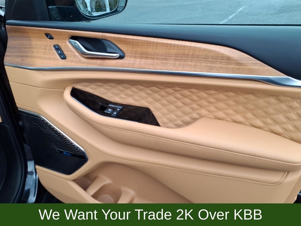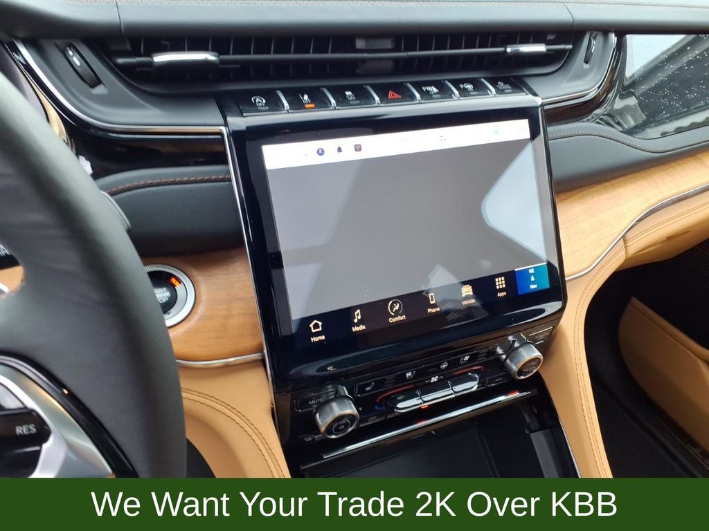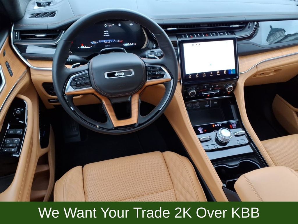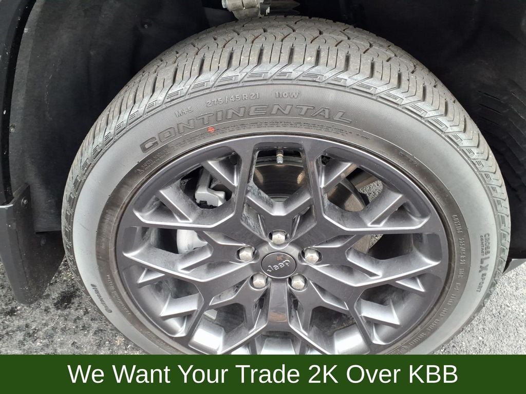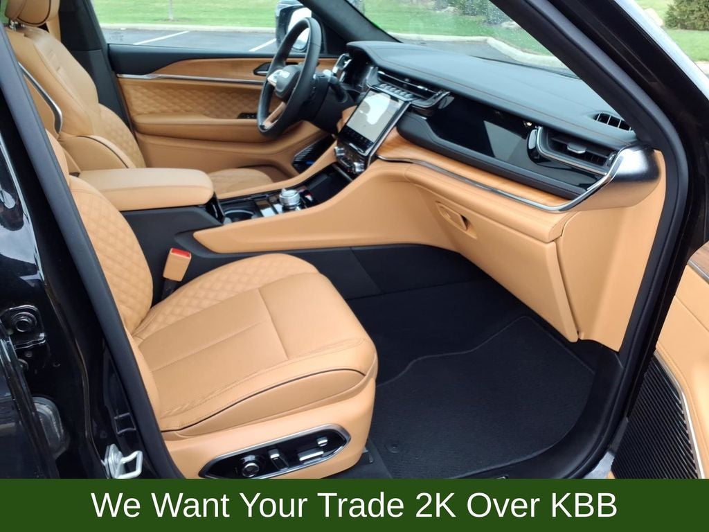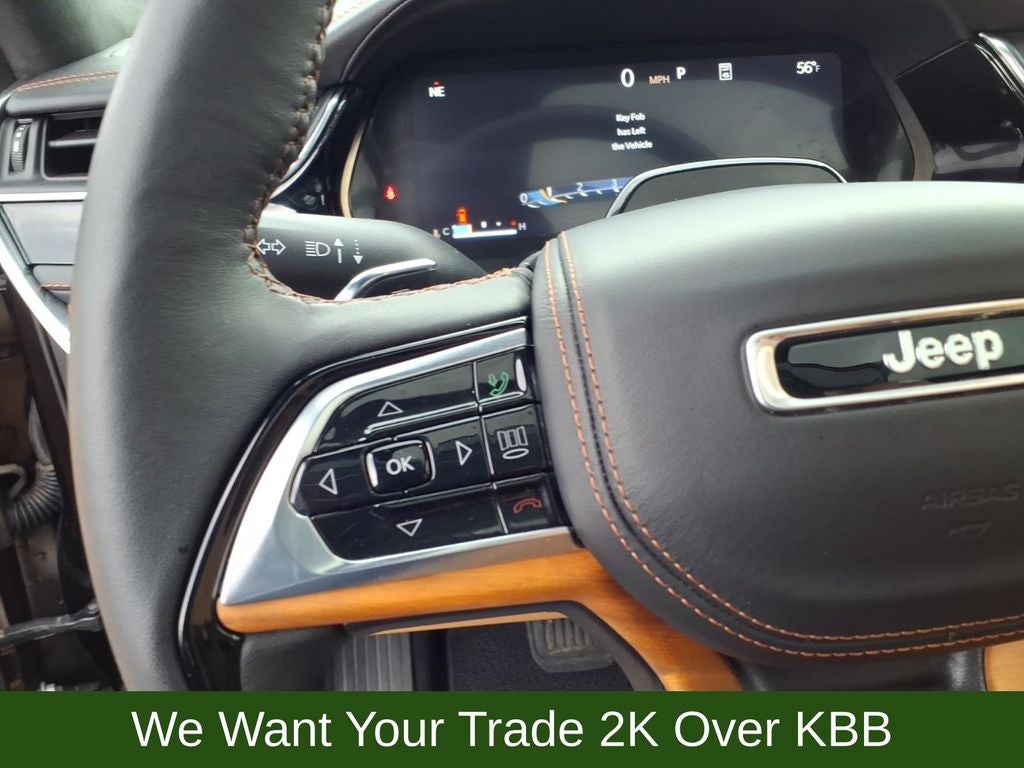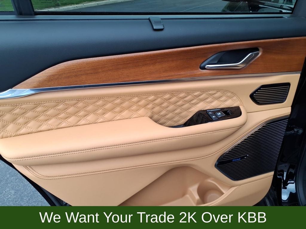 10 Speakers, 19 Speakers High Performance Audio, 2nd Row 60/40 Bench w/Manual Tip/Slide, 2nd Row Manual Window Shades, 2nd Row Seat Center Armrest/Cupholders, 3 Rear Seat Head Restraints, 3.45 Rear Axle Ratio, 3rd row seats: split-bench, 4-Wheel Disc Brakes, 7-Passenger Seating, 950 Watt Amplifier, ABS brakes, Active Noise Control System, Adaptive suspension, Advanced Protech Group IV, Air Conditioning, Alloy wheels, AM/FM radio: SiriusXM with 360L, Amazon Fire TV Built-In, Anti-whiplash front head restraints, Audio memory, Auto High-beam Headlights, Auto-dimming door mirrors, Auto-dimming Rear-View mirror, Auto-leveling suspension, Automatic temperature control, Aux Battery, Brake assist, Bumpers: body-color, Center Rear 3-Point Seat Belt, Compass, Delay-off headlights, Deluxe Headliner, Driver door bin, Driver vanity mirror, Dual front impact airbags, Dual front side impact airbags, Electronic Stability Control, Emergency communication system, Four wheel independent suspension, Front anti-roll bar, Front Bucket Seats, Front Center Armrest w/Storage, Front dual zone A/C, Front fog lights, Front License Plate Bracket, Front Passenger Interactive Display, Front reading lights, Fully automatic headlights, Garage door transmitter, Genuine wood dashboard insert, Genuine wood door panel insert, Gloss Black Exterior Accents, Hands-Free Active Driving Assist System, Heads-Up Display, Heated door mirrors, Heated front seats, Heated rear seats, Heated steering wheel, High Altitude Package, Illuminated entry, Interior Rear Facing Camera, Knee airbag, Leather steering wheel, Low tire pressure warning, Luxury Tech Group V, Memory seat, MOPAR Black Side Steps, MOPAR Finishing Package, MOPAR Front Splash Guards, MOPAR Paint Protection Film, MOPAR Rear Splash Guards w/Jeep Logo, Nappa Leather Seats, Navigation System, Neutral Gray Exterior Accents, Night Vision/Pedestrian-Animal Detection, Normal Duty Suspension, Occupant sensing airbag, Outside temperature display, Overhead airbag, Overhead console, Painted Door Cladding, Palermo Leather Door Trim, Palermo Leather Seats, Panic alarm, Passenger door bin, Passenger vanity mirror, Power door mirrors, Power driver seat, Power Fold Seatbacks, Power Liftgate, Power moonroof, Power passenger seat, Power steering, Power windows, Quick Order Package 23U Summit Reserve, Radio data system, Radio: Uconnect 5 Nav w/10.1 Display, Rain sensing wipers, Rear air conditioning, Rear anti-roll bar, Rear dual zone A/C, Rear reading lights, Rear seat center armrest, Rear Seat Video Group I, Rear window defroster, Rear window wiper, Rearview Autodim Digital Display Mirror, Reclining 3rd row seat, Remote keyless entry, Seatback Video Screens, Security system, Speed control, Speed-Sensitive Wipers, Split folding rear seat, Spoiler, Steering wheel memory, Steering wheel mounted audio controls, Summit Reserve, Summit Reserve Badge, Tachometer, Telescoping steering wheel, Tilt steering wheel, Traction control, Trip computer, Turn signal indicator mirrors, Two Tone Paint Group, Variably intermittent wipers, Ventilated front seats, Ventilated Rear Seats, Video USB Port, Voltmeter, Wheels: 20 x 8.5 Fully Painted Aluminum Silver, Wheels: 21 x 9.0 Machined Face/Painted Aluminum, Wheels: 21 x 9 Black Painted Aluminum, Wireless Charging Pad.