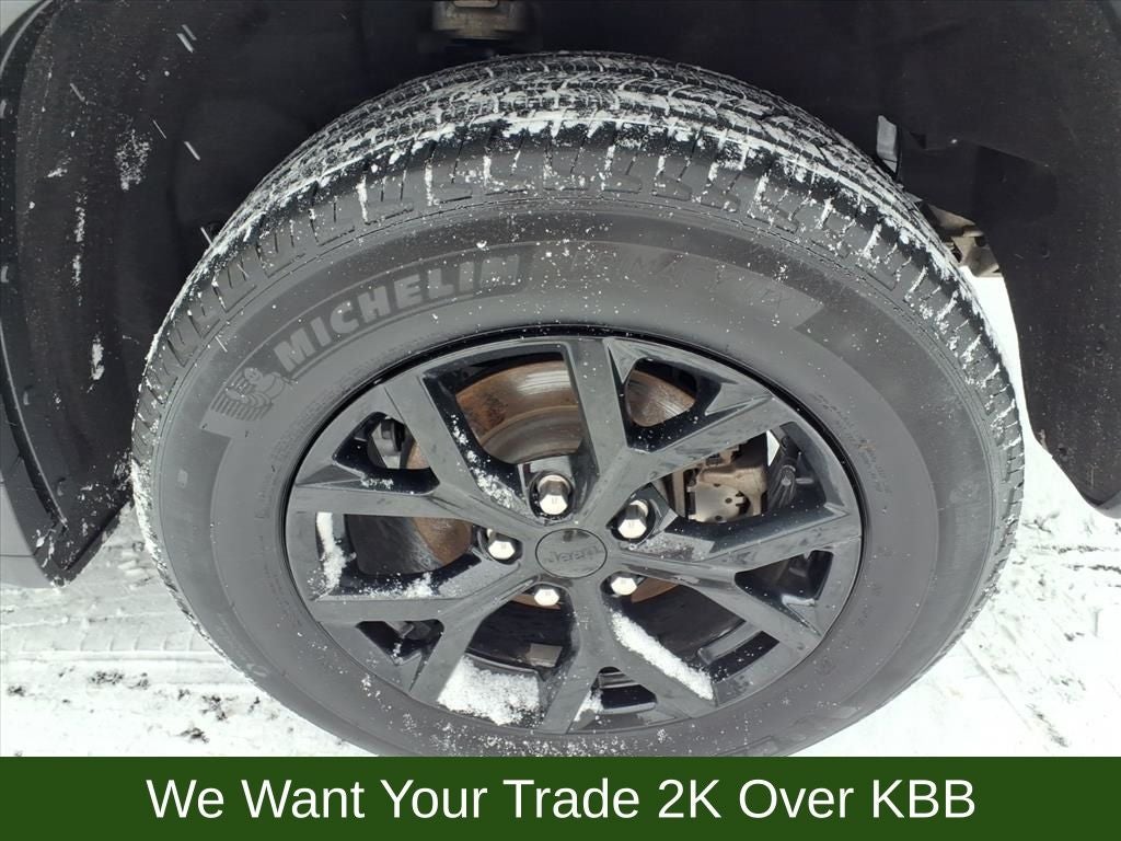 115V Auxiliary Power Outlet, 180 Amp Alternator, 3.45 Rear Axle Ratio, 4-Wheel Disc Brakes, 6 Speakers, 7 & 4-Pin Wiring Harness, ABS brakes, Air Conditioning, Alloy wheels, Altitude X, Anti-whiplash front head restraints, Automatic Headlamp Levelling System, Automatic temperature control, Black Headliner, Brake assist, Bumpers: body-color, Capri Leatherette/Suede Seats, Class IV Receiver Hitch, Cloth Seats, Compass, Delay-off headlights, Delete Laredo Badge, Driver door bin, Driver vanity mirror, Dual front impact airbags, Dual front side impact airbags, Electronic Stability Control, Emergency communication system, Four wheel independent suspension, Front anti-roll bar, Front Bucket Seats, Front Center Armrest w/Storage, Front dual zone A/C, Front reading lights, Fully automatic headlights, Gloss Black Exterior Accents, Heated door mirrors, Heated Front Seats, Heated Steering Wheel, Heavy-Duty Engine Cooling, Illuminated entry, Knee airbag, Low tire pressure warning, Normal Duty Suspension, Occupant sensing airbag, Outside temperature display, Overhead airbag, Overhead console, Panic alarm, ParkView Rear Back-Up Camera, Passenger door bin, Passenger vanity mirror, Power door mirrors, Power driver seat, Power Liftgate, Power steering, Power Sunroof, Power windows, Quick Order Package 23M Altitude X, Radio data system, Radio: Uconnect 5 w/8.4 Display, Rain Sensitive Windshield Wipers, Rear anti-roll bar, Rear Load Levelling Suspension, Rear reading lights, Rear window defroster, Rear window wiper, Remote keyless entry, Remote Start System, Security system, Selectable Tire Fill Alert, Speed control, Speed-Sensitive Wipers, Split folding rear seat, Spoiler, Steering wheel mounted audio controls, Tachometer, Telescoping steering wheel, Tilt steering wheel, Traction control, Trailer Hitch Zoom, Trailer Tow Package, Trip computer, Variably intermittent wipers, Voltmeter, Wheels: 17 x 6.5 Fully Painted Aluminum, Wheels: 18 x 8 Fully Painted Aluminum 1, Wireless Charging Pad.