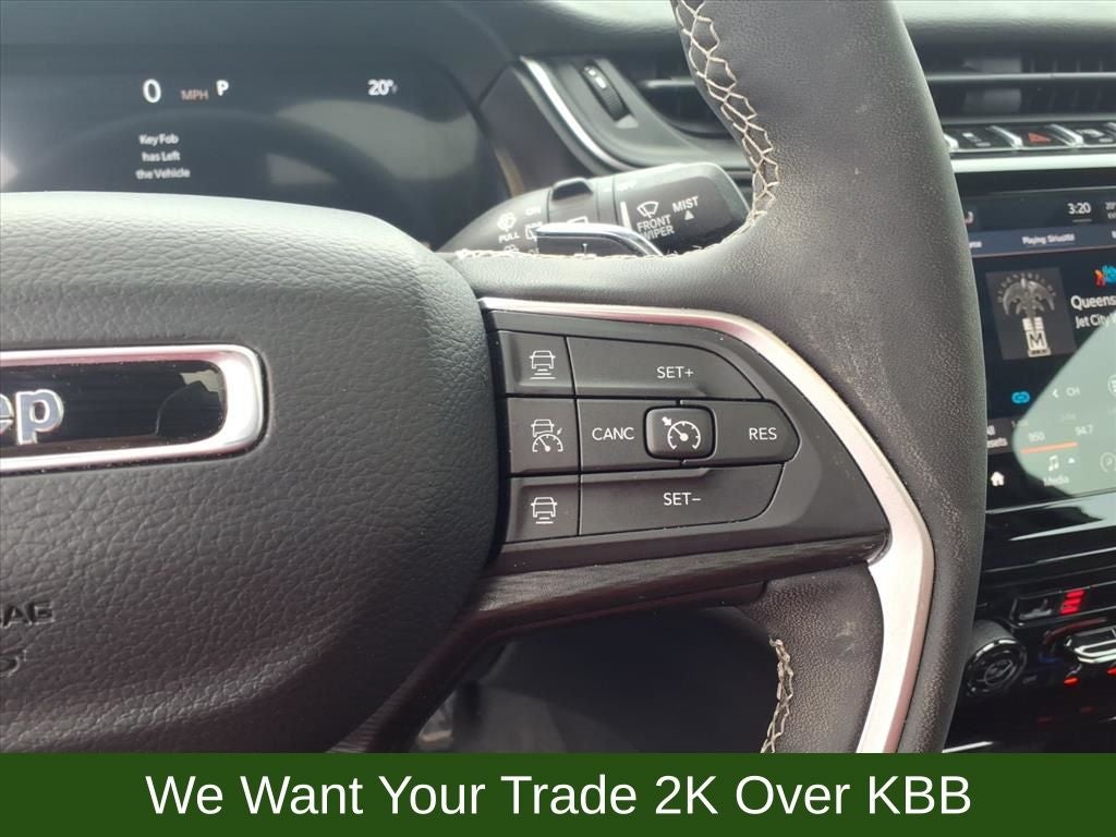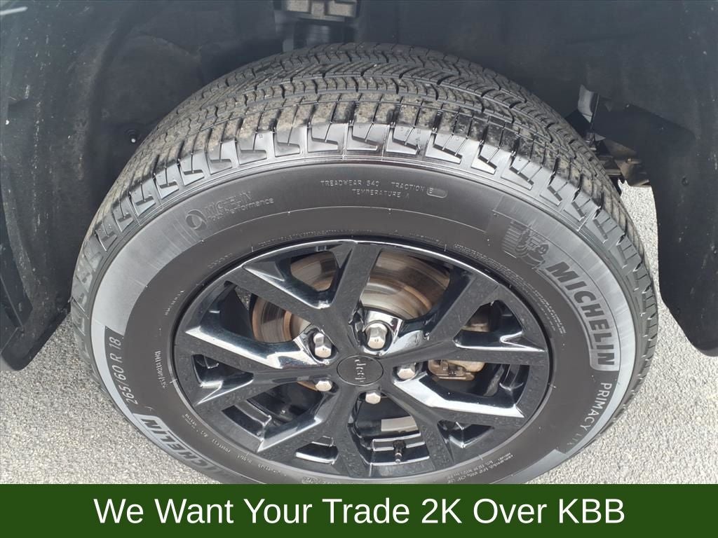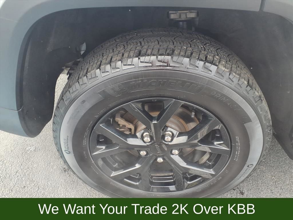 115V Auxiliary Power Outlet, 3.45 Rear Axle Ratio, 4-Wheel Disc Brakes, 6 Speakers, ABS brakes, Air Conditioning, Alloy wheels, Altitude X, Anti-whiplash front head restraints, Automatic temperature control, Black Headliner, Brake assist, Bumpers: body-color, Capri Leatherette/Suede Seats, Cloth Seats, Compass, Delay-off headlights, Delete Laredo Badge, Driver door bin, Driver vanity mirror, Dual front impact airbags, Dual front side impact airbags, Electronic Stability Control, Emergency communication system, Four wheel independent suspension, Front anti-roll bar, Front Bucket Seats, Front Center Armrest w/Storage, Front dual zone A/C, Front reading lights, Fully automatic headlights, Gloss Black Exterior Accents, Heated door mirrors, Heated Front Seats, Heated Steering Wheel, Illuminated entry, Knee airbag, Low tire pressure warning, Normal Duty Suspension, Occupant sensing airbag, Outside temperature display, Overhead airbag, Overhead console, Panic alarm, ParkView Rear Back-Up Camera, Passenger door bin, Passenger vanity mirror, Power door mirrors, Power driver seat, Power Liftgate, Power steering, Power Sunroof, Power windows, Quick Order Package 23M Altitude X, Radio data system, Radio: Uconnect 5 w/8.4 Display, Rain Sensitive Windshield Wipers, Rear anti-roll bar, Rear reading lights, Rear window defroster, Rear window wiper, Remote keyless entry, Remote Start System, Security system, Selectable Tire Fill Alert, Speed control, Speed-Sensitive Wipers, Split folding rear seat, Spoiler, Steering wheel mounted audio controls, Tachometer, Telescoping steering wheel, Tilt steering wheel, Traction control, Trip computer, Variably intermittent wipers, Voltmeter, Wheels: 17 x 6.5 Fully Painted Aluminum, Wheels: 18 x 8 Fully Painted Aluminum 1, Wireless Charging Pad.
