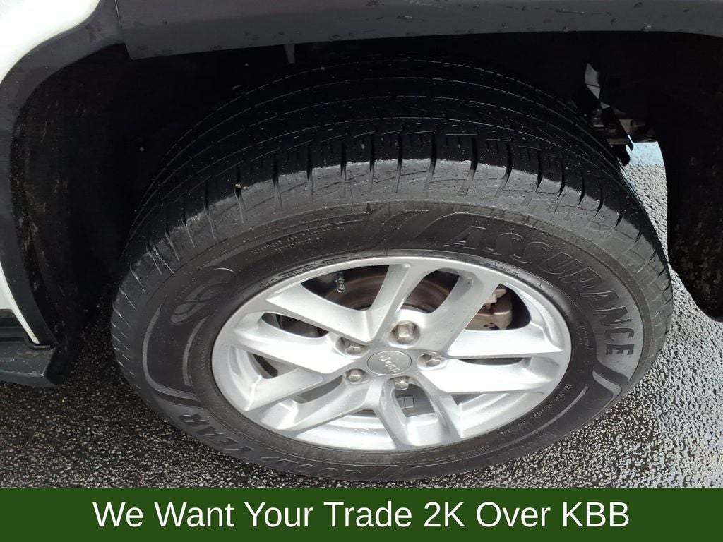 3.45 Rear Axle Ratio, 4-Wheel Disc Brakes, 6 Speakers, ABS brakes, Air Conditioning, Alloy wheels, Anti-whiplash front head restraints, Automatic temperature control, Brake assist, Bumpers: body-color, Cloth Seats, Compass, Delay-off headlights, Driver door bin, Driver vanity mirror, Dual front impact airbags, Dual front side impact airbags, Electronic Stability Control, Emergency communication system, Four wheel independent suspension, Front anti-roll bar, Front Bucket Seats, Front Center Armrest w/Storage, Front dual zone A/C, Front reading lights, Fully automatic headlights, Heated door mirrors, Illuminated entry, Knee airbag, Laredo X, Low tire pressure warning, Normal Duty Suspension, Occupant sensing airbag, Outside temperature display, Overhead airbag, Overhead console, Panic alarm, ParkView Rear Back-Up Camera, Passenger door bin, Passenger vanity mirror, Power door mirrors, Power driver seat, Power steering, Power Sunroof, Power windows, Quick Order Package 23D Laredo X, Radio data system, Radio: Uconnect 5 w/8.4 Display, Rear anti-roll bar, Rear reading lights, Rear window defroster, Rear window wiper, Remote keyless entry, Security system, Speed control, Speed-Sensitive Wipers, Split folding rear seat, Spoiler, Steering wheel mounted audio controls, Tachometer, Telescoping steering wheel, Tilt steering wheel, Traction control, Trip computer, Variably intermittent wipers, Voltmeter, Wheels: 17 x 6.5 Fully Painted Aluminum, Wheels: 18 x 8 Fully Painted Aluminum.