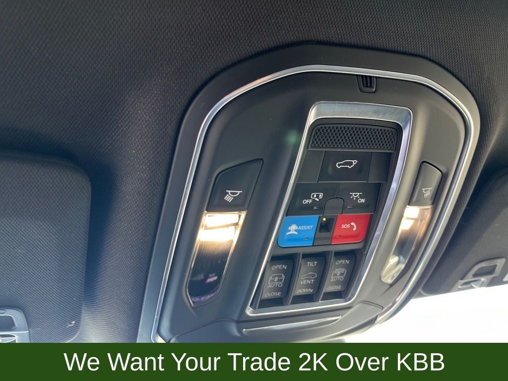 3.45 Rear Axle Ratio, 4-Wheel Disc Brakes, 506 Watt Amplifier, 6 Speakers, 9 Amplified Speakers w/Subwoofer, ABS brakes, Active Noise Control System, Air Conditioning, Alloy wheels, AM/FM radio: SiriusXM with 360L, Anti-whiplash front head restraints, Audio memory, Auto High-beam Headlights, Automatic temperature control, Black Appearance Package, Brake assist, Bumpers: body-color, Capri Leatherette Seats, Compass, Delay-off headlights, Driver door bin, Driver vanity mirror, Dual front impact airbags, Dual front side impact airbags, Dual-Pane Panoramic Sunroof, Electronic Stability Control, Emergency communication system, Four wheel independent suspension, Front anti-roll bar, Front Bucket Seats, Front Center Armrest w/Storage, Front dual zone A/C, Front fog lights, Front reading lights, Fully automatic headlights, Garage door transmitter, Gloss Black Exterior Accents, Heated door mirrors, Heated front seats, Heated rear seats, Heated steering wheel, Illuminated entry, Knee airbag, Low tire pressure warning, Memory seat, Navigation System, Normal Duty Suspension, Occupant sensing airbag, Outside temperature display, Overhead airbag, Overhead console, Panic alarm, ParkView Rear Back-Up Camera, Passenger door bin, Passenger vanity mirror, Power door mirrors, Power driver seat, Power Liftgate, Power passenger seat, Power steering, Power windows, Quick Order Package 22E, Radio data system, Radio: Uconnect 5 Nav w/10.1 Display, Rear anti-roll bar, Rear reading lights, Rear window defroster, Rear window wiper, Remote keyless entry, Security system, Speed control, Speed-Sensitive Wipers, Split folding rear seat, Spoiler, Steering wheel mounted audio controls, Tachometer, Telescoping steering wheel, Tilt steering wheel, Traction control, Trip computer, Turn signal indicator mirrors, Variably intermittent wipers, Voltmeter, Wheels: 18 x 8 Polished/Painted Aluminum, Wheels: 20 x 8.5 Gloss Black Painted Aluminum.