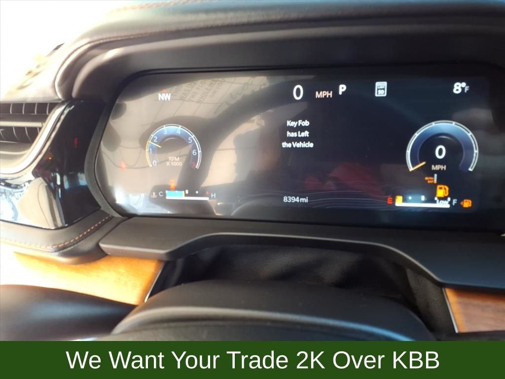 10 Speakers, 19 Speakers High Performance Audio, 3.45 Rear Axle Ratio, 4-Wheel Disc Brakes, 950 Watt Amplifier, ABS brakes, Active Noise Control System, Adaptive suspension, Air Conditioning, Alloy wheels, AM/FM radio: SiriusXM with 360L, Anti-whiplash front head restraints, Audio memory, Auto High-beam Headlights, Auto-dimming door mirrors, Auto-dimming Rear-View mirror, Auto-leveling suspension, Automatic temperature control, Auxiliary Battery, Brake assist, Bumpers: body-color, Compass, Delay-off headlights, Deluxe Headliner, Driver door bin, Driver vanity mirror, Dual front impact airbags, Dual front side impact airbags, Electronic Stability Control, Emergency communication system, Four wheel independent suspension, Front anti-roll bar, Front Bucket Seats, Front Center Armrest w/Storage, Front dual zone A/C, Front fog lights, Front Passenger Interactive Display, Front reading lights, Fully automatic headlights, Garage door transmitter, Genuine wood dashboard insert, Genuine wood door panel insert, Gloss Black Exterior Accents, Heated door mirrors, Heated front seats, Heated rear seats, Heated steering wheel, High Altitude Package, Illuminated entry, Knee airbag, Leather steering wheel, Low tire pressure warning, Memory seat, MOPAR Black Side Steps, Nappa Leather Seats, Navigation System, Neutral Gray Exterior Accents, Normal Duty Suspension, Occupant sensing airbag, Outside temperature display, Overhead airbag, Overhead console, Painted Door Cladding, Palermo Leather Door Trim, Palermo Leather Seats, Panic alarm, Passenger door bin, Passenger vanity mirror, Power door mirrors, Power driver seat, Power Liftgate, Power moonroof, Power passenger seat, Power steering, Power windows, Quick Order Package 23U Summit Reserve, Radio data system, Radio: Uconnect 5 Nav w/10.1 Display, Rain sensing wipers, Rear air conditioning, Rear anti-roll bar, Rear dual zone A/C, Rear reading lights, Rear seat center armrest, Rear window defroster, Rear window wiper, Remote keyless entry, Security system, Speed control, Speed-Sensitive Wipers, Split folding rear seat, Spoiler, Steering wheel memory, Steering wheel mounted audio controls, Summit Reserve, Summit Reserve Badge, Tachometer, Telescoping steering wheel, Tilt steering wheel, Traction control, Trip computer, Turn signal indicator mirrors, Variably intermittent wipers, Ventilated front seats, Ventilated Rear Seats, Voltmeter, Wheels: 20 x 8.5 Fully Painted Aluminum Silver, Wheels: 21 x 9 Black Painted Aluminum, Wheels: 21 x 9 Machined Face/Painted Aluminum.