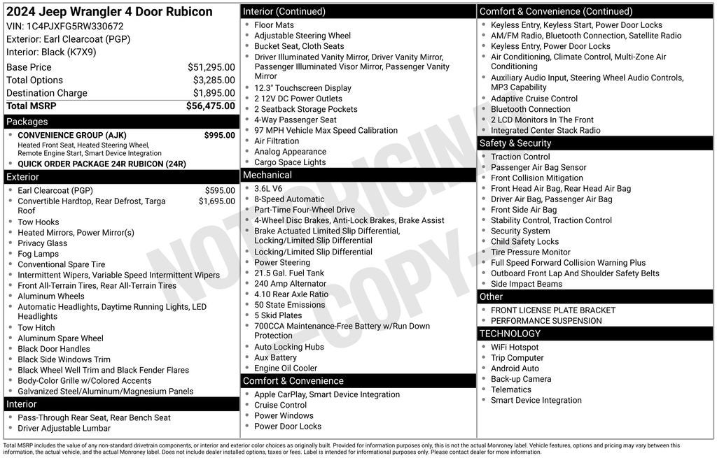 - Manual Convertible Top w/Fixed Roll-Over Protection and Top