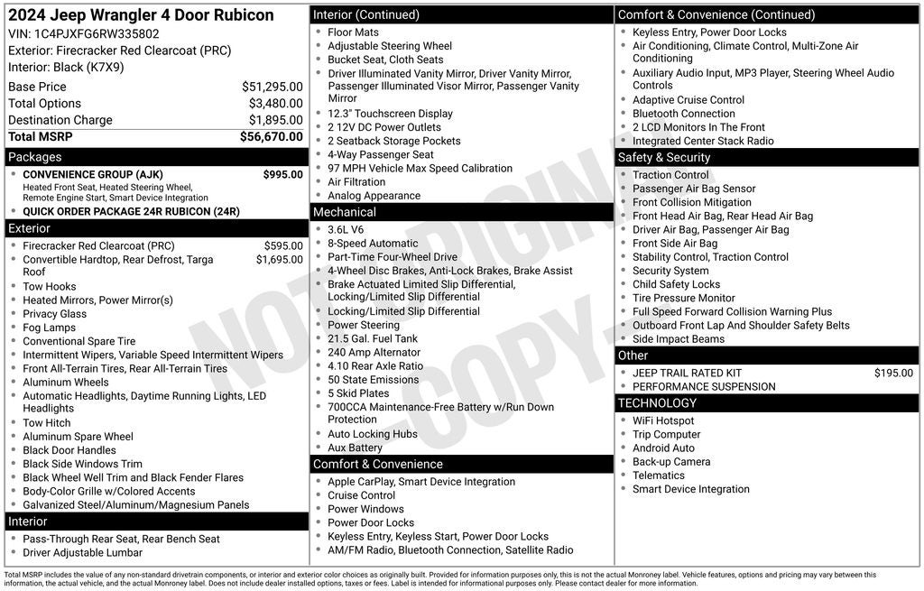 2024 Firecracker Red Clearcoat Jeep Wrangler Rubicon 4WD 8-Speed Automatic 3.6L V6 24V VVT