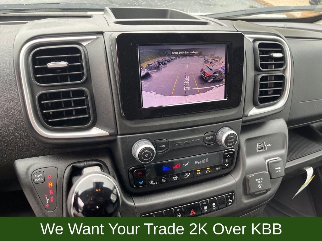 100 Amp Battery, 115V Auxiliary Power Outlet, 12V Rear Auxiliary Power Outlet, 220 Amp Alternator, 4 Speakers, 4-Way Manual Adjust Front Passenger Seat, 4-Wheel Disc Brakes, 4.08 Axle Ratio, ABS brakes, Adaptive Cruise Control w/Stop & Go, Air Conditioning, AM/FM radio: SiriusXM, Ambient LED Interior Lighting, Apple CarPlay/Android Auto, Auto High Beam Headlamp Control, Automatic Headlamps, Black/Gray Seats, Blind Spot & Cross Path Detection, Bodyside moldings, Brake assist, Chrome Front Grille, Cloth Bucket Seats, Cluster 7.0 TFT Color Display, Cowl Aesthetic Cover, Digital Rearview Mirror w/Autodim, Driver door bin, Driver Seat Armrest, Driver's Seat Mounted Armrest, Electronic Stability Control, Exterior Mirrors w/Heating Element, Front anti-roll bar, Front Bucket Seats, Front LED Fog Lamps, Front License Plate Bracket, Front reading lights, Front wheel independent suspension, Global Telematics Box Module (TBM), Heavy Duty Suspension, Illuminated entry, Instrument Panel Bright Bezels, Intelligent Speed Assist (ISA), Lane Departure Warning Plus, LED Daytime Running Headlamps, LED Reflector Headlamps, Low tire pressure warning, MOPAR Rear Assist Handles, Outside temperature display, Overhead airbag, Overhead console, ParkSense Front/Rear Park Assist System, ParkSense Rear Park Assist System, ParkView Rear Back-Up Camera, Passenger Bucket Seat, Passenger door bin, Power Adjust Mirrors, Power Adjustable Convex Aux Mirrors, Power Folding/Heated Mirrors, Power steering, Power windows, Premium Heavy Duty Suspension, Quick Order Package 22G SLT, Radio: Uconnect 5 w/7 Display, Rain Sensitive Windshield Wipers, Rear anti-roll bar, Rear Cargo LED Lamp, Rear Heater - A/C Prep Package, Rear Heavy Duty Stabilizer Bar, Remote keyless entry, Remote Start System, Safety Group, Security Alarm, Steering wheel mounted audio controls, Tachometer, Telescoping steering wheel, Traction control, Trip computer, Turn signal indicator mirrors, Variably intermittent wipers, Wheel Center Cap, Wheels: 16 x 6.0 Aluminum Painted Silver, Wheels: 16 x 6.0 Steel, Wood Floor.