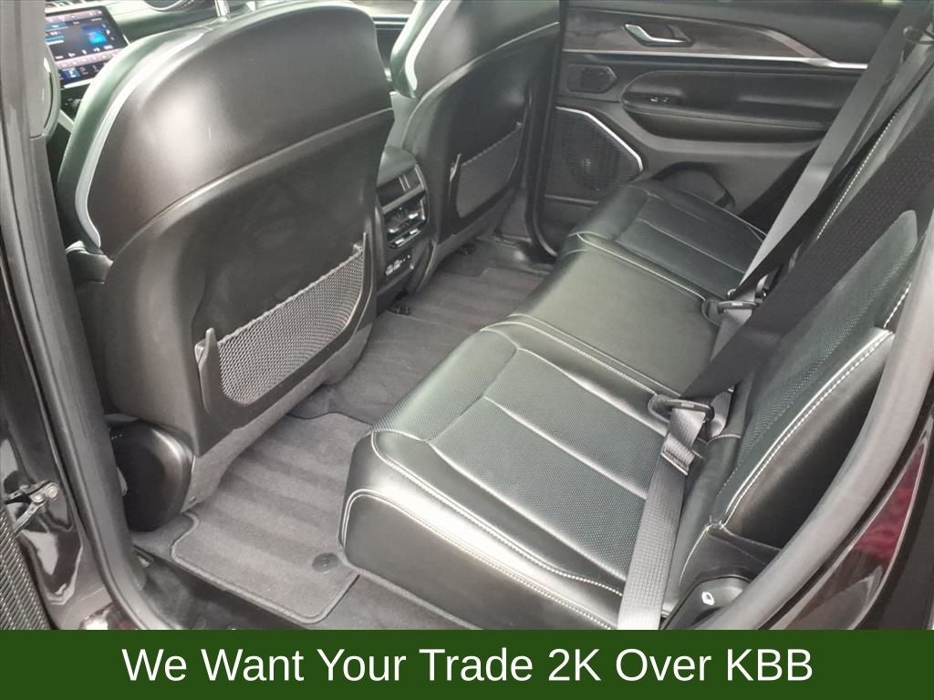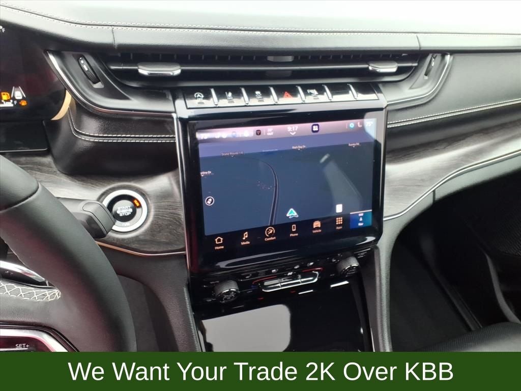 10 Speakers, 12-Way Power Adjust Driver Seat, 12-Way Power Adjust Front Passenger Seat, 2nd-Row Manual Window Shades, 4-Wheel Disc Brakes, 7 and 4-Pin Wiring Harness, ABS brakes, Active Driving Assist System, Adaptive suspension, ADV Protech Group III, Air Conditioning, Alloy wheels, AM/FM radio: SiriusXM with 360L, Anti-whiplash front head restraints, Audio memory, Auto High-beam Headlights, Auto-dimming door mirrors, Auto-dimming Rear-View mirror, Auto-leveling suspension, Automatic temperature control, Auxiliary Battery, Brake assist, Bumpers: body-color, Class IV Receiver Hitch, Compass, Delay-off headlights, Driver door bin, Driver vanity mirror, Dual front impact airbags, Dual front side impact airbags, Electronic Stability Control, Emergency communication system, Four wheel independent suspension, Front anti-roll bar, Front Bucket Seats, Front Center Armrest w/Storage, Front dual zone A/C, Front fog lights, Front reading lights, Fully automatic headlights, Garage door transmitter, Heads-Up Display, Heated door mirrors, Heated front seats, Heated rear seats, Heated steering wheel, Illuminated entry, Integrated Off-Road Camera, Intersection Collision Assist System, Knee airbag, Leather Wrapped Steering Wheel, Low tire pressure warning, Luxury Tech Group IV, Map-in-Cluster Display, Memory seat, Model Year Tracking, Nappa Leather Seats, Navigation System, Night Vision with Pedestrian-Animal Detection, Normal Duty Suspension, Occupant sensing airbag, Outside temperature display, Overhead airbag, Overhead console, Panic alarm, Passenger door bin, Passenger Seat Memory, Passenger vanity mirror, Power door mirrors, Power driver seat, Power Driver Seatback Massage, Power Front Passenger Seatback Massage, Power Liftgate, Power moonroof, Power passenger seat, Power steering, Power windows, Quick Order Package 23N, Radio data system, Radio: Uconnect 5 Nav with 10.1 Display, Rain sensing wipers, Rear anti-roll bar, Rear Back-Up Camera Washer, Rear reading lights, Rear seat center armrest, Rear window defroster, Rear window wiper, Rearview Autodim Digital Display Mirror, Remote keyless entry, Security system, Speed control, Speed-Sensitive Wipers, Split folding rear seat, Spoiler, Steering wheel memory, Steering wheel mounted audio controls, Surround View Camera System, Tachometer, Telescoping steering wheel, Tilt steering wheel, Traction control, Trailer Tow Package, Trip computer, Turn signal indicator mirrors, Variably intermittent wipers, Ventilated front seats, Voltmeter, Wheels: 20 x 8.5 Machined Face Aluminum, Windshield Wiper De-Icer, Wireless Charging Pad.