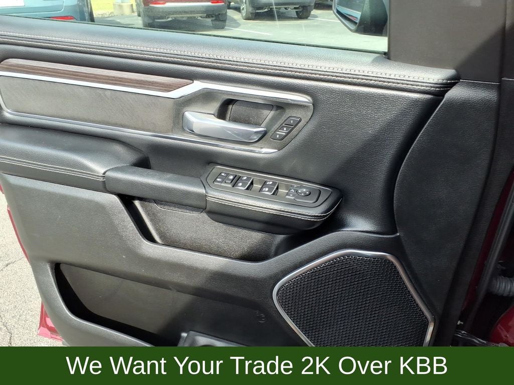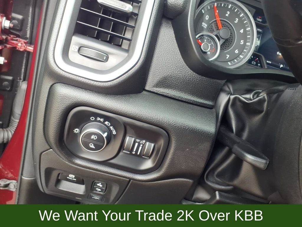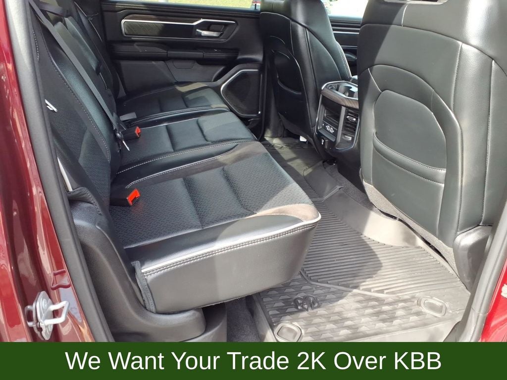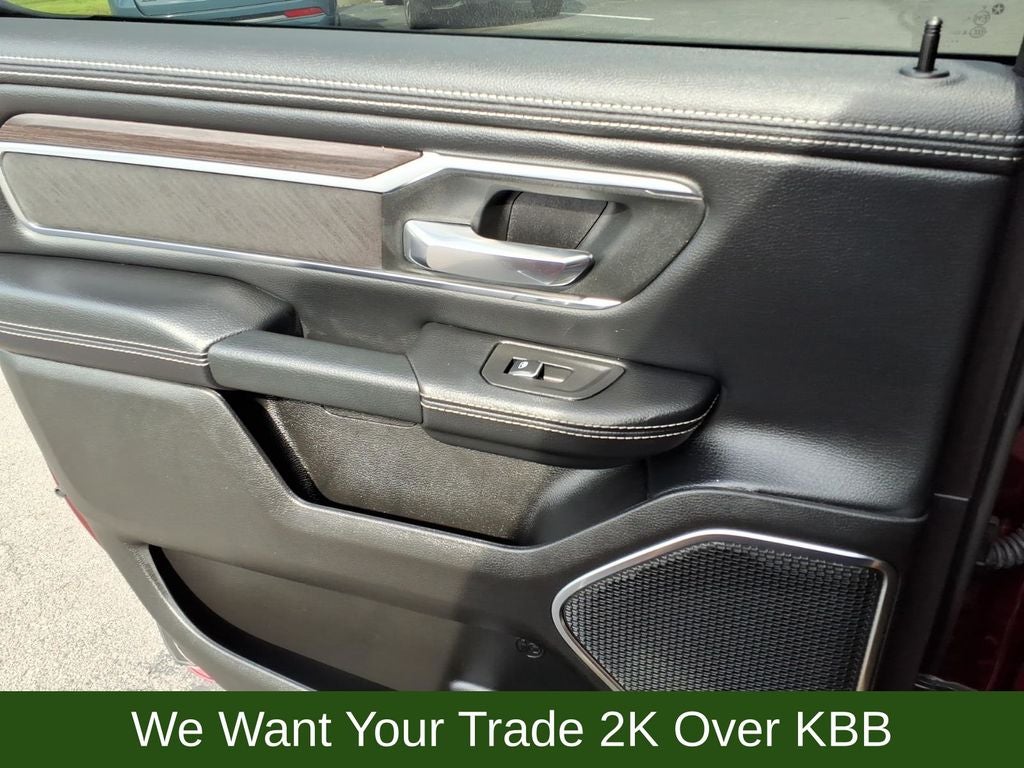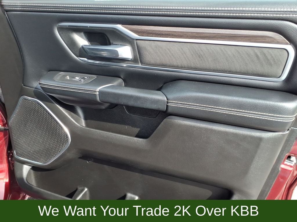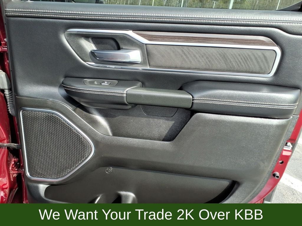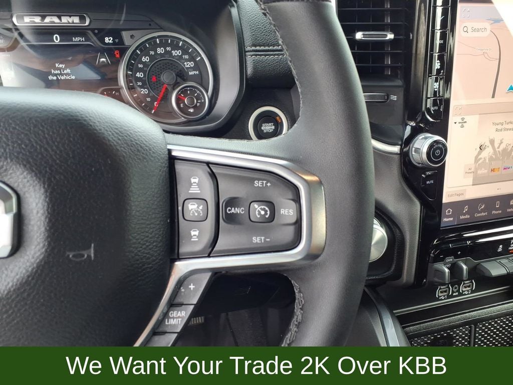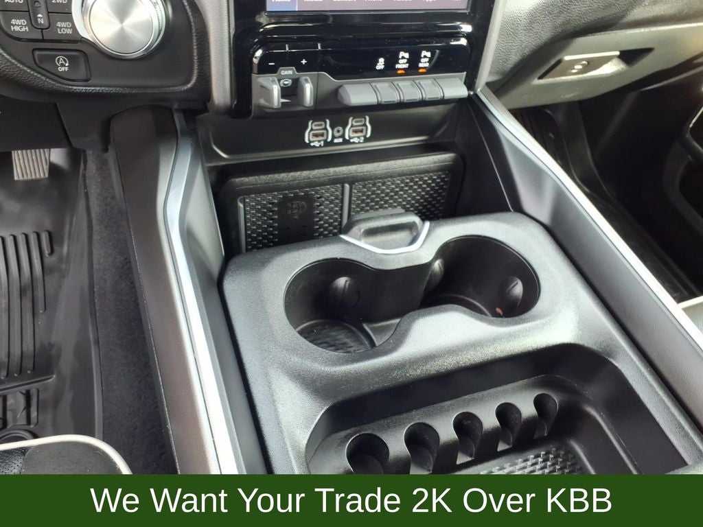 10 Speakers, 3 Rear Seat Head Restraints, 3.55 Rear Axle Ratio, 33 Gallon Fuel Tank, 4 Way Front Headrests, 4-Wheel Disc Brakes, 4G LTE Wi-Fi Hot Spot, ABS brakes, Air Conditioning, Alloy wheels, AM/FM radio: SiriusXM with 360L, Apple CarPlay, Apple CarPlay/Android Auto, Audio memory, Auto High-beam Headlights, Auto Power-Folding Mirrors, Auto-dimming door mirrors, Auto-Dimming Exterior Driver Mirror, Auto-dimming Rear-View mirror, Automatic temperature control, Bed Utility Group, Brake assist, Bumpers: chrome, Chrome Exterior Mirrors, Compass, Connected Travel & Traffic Services, Connectivity - US/Canada, Convex Wide-Angle Exterior Mirror Insert, Delay-off headlights, Driver door bin, Driver Seat Memory, Driver vanity mirror, Dual front impact airbags, Dual front side impact airbags, Electronic Stability Control, Exterior Mirrors Courtesy Lamps, Exterior Mirrors w/Heating Element, Exterior Mirrors w/Memory, Exterior Mirrors w/Supplemental Signals, Front anti-roll bar, Front Center Armrest w/Storage, Front dual zone A/C, Front fog lights, Front License Plate Bracket, Front reading lights, Front Seat Back Map Pockets, Front wheel independent suspension, Fully automatic headlights, Garage door transmitter, Google Android Auto, GPS Antenna Input, GPS Navigation, HD Radio, Heated door mirrors, Heated Front Seats, Heated front seats, Heated rear seats, Heated Steering Wheel, Heated steering wheel, Illuminated entry, Integrated Voice Command w/Bluetooth®, Laramie Level 1 Equipment Group, Leather steering wheel, Leather Trim 40/20/40 Bench Seat, Low tire pressure warning, Memory seat, MOPAR 4 Adjustable Cargo Tie-Down Hooks, MOPAR Front & Rear Rubber Floor Mats, MOPAR Spray In Bedliner, Navigation System, Occupant sensing airbag, Outside temperature display, Overhead airbag, Overhead console, Panic alarm, ParkView Rear Back-Up Camera, Passenger door bin, Passenger vanity mirror, Power 2-Way Driver Lumbar Adjust, Power 2-Way Passenger Lumbar Adjust, Power Adjust 8-Way Front Passenger Seat, Power door mirrors, Power driver seat, Power passenger seat, Power steering, Power windows, Quick Order Package 21H Laramie, Radio data system, Radio: Uconnect 5 Nav w/12.0 Display, Rain Sensitive Windshield Wipers, RAM Grille Badge - Chrome, Rear anti-roll bar, Rear reading lights, Rear seat center armrest, Rear step bumper, Remote keyless entry, Remote Tailgate Release, Security system, SiriusXM w/360L, Speed control, Split folding rear seat, Steering wheel mounted audio controls, Tachometer, Telescoping steering wheel, Tilt steering wheel, Traction control, Trailer Brake Control, Trip computer, Turn signal indicator mirrors, USB Host Flip, Variably intermittent wipers, Ventilated Front Seats, Ventilated front seats, Voltmeter, Wheel to Wheel Side Steps, Wheels: 20 x 9 Premium Paint/Polish.
